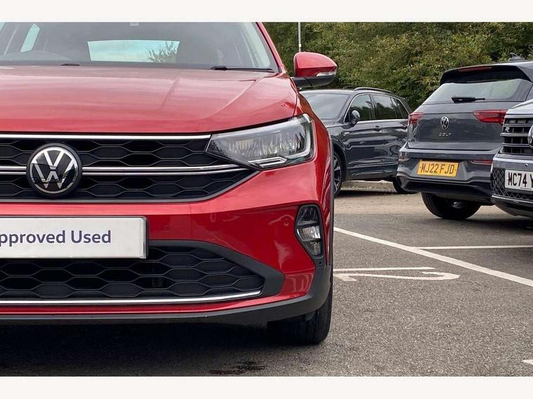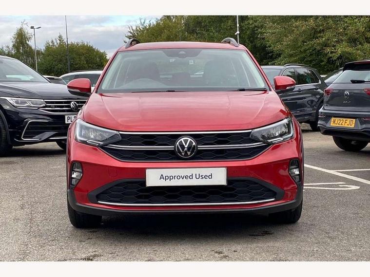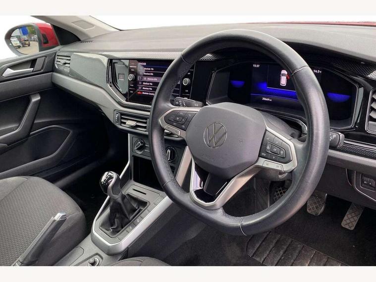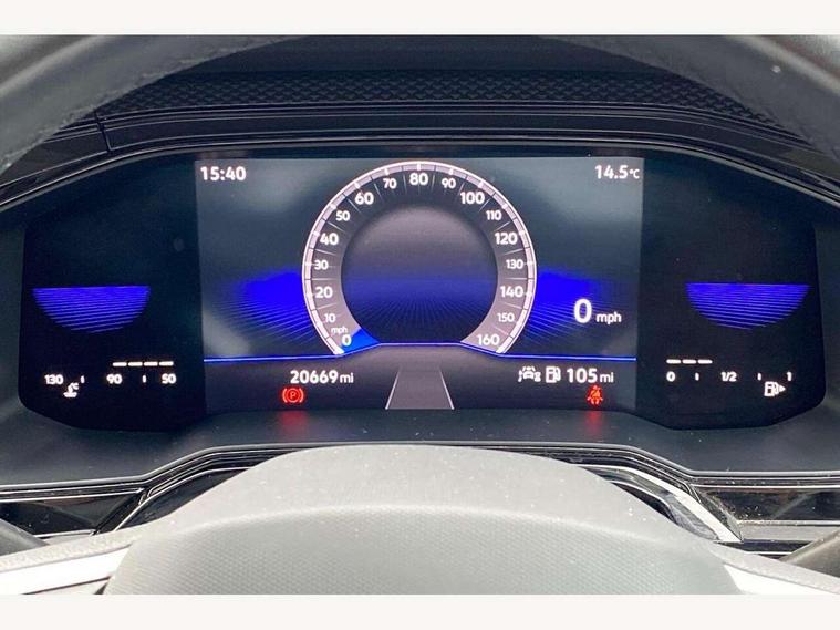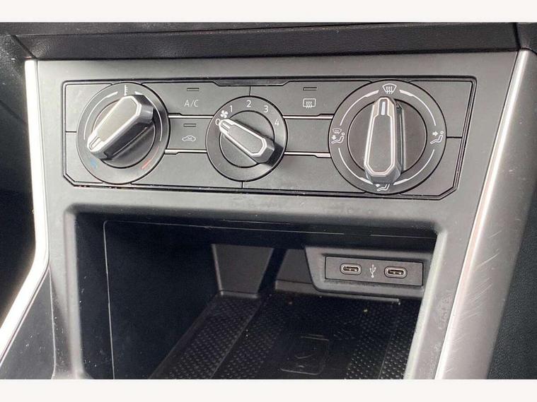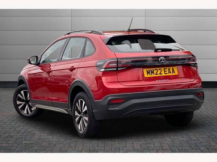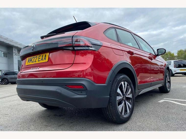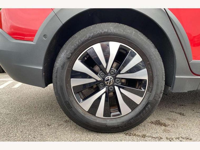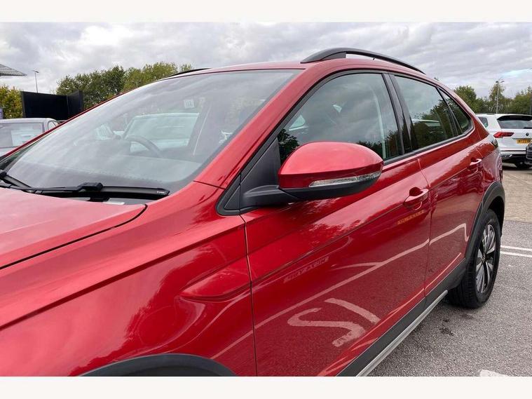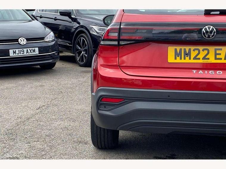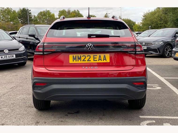 App-Connect including App-Connect Wireless, Driver alert system, e-Call (emergency call), Power Steering, Travel assist including emergency assist, Washer fluid level indicator, Wireless Charging including Bluetooth, Start-stop system with battery regeneration (recuperation - energy recovery during braking), Digital radio reception (DAB+), Diversity antenna for FM reception, WeConnect plus, Ambient lighting with logo projection, Aspherical driver's exterior mirror, Auto headlights, Body coloured bumpers, Body coloured exterior mirror housings and door handles, Electric windows, External USB type C socket and charging sockets, Front fog lamps with cornering function, Headlight range control, Heat insulating glass windscreen, LED headlamps, LED rear combination lamp, LED third brake light, Left convex exterior mirror, Power folding adjustable/heated exterior mirrors and front passenger exterior mirror lowering function, Rear fog light on one side, reversing light on both sides, Rear side wing doors, Rear wash/wipe with intermittent wipe setting, 'Slash/ Austin' Cloth upholstery, 12V socket in centre console, 2 front reading lights, 3 rear head restraints, 3 seat bench in 2nd row, Black carpets, Child seat anchor for child seat system i-Size, 2x top tether and child seat anchor in front on front passenger side, Door and side trim panels in titan black, Driver and front passenger seat height adjustment, Front centre armrest, Handbrake lever handle in leather, Height and reach adjustable steering wheel, Leather trimmed gear knob, Leather wrapped multifunction steering wheel, Luggage compartment floor, Luggage compartment light, Lumbar support for driver's and front passengers seat, Seat covers in titanium black, Single front passenger seat, Split folding backrest with centre armrest and unsplit rear seat bench, Storage compartment under front seats, Sun visors with illuminated vanity mirrors, Chrome Package - Taigo, Drivers assistance pack - Taigo, Light and Sight pack including High beam assist - Taigo, 2 x 3-point seatbelts/outer rear seats with ECE label, 3-point seat belts in front with pretensioner and height adjustment, 3-point seatbelt for centre rear seat, Driver and front passenger airbags with front passenger airbag de-activation, front side and curtain airbags, Driver and front passenger safety-optimised head restraints, Electronic stability control, Extended and predictive pedestrian/ cyclist protection, Front and rear disc brakes, Front curtain and side airbags with center airbag, Hill start assist, Manual rear child locks, Single tone horn, Tyre pressure loss indicator, Anti-theft alarm system with interior monitoring, backup horn, and towing protection, Anti-theft wheel bolts, Lava stone black gloss/matt decorative inserts in dash and front door panels, Low rolling resistance tyres,