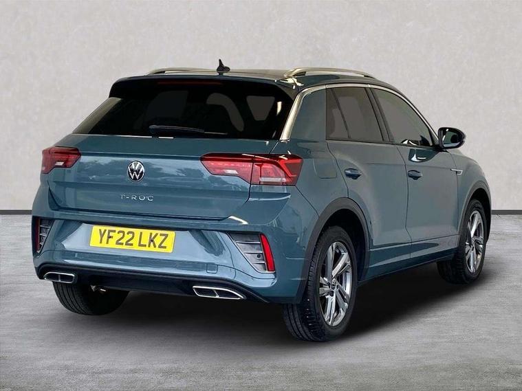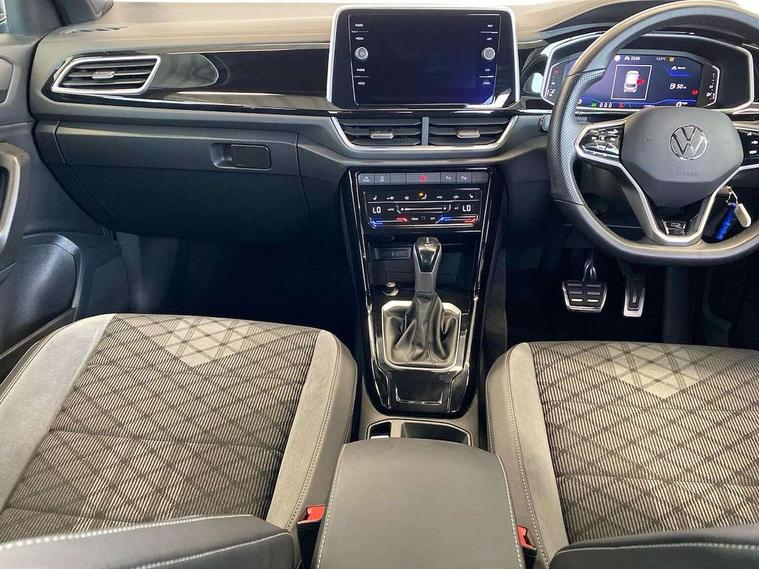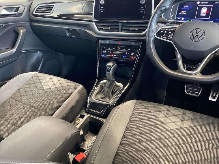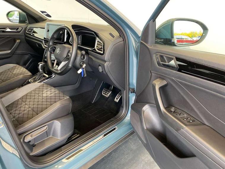 10.25" Digital cockpit pro, Bluetooth mobile phone interface, Driver alert system with fatigue detection, Driver tips and journey analysis, Emergency call service, Lane keeping system Lane Assist, Modified key software - reduce switch off time for key status change to Long no motion, Online services, Park assist including front and rear parking sensors, Service interval indicator, Tailgate/trunk lid release from outside, Think blue trainer driver tips and journey analysis, Warning sound and light for front seatbelts unfastened, Wireless app connect, Battery regeneration during braking, Start/stop function with battery regeneration, Diversity antenna for FM reception, Front and rear 6 speakers, Music playback - MP3, WMA and AAC files, Premium USB cable in choice of either Apple or Android smartphone compatibility, SD card slot, Simultaneous pairing of 2 compatible mobile devices, Title and cover art display, We Connect and We Connect Plus functionality, 3rd brake light, Auto dimming interior rear view mirror, Automatic hazard lights activation under emergency braking, Automatic headlight control with LED separate daytime running lights with coming/leaving home function, Extended roof spoiler, Exterior mirrors aspherical on driver side, convex on front passenger side, External USB type C socket and charging sockets, Front windscreen wiper with intermittent wipe and 4 position delay, Heated rear window, LED Plus headlamps, LED rear combination lamps, LED rear number plate lights, LED tail lamp rear comination lamps, Power windows with comfort operation and circuit breaker, R-Line design body coloured bumpers, Rain sensor, Rear exhaust tailpipe, Rear fog light on one side and reversing lights on both sides, Rear side wing doors, Rear wash/wipe with intermittent wipe setting, Remote electrically foldable door mirrors, puddle lights and reverse activated passenger's door mirror, 12V power socket in centre console, 3 rear head restraints, 3 seat bench in 2nd row, 4 load lashing points in luggage compartment, Air care climatronic air conditoning system with active combination filter and 2-zone temperature control, Black roof lining, Chrome plated radiator grille inserts, air vent surrounds and light switch surrounds, Door and side trim panel with leatherette insert, Drawer under drivers seat, Front + rear carpet mats, Front centre armrest, Front cupholders x 2, Front footwell illumination, Front reading light, Front scuff plates with R logo, Instrument lighting, white adjustable panel illumination, Interior ambient lighting and surround lighting, Interior light delay, Isofix child seat preparation, Leather gearshift handle, Load-through provision with cup holder when folded down ('Unsplit rear seat bench, split folding backrest, with centre armrest), Luggage compartment lighting, Single front passenger seat, Stainless steel pedals, Storage compartment in left and right luggage area, Storage compartment in rear doors, Storage compartments in driver and front passenger doors, Sunvisors with illuminated vanity mirrors, Variable boot floor, height adjustable and removable, Driver assistance pack without proactive passenger protection - T-Roc, 3 point height adj front seatbelts + pretensioners, 3 point seatbelts in outer rear with ECE label, ABS, Child locks on rear doors, Driver and front passenger airbag with front passenger airbag deactivation, Driver and front passenger safety-optimised head restraints, Drivers seatbelt reminder, Electronic parking brake, Electronic Stability Control (ESC) inc EDL (Electronic Differential Lock) and ASR (Traction Control), Front and rear passengers curtain airbag system including front side airbags, Front assist with city emergency braking and pedestrian monitoring, Front seat side impact airbags, Hill start assist, Predictive pedestrian protection, Rear disc brakes, Single tone horn, Tyre pressure loss indicator, Volkswagen roadside assistance, Alarm with interior protection, Anti-theft alarm system with interior monitoring, backup horn, and towing protection, Remote central locking with SAFELOCK, radio remote control with 2 remote control folding keys, Trims for alloy wheels,