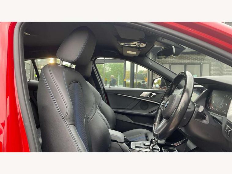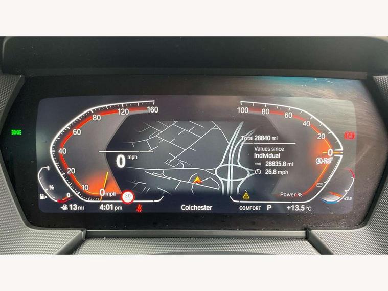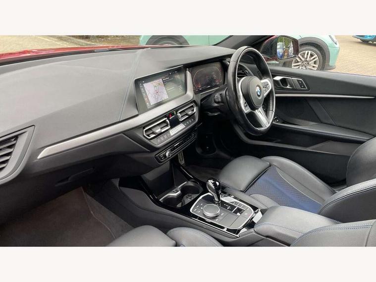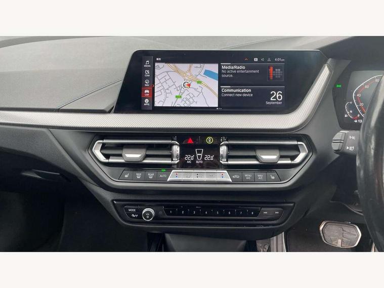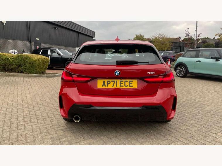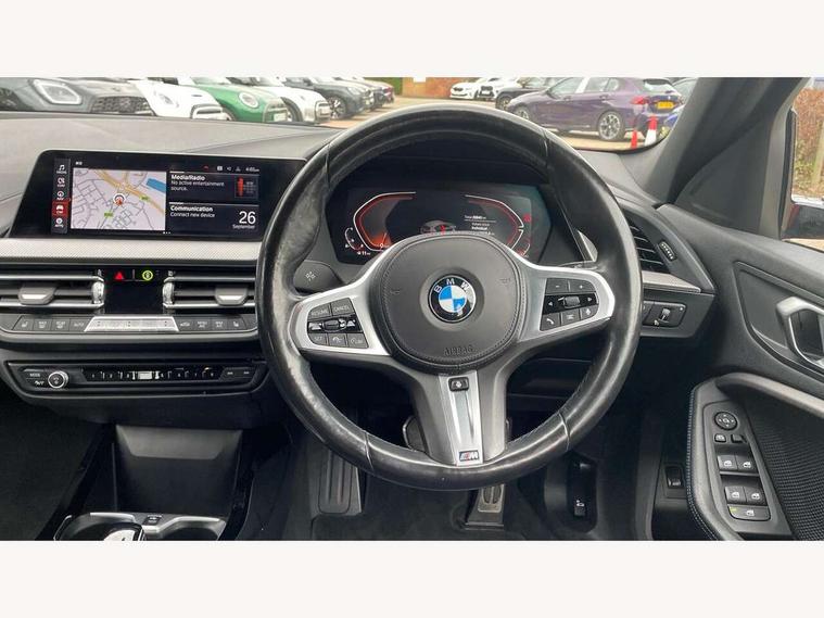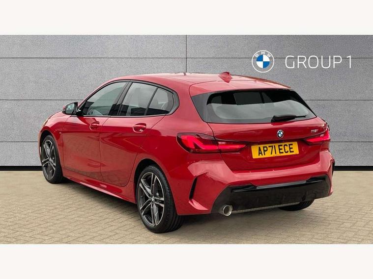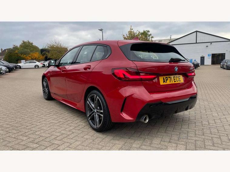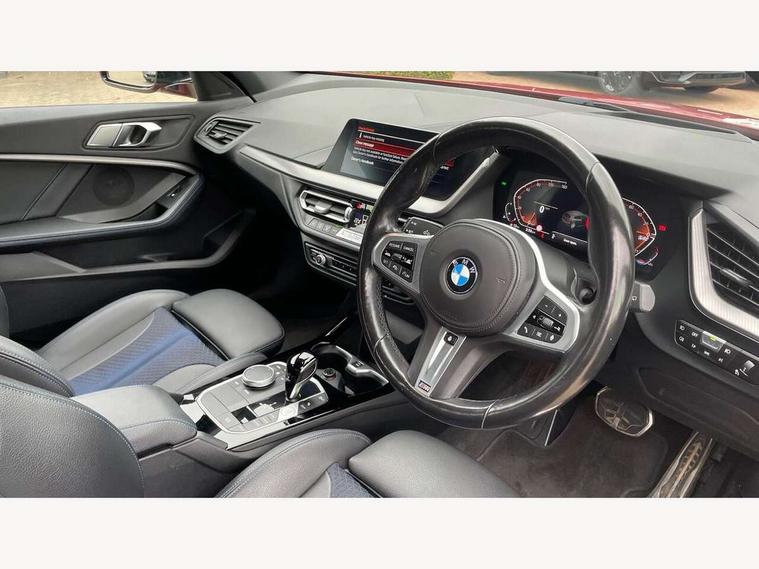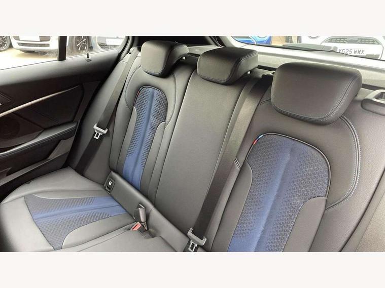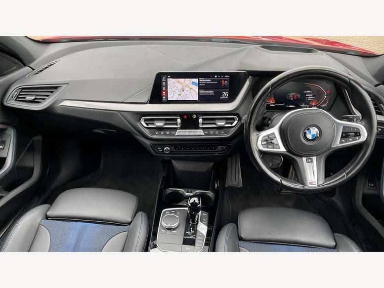 Active guard plus, Attentiveness assist, BMW Online services, BMW Teleservices, Check Control warning system for monitoring of lights and door/luggage compartment open warning, Connected eDrive Services, Eco pro mode, Integrated owners handbook, Oil sensor for level and grade, On board computer, Optimum shift indicator, Personal Profile, Pull away assistant, Speed limiter, Aluminium lightweight construction, Anti roll bar front and rear, Balancer shaft, Double VANOS, Drive Performance Control, Electronic differential lock, High precision injection, M sport suspension, Petrol Particulate Filter, VALVETRONIC engine management, Bluetooth audio streaming, DAB Digital radio, Auto dimming rear view mirror, Automatic headlight beam throw control, Automatic windscreen wipers and automatic headlight, Body colour door handles, Body colour mirror caps, Chrome 'M' logo side designation, Chrome exhaust tailpipe in single, round (Exhaust tailpipe, stainless steel - single, round), Chrome kidney grille frame with Satin Aluminium struts, Direction indicator side lights in exterior mirrors, Electric folding and anti dazzle exterior mirrors, Fading support, Follow me home headlights, Front and rear bumper system with replaceable deformation elements, Front and rear electric windows with open and close fingertip control, anti trap facility and comfort closing, Front door sill finishers in black plastic with M designation in metallic look, Green tinted heat protection glazing, Heated, electrically adjustable exterior mirror aspheric on driver side, convex on passenger side, High gloss shadowline window frame, Recess cover mirror frames and B/C pillar embelisher trim, High level third brake light, LED daytime running lights, LED eyebrow turn indicators, LED front fog lights, Lightweight engineering, Matt black air guide grilles, Model designation on right side of tailgate, Nearside reverse light in rear light cluster, Preparation for high beam assistant, Rain sensor including auto headlights activation, Rear fog lights, Rear window wiper, Shark fin antenna, Visible VIN plate, Welcome lighting, 12V power socket in centre console, 3 rear seat head restraints, 3 spoke M sports design leather steering wheel finished in nappa leather with specific M badge, Anthracite headlining, Anthracite Velour floor mats, Child seat ISOFIX attachment for two outer rear seats and front passenger seat with anchorage points, Conditioned based service, Dakota leather upholstery with perforation and contrast stitching, Driver and front passenger seat heating, Folding rear clothes hook, Four grab handles integrated in roof lining, Front and rear door pockets, Front and rear door pockets with bottle holders, Front and rear side armrest integrated into door trim, Front armrest foldable with integrated storage compartment, Front sports seats with electric side bolster adjustment, Glove compartment, Height adjustable front head restraints, Manual adjust steering wheel, Multi-function controls for steering wheel, Storage compartment in centre console, Sun visors with vanity mirrors and insert tab, Two zone automatic air conditioning, Additional interior lighting pack - 1 Series, Connected pack professional - 1 Series, Extended storage pack - 1 Series, Interior lights pack - 1 Series, Luggage compartment pack - 1 Series, M Sport exterior styling aerodynamics pack - 1 Series, 2 tone horn, 3 point seatbelts on all seats, front pyrotechnic belt tensioners, stopper and belt force limiters, rear coded belt buckles, Airbags - front driver/passenger, front & rear curtain, front side, Anti lock braking system (ABS) with brake assist, BMW emergency call, Brake drying, Braking readiness, Crash sensor activating central locking release, hazard warning lights, fuel cut off, interior lighting + activation of safety battery terminal clamp, Driver and front passenger seat belt security check, Dynamic stability control + (DSC+), Dynamic Traction Control - DTC, Electrically operated hand brake, Front and rear disc brakes, Front passenger manual airbag deactivation, Seatbelt warning, Side impact protection, Tyre pressure monitoring system, Warning triangle and first aid kit, Automatic drive away locking facility, Central locking switch for all doors, fuel filler cap and luggage compartment, Deadlocking function system to all doors, Locking wheel bolts, Remote control with integrated key with High-gloss Black inlay and M designation and 1 button for open/ close lock, window, open luggage compartment, Start/stop button with comfort go keyless engine start and auto start stop deactivation button, Thatcham Cat.1 alarm and immobiliser, Contrast stitching on instrument panel, Reduced rolling resistance tyres,