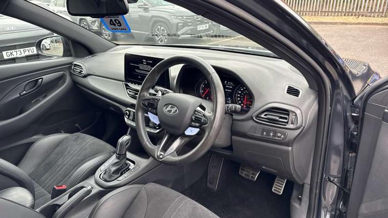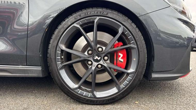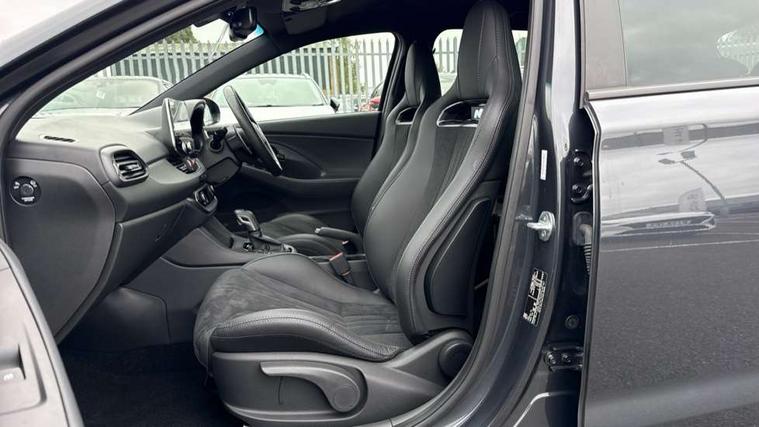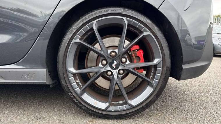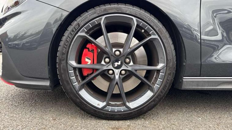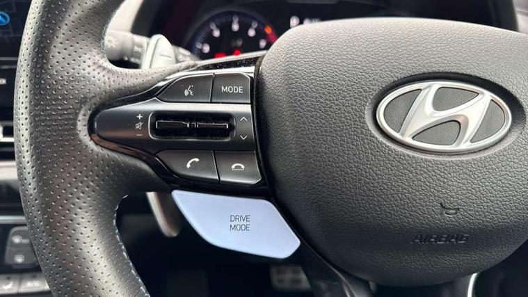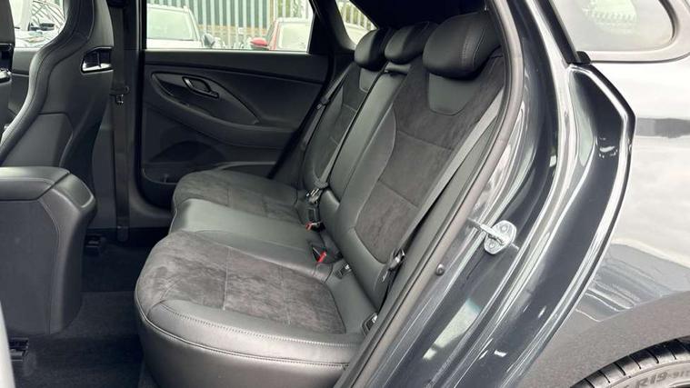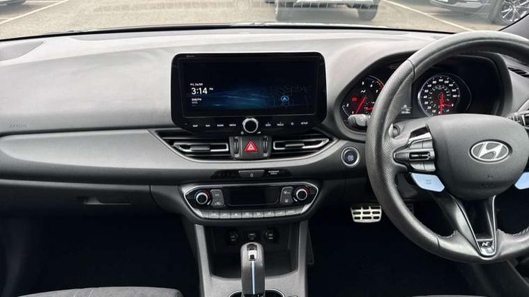 10.25" touchscreen centre console display satellite navigation including traffic messaging channel, map care and live services, Android Auto, Apple car play, Audio control with voice recognition, Blind spot Collision Warning (BCW), Bluetooth connectivity with voice recognition, Cruise control, Drive mode buttons, Driver attention alert system, Driver's supervision instrument cluster with 4.2" LCD display, e-Call (Emergency button system), Emergency stop signalling system, Forward collision avoidance assist, Front and rear parking sensors, Intelligent speed limit warning, Lane follow assist, Lane keep assist, N exclusive sport cluster, N grin shift, N mode button, N track sense shift, Parking system with rear camera and guidance system, Performance information display, Rack motor driven power steering, Rear collision assist, Rev matching system, Shift timing indicator, Trip computer, Windscreen washer fluid sensor and warning indicator, Wireless phone charging pad, Electric active sound design, Electronic limited slip differential, Electronically controlled suspension, Intelligent Stop and Go, Launch control, 2 front and 2 rear speakers with 2 tweeters, DAB Digital radio, USB ports in centre console, 1 speed non intermittent rear windscreen wiper, Active variable exhaust system, Adjustable intermittent front windscreen wipers with aero wiper blade, Automatic defog system for front windscreen, Automatic dimming rear view mirror, Automatic headlight with follow me home function, Automatic windscreen wipers with rain sensor, Black finish window surrounds, Black glossy door mirrors with integrated indicators, Body coloured door handles, Door mirror puddle lights, Dual LED Headlamps with Low/High Projection & Static Cornering, Dusk sensor, Electric adjustable heated door mirrors, Electric folding door mirrors, Electric windows - front and rear with anti-trap mechanism and one touch control (driver window), LED daytime running lights, LED tail lights, N exclusive front and rear bumpers, N exclusive radiator grille, N exclusive rear diffuser, Rear brake light in signature N triangular design, Rear LED lights, Rear roof spoiler with integrated LED brake light, Rear side wing doors, Rear stiffness bar, Rear windows and tailgate privacy glass, Shark fin antenna, Static Cornering lights, Tinted glass with windscreen shade band, 12V power outlets in front console and luggage compartment, 3 seat bench in 2nd row, 60/40 split folding rear seat, Active head restraints, Aluminium pedals, Black roof liner, Centre console storage, Chrome effect interior door handles, Driver's seat electric height adjustment, Driver's seat manual extendable seat cushion, Driver/passenger sunvisors and illuminated vanity mirrors, Dual zone climate control air conditioning, Electric adjust driver's seat, Floor mats, Front and rear door pockets, Front armrest with storage box, Front cupholders, Front head restraints with vertical and horizontal adjustment, Front passenger's seat electric adjustments, Front passenger's seat electric height adjustment, Front passenger's seat electric lumbar support, Front passenger's seat manual extendable seat cushion, Front, rear and luggage compartment interior lights, Glove compartment, Heated front seats, Heated function steering wheel, Interior front map reading light and sunglasses holder, ISOFIX child seat anchorage points attached on outer rear seats, Leather gearstick gaiter with light blue stitching, Leather wrapped steering wheel and gear knob, Luggage board, N branded aluminium door sill trims, N drive mode steering wheel button in blue, Reach + rake adjustable steering column, Rear armrest with cupholder, Rear head restraints, Single front passenger seat, Steering wheel audio, phone and cruise control buttons, 3x3 point rear seatbelts, Airbags - front, front side and curtain airbags, Anti-lock braking system (ABS), Childproof rear door locks, Curtain airbag roll over sensor, Electronic stability control, Front passenger airbag deactivation switch, Front seatbelt reminder, Height adjustable seatbelts, Hill start assist control (HAC), Manual parking brake, N power shift, Red brake calipers with N logo, Reinforced brakes, Seatbelt reminder for rear passenger seats, Torque vectoring brake, Tyre pressure monitoring system (TPMS), Deadlocks, Immobiliser, Locking wheel nuts, Remote control central locking, Smart key with keyless entry and engine start/stop button, Speed sensitive automatic door locking, Thatcham category 1 alarm, 19" Gloss black alloy wheels, 19" Pirelli P zero performance tyres, Temporary mobility kit (TMK),