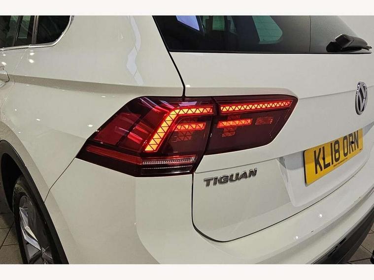 Active information display, Adaptive cruise control, App-Connect, Bluetooth phone integration system, Distance control assist, Drive mode selector, Fatigue detection system, Instrument cluster, Lane assist, Low washer fluid warning light, Outside temperature display, Service interval indicator, Speed limiter, Warning lights, Diesel particulate filter, XDS electronic differential lock, 2x USB sockets in front, Aux-in socket, DAB Digital radio, MP3 compatible single CD player, SD card slot, Auto dimming interior mirror, Automatic activation of hazard warning lights, Black door protector with chrome inserts, Body colour door handles, Body colour door mirrors, Body coloured bumpers, Chrome side body trim, Chrome side window surrounds, Chrome trimmed radiator grille, Coming/leaving home lighting function, Dusk sensor + auto driving lights, Electric folding door mirrors, Electric heated + adjustable door mirrors, Electric panoramic sunroof with sunblind, Front and rear electric windows, Heated rear window, LED headlights with dynamic light assist daytime running lights and cornering front fog lights, LED rear lights, Rain sensor windscreen wipers, Rear windscreen washer and wiper with interval delay, Silver rear diffuser trim, Silver roof rails, Silver under body guard, Tinted windows (B pillar backwards), Windscreen wipers/ intermittent wipe + 4 position delay, 12V Accessory socket in centre console, 3 rear headrests, 3 zone climate control, 4 load lashing points, 40:20:40 split folding rear seats, Bag hook in luggage compartment, Driver + front passenger lumbar support, Foldable passenger seatback, Front + rear carpet mats, Front centre armrest with 12v socket, Front centre armrest with storage + rear 2 air vents + cupholders, Front seatback folding tables, Height/reach adjust steering wheel, Illuminated driver/passenger vanity mirrors, Illuminated scuff plates, Interior light with delay, Isofix Preparation 2 Rear child seats, Leather gear knob, Load through provision with 2 cupholders when folded, Lockable cooled glovebox, Luggage compartment lighting, Luggage compartment side storage, Map pockets on front seats, Passenger seat height adjuster, Passenger underseat drawer, Rear cupholders, Removable luggage cover, Sliding/reclining rear seats, Storage compartment in driver's door, Storage compartment in passenger's door, Storage compartment in rear doors, Storage tray on dashboard, Sunglasses storage, Variable boot floor, Ambient lighting pack - Tiguan, 3 rear 3 point seatbelts, ABS+EBD+Brake assist, Active bonnet, Active pedestrian safety system, Curtain airbags, Driver/Front Passenger airbags, Driver/Passenger whiplash optimised head restraints, Drivers knee airbag, DTC - Drag torque control, Electronic parking brake with auto hold, ESP with EDL + ASR, First aid kit, Front assist including city emergency braking, Front side airbags, Head airbag system, Height adjustable front 3 point seatbelts + pretensioners, Hill hold control, Passenger airbag deactivate switch, Passenger knee airbag, Pre crash system, Rear side airbags, Seatbelt warning lamp and buzzer, Two tone horn, Warning triangle, Alarm with interior protection, Electronic engine immobiliser, Remote central locking with 2 remote folding keys, Chrome door trim inserts, Piano black interior trim, Steel space saver spare wheel,