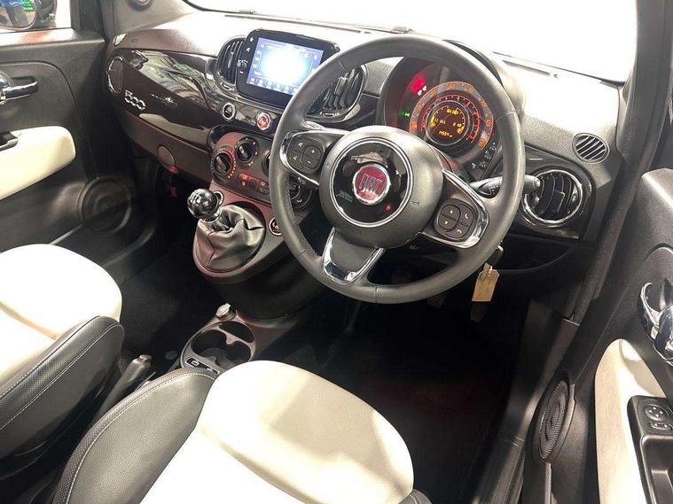Apple car play/Android Auto, Cruise control, E-call, External temperature gauge, Power assist steering, Rear parking sensor, Speed limiter, Stop/start system, Trip computer, 4 speakers, 7" HD Touchscreen Radio, Bluetooth, USB and DAB, Rear speakers, 3rd brake light, Auto headlights, Body colour bumpers, Body coloured electrically adjustable door mirrors, Chrome plated exterior door handles, Dolcevita badge on fender, Dusk and rain sensors, Electric front windows, Fixed glass sunroof with sunblind, Front fog lights, Halogen headlamps, Heat insulated glass, Heated rear windows with wash wipe, LED daytime running lights, Rear side wing doors, Rear wiper, 1 passenger grab handle, 2 seat bench in second row, 50/50 split folding rear seats with height adjustable rear headrests, Air conditioning, Auxilliary 12V power socket, Chrome kit, Front headrests, Height adjustable drivers seat, Height adjustable steering wheel, Isofix child seat preparation, Single front passenger seat, Techno leather steering wheel with audio controls, 7 airbags - Driver, passenger, side, window and drivers knee airbags, ABS/EBD, ESC + ASR/MSR + HBA + Hill holder, Passenger airbag deactivation system, Traction control, Tyre pressure monitoring system, Automatic door locking, Immobiliser, Locking fuel filler cap, Remote central locking, 15" Alloy wheels,