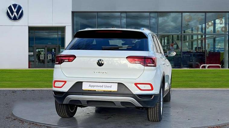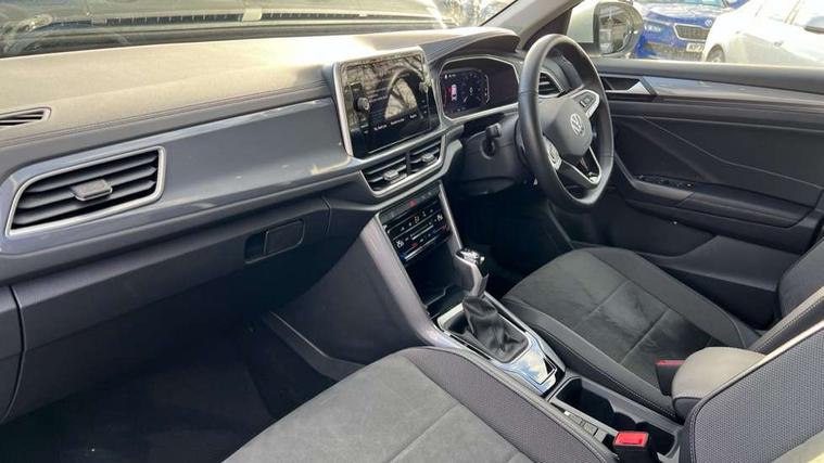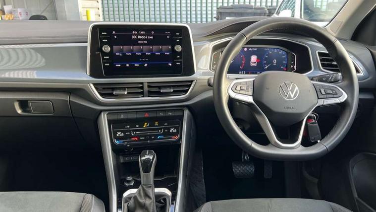 10.25" Digital cockpit pro, Advanced driver attention and drowsiness monitor, Emergency call service, Lane keeping system Lane Assist, Mobile phone interface, Modified key software - reduce switch off time for key status change to Long no motion, Online services, Park assist including front and rear parking sensors, Power assisted speed sensitive steering, Service interval indicator, Tailgate/trunk lid release from outside, Think blue trainer driver tips and journey analysis, Warning sound and light for front seatbelts unfastened, Wireless app connect, Battery regeneration during braking, Start/stop function with battery regeneration, DAB Digital radio, Diversity antenna for FM reception, Front and rear 6 speakers, Music playback - MP3, WMA and AAC files, Premium USB cable in choice of either Apple or Android smartphone compatibility, SD card slot, Simultaneous pairing of 2 compatible mobile devices, Title and cover art display, We Connect and We Connect Plus functionality, Auto dimming interior rear view mirror, Automatic hazard lights activation under emergency braking, Automatic headlight control with LED separate daytime running lights with coming/leaving home function, Body colour sports bumpers with silver metallic underbody fascia, Body coloured exterior mirror housings and door handles, Dynamic headlight range control with self adjusting whilst driving, Electrically adjustable and heated door mirrors, Extended roof spoiler, Exterior mirrors aspherical on driver side, convex on front passenger side, External USB type C socket and charging sockets, Front windscreen wiper with intermittent wipe and 4 position delay, Heated rear window, LED 3rd brake light, LED rear combination lamps, LED rear number plate lights, Light mode for poor weather, rain, fog or snow, Power windows with comfort operation and circuit breaker, Privacy glass for rear side windows and rear window, Rain sensor, Rear exhaust tailpipe, Rear fog light on one side and reversing lights on both sides, Rear side wing doors, Rear wash/wipe with intermittent wipe setting, Remote electrically foldable door mirrors, puddle lights and reverse activated passenger's door mirror, 12V power socket in centre console, 3 rear head restraints, 3 seat bench in 2nd row, 4 load lashing points in luggage compartment, Air care climatronic air conditoning system with active combination filter and 2-zone temperature control, Chrome plated radiator grille inserts, air vent surrounds and light switch surrounds, Door and side trim panel with leatherette insert, Drawer under drivers seat, Front + rear carpet mats, Front centre armrest, Front comfort sports seats, Front cupholders x 2, Front footwell illumination, Front seat back storage pockets, Glove compartment door with light, Instrument lighting, white adjustable panel illumination, Interior ambient lighting and surround lighting, Interior light delay, Isofix child seat preparation, Leather gearshift handle, LED interior light with switch off delay/dimmer and 2 front/rear LED reading lights, Load-through provision with cup holder when folded down ('Unsplit rear seat bench, split folding backrest, with centre armrest), Luggage compartment lighting, Non-folding front passenger seat backrest, Single front passenger seat, Storage compartment in left and right luggage area, Storage compartment in rear doors, Storage compartments in driver and front passenger doors, Sunvisors with illuminated vanity mirrors, Variable boot floor, height adjustable and removable, Driver assistance pack without proactive passenger protection - T-Roc, 3 point height adj front seatbelts + pretensioners, 3 point seatbelts in outer rear with ECE label, ABS, Child locks on rear doors, City emergency braking and pedestrian monitoring, Driver and front passenger airbag with front passenger airbag deactivation, Driver and front passenger safety-optimised head restraints, Drivers seatbelt reminder, Electronic parking brake, Electronic Stability Control (ESC) inc EDL (Electronic Differential Lock) and ASR (Traction Control), Front and rear passengers curtain airbag system including front side airbags, Predictive pedestrian protection, Rear disc brakes, Two tone horn, Tyre pressure loss indicator, Volkswagen roadside assistance, Deep iron grey decorative inserts in dashboard, centre console and front door trim panels, Trims for alloy wheels,