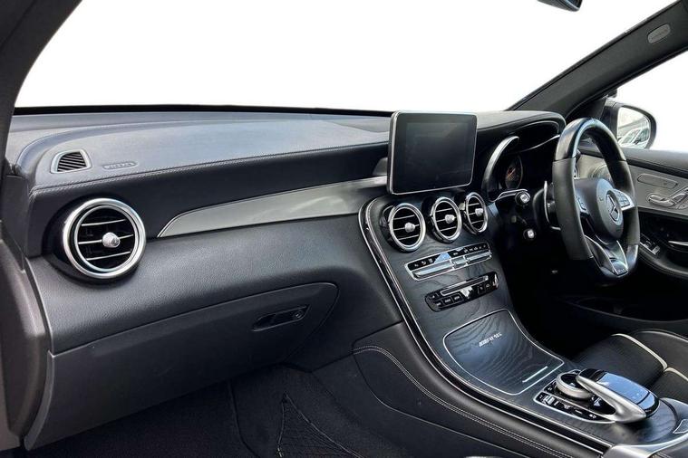 8.4" high resolution display, Active park assist with parktronic system, Attention assist, Bluetooth interface for hands free telephone, Collision prevention assist plus, COMAND online nav with colour display, radio/CD/DVD/MP3, SD card, 10GB music, Emergency Call system, speed limit assist, linguatronic voice control, Crosswind Assist, DYNAMIC SELECT with a choice of driving modes (ECO, Comfort, Sport, Sport+ and Individual), Instrument cluster with 5.5-inch TFT multi-function display, Multi function trip computer, Outside temperature gauge, Power opening/closing tailgate, Remote boot release, Service indicator (ASSYST), Speed sensitive steering, 66 litre fuel tank, Air suspension, AMG electronic rear axle limited slip differential lock, Burmester surround sound system, DAB Digital radio, USB connection, Adaptive brake lights, AMG bodystyling, AMG door sills, Automatic headlights, Body coloured bumpers, Chrome exterior trim, Electric panoramic sunroof with sunblind, Electric windows one touch open/close, Electrically adjustable and heated door mirrors, Heated windscreen washers, High gloss chrome vertical panamericana grille with black louvres, Intelligent LED headlight system with active cornering lights with adaptive high beam assist plus, LED daytime running lights, LED rear lamps, Privacy glass (to rear of B post), Rain sensor windscreen wipers, Range adjustable headlights, Rear wiper, Tinted glass all round, 2 cupholders in front centre console, 2 way rear head restraints, 3 spoke AMG steering wheel in Nappa leather/Dinamica, 4 way adjustable front head restraints, 4 way electric lumbar support for driver and front passenger, 40:20:40 split folding rear seats, Aluminium gear shift paddles, Ambient lighting, AMG performance seats, Auto Mercedes-Benz child seat recognition sensor, Automatic climate control, Black floor mats, Black roof lining, Dividing net - rear, Electric front seat height adjustment, Front armrest with storage box, Heated front seats, Illuminated glovebox, Multifunction steering wheel, Nappa leather upholstery, Rear top tether child seat ISOFIX attachment, Sports pedals with stainless steel surfaces and rubber studs, Sunvisors with illuminated vanity mirrors, AMG Exclusive pack - GLC, Easy-pack load compartment cover, Interior lighting pack - GLC, Memory pack - GLC, Mirror pack - GLC, Storage pack - GLC, 3 rear 3 point seatbelts, ABS with Brake Assist, Active bonnet, Adaptive brake system, Brake calipers in red, Child proof door locks, Drivers knee airbag, Dual stage driver/passenger airbags, Electronic parking brake, ESP with ASR, Front and rear seatbelt reminder, Front passenger seat occupancy sensor, Front side airbags, Hill hold function, Seat belts in Crystal grey, Tyre pressure monitoring system, Warning triangle and first aid kit, Window airbags, Alarm system/interior protection/immobiliser, Automatic door locking, Keyless entry and keyless start, Remote central locking, Artico upholstered dashboard, Tyre inflation kit,