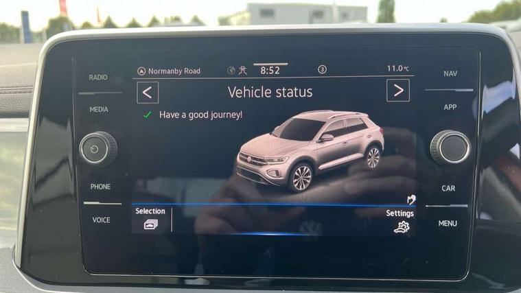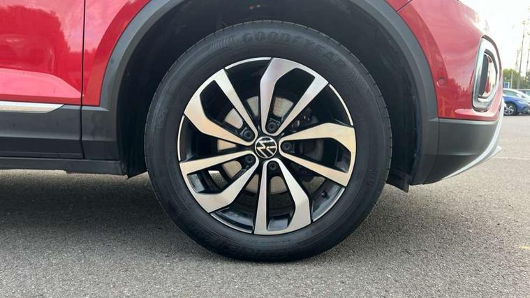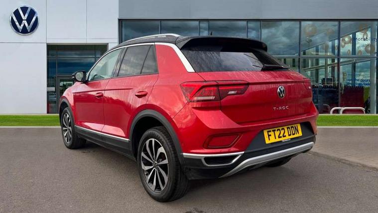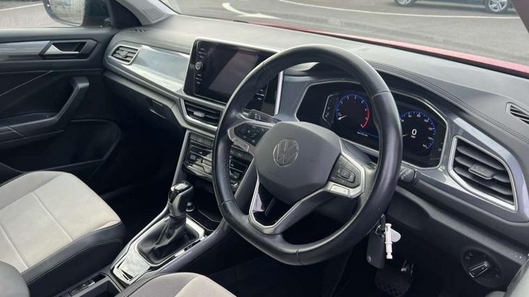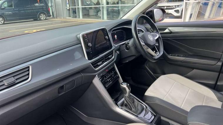 10.25" Digital cockpit pro, Bluetooth mobile phone interface, Driver alert system with fatigue detection, Driver tips and journey analysis, Emergency call service, Lane keeping system Lane Assist, Modified key software - reduce switch off time for key status change to Long no motion, Online services, Park assist including front and rear parking sensors, Service interval indicator, Tailgate/trunk lid release from outside, Think blue trainer driver tips and journey analysis, Warning sound and light for front seatbelts unfastened, Wireless app connect, Battery regeneration during braking, Start/stop function with battery regeneration, Diversity antenna for FM reception, Front and rear 6 speakers, Music playback - MP3, WMA and AAC files, Premium USB cable in choice of either Apple or Android smartphone compatibility, SD card slot, Simultaneous pairing of 2 compatible mobile devices, Title and cover art display, We Connect and We Connect Plus functionality, 3rd brake light, Auto dimming interior rear view mirror, Automatic hazard lights activation under emergency braking, Automatic headlight control with LED separate daytime running lights with coming/leaving home function, Body colour sports bumpers with silver metallic underbody fascia, Dynamic headlight range control with self adjusting whilst driving, Extended roof spoiler, Exterior mirrors aspherical on driver side, convex on front passenger side, External USB type C socket and charging sockets, Front windscreen wiper with intermittent wipe and 4 position delay, Heated rear window, LED Plus headlamps, LED rear combination lamps, LED rear number plate lights, LED tail lamp rear comination lamps, Light mode for poor weather, rain, fog or snow, Power windows with comfort operation and circuit breaker, Rain sensor, Rear exhaust tailpipe, Rear fog light on one side and reversing lights on both sides, Rear side wing doors, Rear wash/wipe with intermittent wipe setting, Remote electrically foldable door mirrors, puddle lights and reverse activated passenger's door mirror, 12V power socket in centre console, 3 rear head restraints, 3 seat bench in 2nd row, 4 load lashing points in luggage compartment, Air care climatronic air conditoning system with active combination filter and 2-zone temperature control, Chrome plated radiator grille inserts, air vent surrounds and light switch surrounds, Door and side trim panel with leatherette insert, Drawer under drivers seat, Front + rear carpet mats, Front centre armrest, Front comfort sports seats, Front cupholders x 2, Front footwell illumination, Instrument lighting, white adjustable panel illumination, Interior ambient lighting and surround lighting, Interior light delay, Isofix child seat preparation, Leather gearshift handle, LED interior light with switch off delay/dimmer and 2 front/rear LED reading lights, Load-through provision with cup holder when folded down ('Unsplit rear seat bench, split folding backrest, with centre armrest), Luggage compartment lighting, Non-folding front passenger seat backrest, Single front passenger seat, Storage compartment in left and right luggage area, Storage compartment in rear doors, Storage compartments in driver and front passenger doors, Sunvisors with illuminated vanity mirrors, Variable boot floor, height adjustable and removable, Driver assistance pack without proactive passenger protection - T-Roc, 3 point height adj front seatbelts + pretensioners, 3 point seatbelts in outer rear with ECE label, ABS, Child locks on rear doors, Driver and front passenger airbag with front passenger airbag deactivation, Driver and front passenger safety-optimised head restraints, Drivers seatbelt reminder, Electronic parking brake, Electronic Stability Control (ESC) inc EDL (Electronic Differential Lock) and ASR (Traction Control), Front and rear passengers curtain airbag system including front side airbags, Front assist with city emergency braking and pedestrian monitoring, Front seat side impact airbags, Predictive pedestrian protection, Rear disc brakes, Single tone horn, Tyre pressure loss indicator, Volkswagen roadside assistance, Alarm with interior protection, Anti-theft alarm system with interior monitoring, backup horn, and towing protection, Remote central locking with SAFELOCK, radio remote control with 2 remote control folding keys, Trims for alloy wheels,