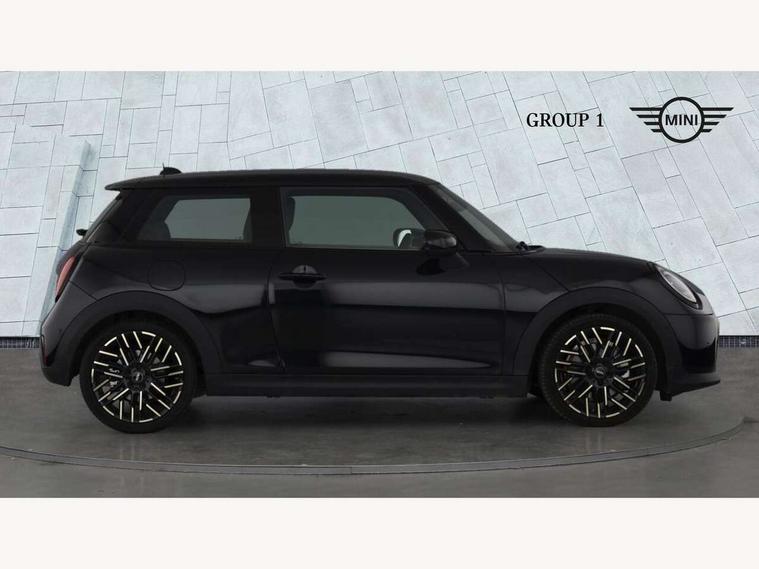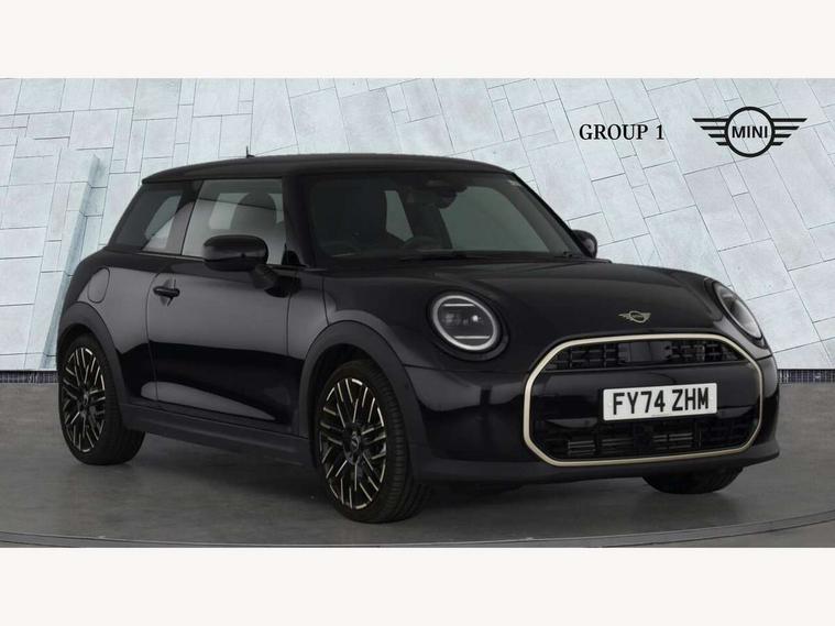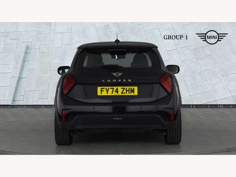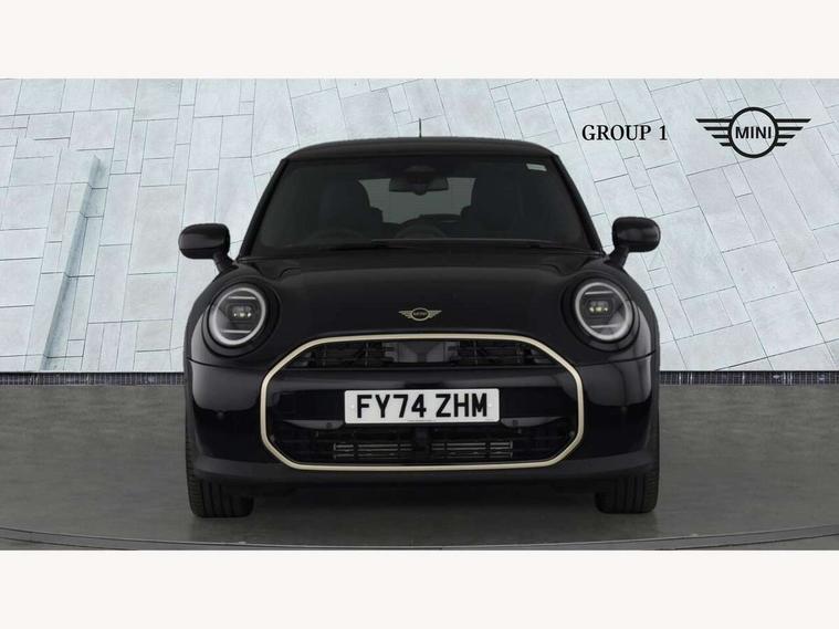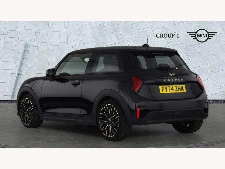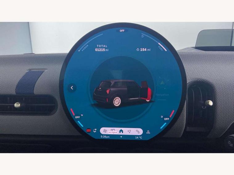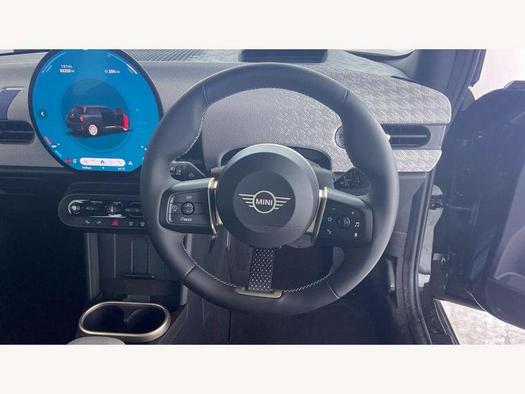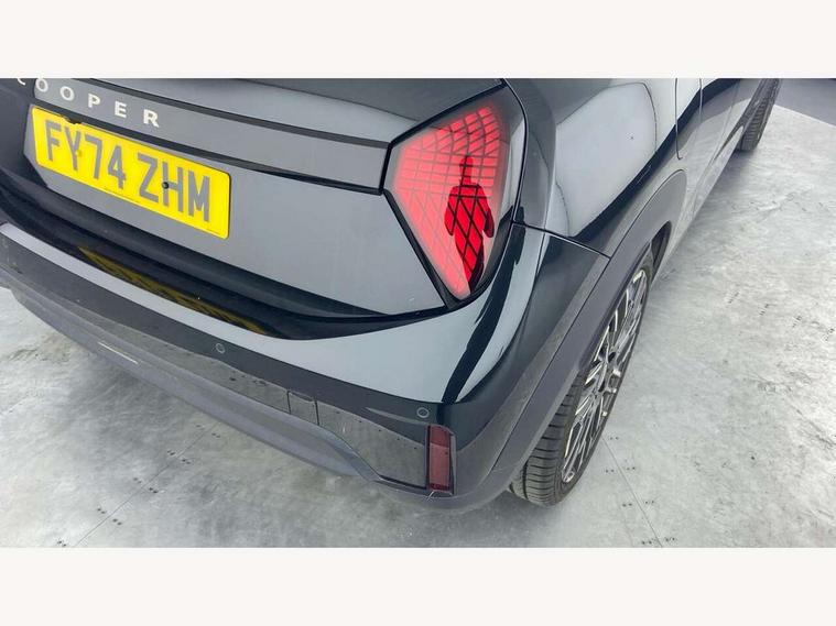 Central toggle bar, Circular OLED Screen, Compatible mobile phone bluetooth with audio streaming, Cruise control, Digital instrument cluster, Electro-mechanical speed dependant steering assistance, Emergency call service, MINI Experience Modes, Mini navigation system, On board computer, Service interval indicator, 7 speed steptronic transmission with double clutch, DAB Digital radio, Personal eSim, Auto headlights, Electric adjustable heated door mirrors, Electric front windows, Heated rear window, Heated windscreen washer jets, LED daytime running lights, LED Headlights, LED indicator lights, LED rear lights, Logos in Vibrant Silver, Rain sensor window wipers, Rear fog lights, Rear window wiper, Vibrant silver grille surround, 2 seat bench in second row, 2 zone automatic air conditioning, 60/40 rear seat bench, Ambient lighting, Cupholders, Dark headliner, Floor mats, Front and rear head restraints, Front compact armrest, Heated steering wheel, Height adjustable passenger seat, Lidded storage box in grey knit, Luggage compartment lighting, Single front passenger seat, Sport Vescin Steering Wheel black with vibrant silver accents, Sunvisors with vanity mirrors, Vescin synthetic leather upholstery, Driving assistant pack - Cooper Hatchback, Park assistant pack - Cooper Hatchback, 3 point seatbelts on all four seats, 6 Airbags - front, side, head and seat belt tensioners, Acoustic pedestrian protection, Anti-lock braking system (ABS), DSC - Dynamic Stability Control, Electronic parking brake, Front and rear disc brakes, Front ISOFIX (iSize), Front passenger airbag deactivation, Traction control, Tyre pressure monitoring system, Alarm, Immobiliser, Remote central locking, Blue decorative dash strap, Light Beige/Grey dash knit, Tyre repair kit,