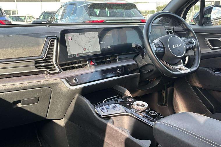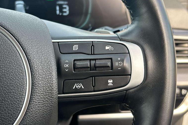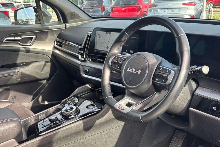 12.3" Display with navigation, 4.2" supervision colour cluster display, Apple car play/Android Auto with voice control, Drive mode selector, E-call, Forward collision avoidance assist (FCA) - city/pedestrian/cyclist/junction covering, Front and rear parking sensors, Highway Driving Assist (HDA), Intelligent speed limit assist, Kia Connect (UVO), Lane Following Assist (LFA), Lane keep assist, Low washer fluid warning, Rear view monitor, Reversing camera system integrated into centre fascia screen, Smart cruise control with stop and go functionality, Speed sensitive power steering, Trip computer, Windscreen washer level indicator, Intelligent Stop and Go, 6 speaker audio system, Bluetooth audio streaming, DAB Radio with MP3, Rear USB port, Steering wheel mounted audio controls, USB C type charging ports on centre console, USB C type charging ports on side of front seats, USB port for connection of a media device, All round electric windows with drivers and front passenger auto up/down function, Automatic headlight control system, Automatic window defogger, Backlite glass heated with timer, Body colour and black bumper with silver accents, Body colour exterior door handles, Body colour radiator upper garnish and door garnish, Electrically adjustable/heated/folding door mirrors with LED indicators, Front and rear chrome skid plates, Gloss black door mirrors, Gloss black radiator grille, Gloss black side sill and wheel arch body mouldings, Glossy black roof rack, High beam assist, Interior electrochromic mirror, LED daytime running lights, LED front fog lamps, LED headlamps (low and high beam - MFR type), LED High mounted stop light, LED rear combination lamp, Rain sensing wipers with aero blades, Rear fog lamp, Rear privacy glass, Rear side wing doors, Rear spoiler, Rear wiper, Satin finished beltline, Trailer stability assist, 12V power socket in front centre fascia and luggage compartment, 2nd row personal lamps, 3 seat bench in 2nd row, 3 x passenger assist grips, 40/20/40 split folding rear seat, All-round height adjustable headrests, Black headlining, Centre console storage box, Cupholders in rear armrest, D-Shaped sports leather steering wheel and perforated inserts with GT-Line logo, Door courtesy lamps, Drink holder at centre armrest, Driver and front passenger side sunvisors with illuminated vanity mirrors, Driver's seat manual height adjust, Drivers seat power lumbar support, Front and rear door storage, Front seat and rear pockets, Front/rear centre armrests, Gear shift indicator, Glovebox illumination, Interior door lock/unlock function, ISOFIX Child seat top tethers and anchor fixings outer rear seats, Luggage area light, Luggage area load cover, Luggage net with hooks, Metal paint interior door handles, Overhead console lamp, Paddle shift controls, Rear coat hooks, Single front passenger seat, Sports pedals, Suede leather upholstery, Three zone climate control, Tilt/telescopic adjustable steering wheel, Ventilation ducts to rear compartment, Active front headrests, All round 3-point seatbelts, Anti-lock braking system (ABS), Dual front side airbags, Dual horn, Electronic parking brake, Electronic stability control with downhill brake control, Front passenger airbag cut-off switch, Front seatbelt pretensioners + load limiters, Height adjustable front seatbelts, Hill start assist control (HAC), Impact sensing auto door unlocking, Multi collision brake assist, Rear door child safety locks, Rear seat alert system, Traction control, Twin curtain airbags, Twin front airbags, Tyre pressure monitoring system, Advanced anti-theft system including immobiliser and alarm, Door deadlocks, Engine Start/Stop Button with Smart Entry System, Locking wheel nuts, Speed sensitive auto door locking, Visible vehicle identification number, Aluminium pattern finish centre fascia and door garnish, 18" Alloy wheels, Tyre mobility kit,