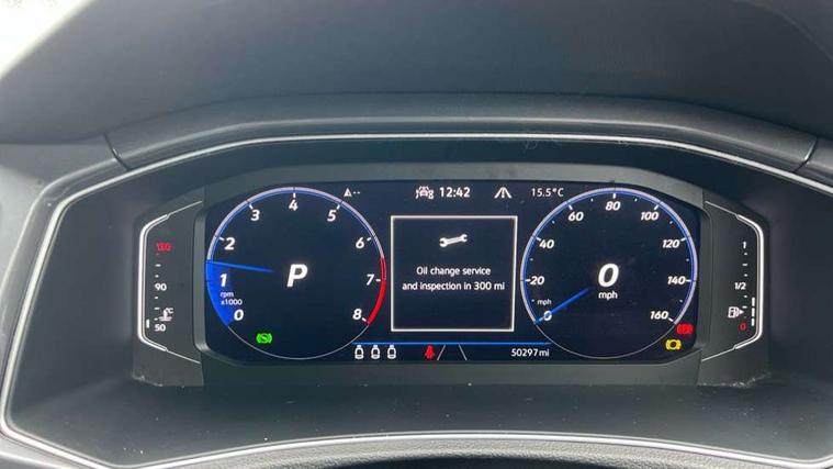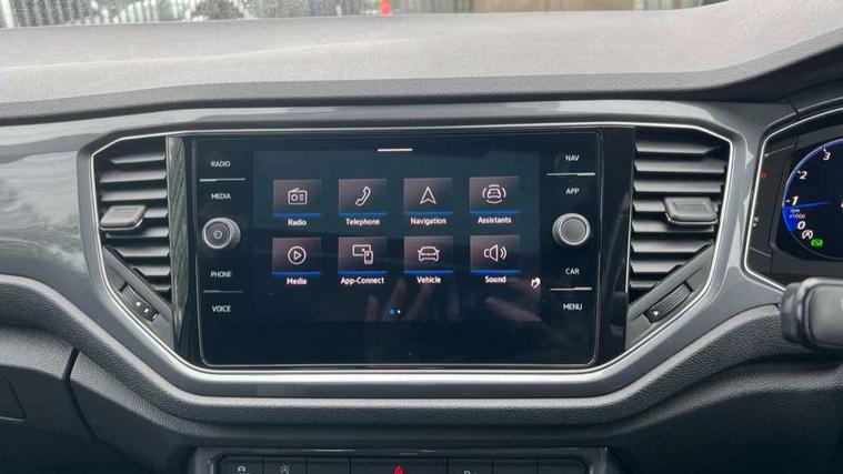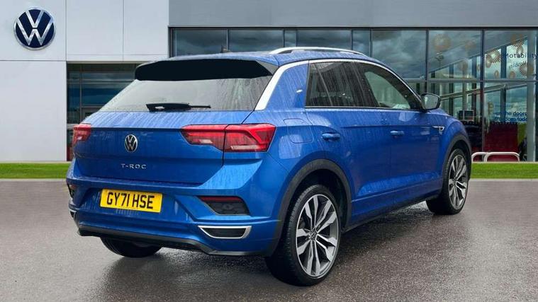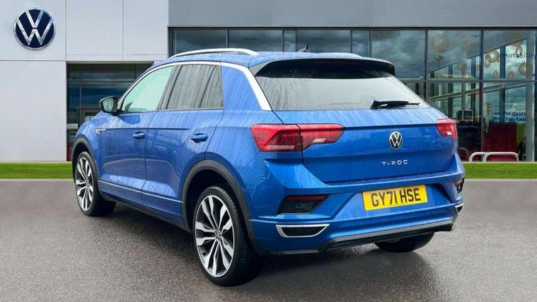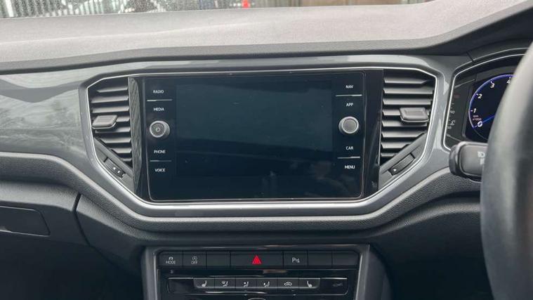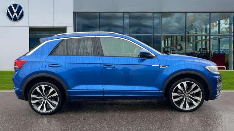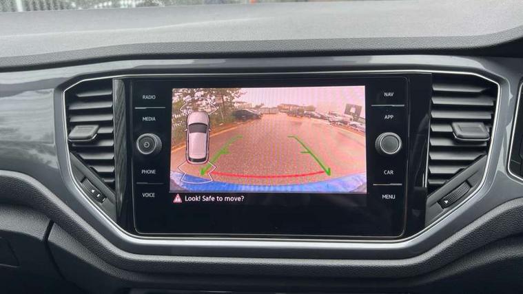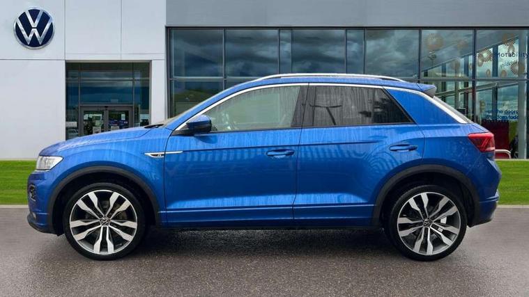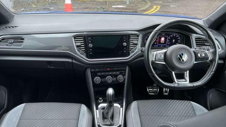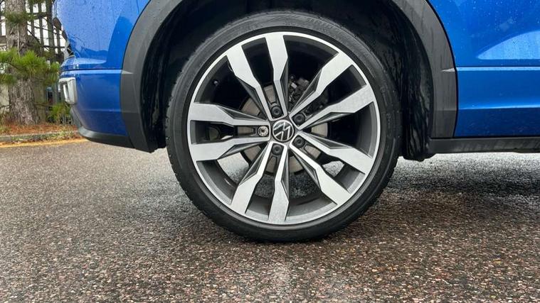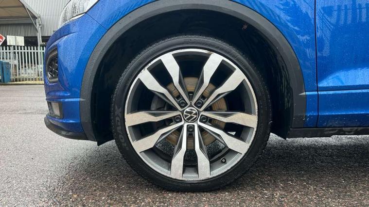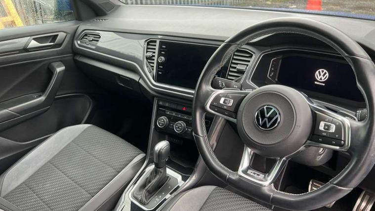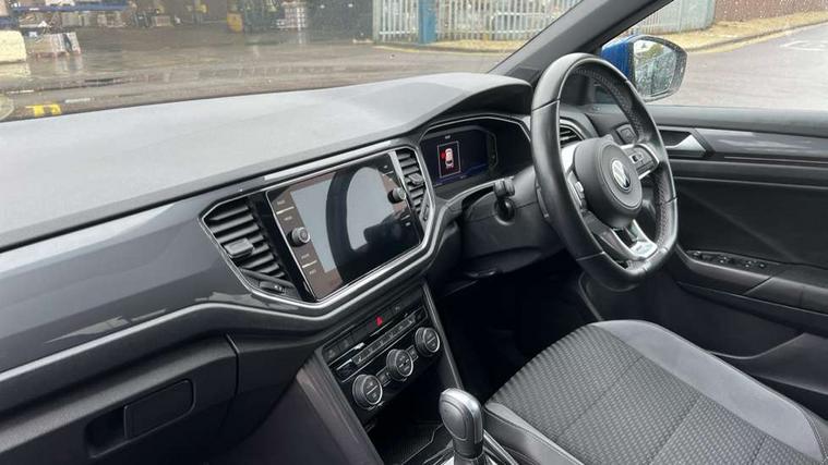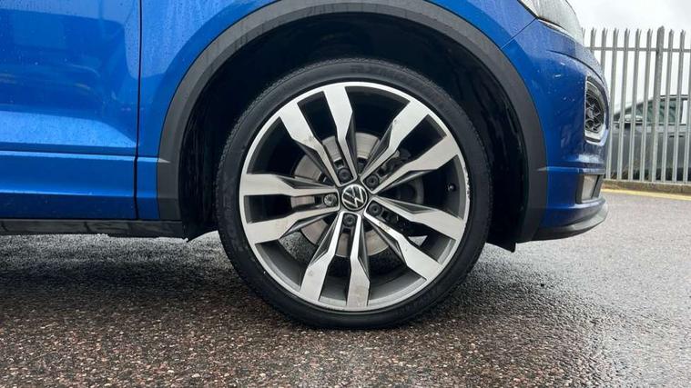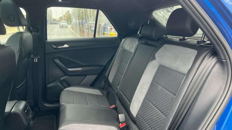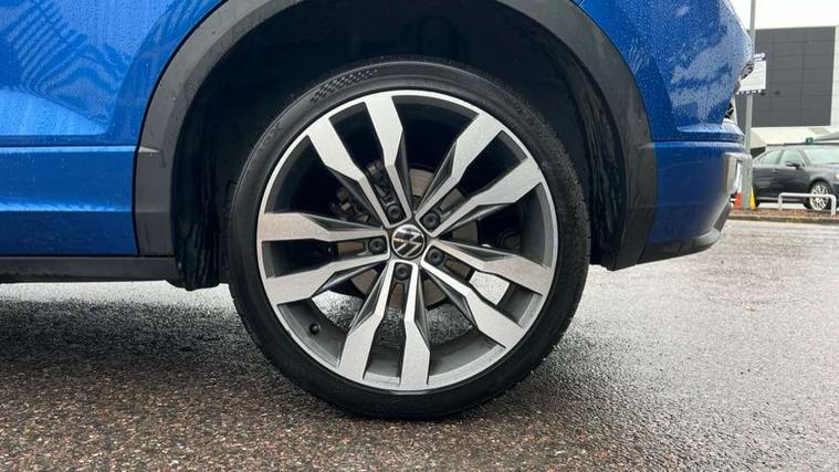 'Lights On' Reminder warning buzzer, Adaptive cruise control, Bluetooth telephone and audio connection for compatible devices, Car information display, Digital Cockpit Pro - Active info display, Driver alert system with audible and visual fatigue detection system, Driver tips and journey analysis, Emergency call service, Lane assist with warning text instrument cluster, Modified key software - reduce switch off time for key status change to Long no motion, Multifunction camera, Multifunction computer with visual gear change recommendation for fuel consumption, Navigation system discover media including streaming and internet, Service interval indicator, Think blue trainer driver tips and journey analysis, Traffic sign recognition, Voice activation, Warning sound and light for front seatbelts unfastened, Wireless app connect for apple carPlay, Battery regeneration during braking, Rear shock absorption for sports version, Start/stop function with battery regeneration, DAB Digital radio, Disk brakes in front, Diversity antenna for FM reception, Music playback - MP3, WMA and AAC files, Premium USB cable in choice of either Apple or Android smartphone compatibility, SD card slot, Simultaneous pairing of 2 compatible mobile devices, SMS functionality - read, compose and send SMS messages using touch-screen display, Storage compartment with longitudinal and height adjustable in armrest and two rear air vents, Three route options - Fast, Short, Eco, Title and cover art display, USB-C Interface and USB charging socket, Auto dimming interior rear view mirror, Automatic coming/leaving home lighting function and daytime running lights, Automatic hazard lights activation under emergency braking, Black grained lower door protectors, Body colored door lower parts, Body colour door handles, Body colour rear roof spoiler, Chrome effect left and right trapezoid exhaust tailpipe fascia surround, Chrome plated moldings, Chrome trim on upper and lower radiator grille, Dusk sensor, Dynamic headlight range control with self adjusting whilst driving, Electrically foldable, adjustable and heated door mirrors with puddle lights and reverse activated kerb-view adjustment on passenger's door mirror, External USB type C socket and charging sockets, Front and rear electric windows, Front fog lights with static cornering function, Front windscreen wiper with intermittent wipe and 4 position delay, Fully galvanised body, Heated rear window, Heated windscreen washer jets, High level 3rd brake light, LED darkened rear light clusters, LED headlamps with automatic range adjustment and unique signature LED separate daytime running lights, LED rear number plate lights, LED tail lamp rear comination lamps, Privacy glass, R-Line design body coloured bumpers, Rain sensor, Rear tinted glass from B-pillar backwards approx 65% tinted, Rear wash/wipe with intermittent wipe setting, Silver anodised roof rails, Volkswagen roundel, 12V socket in centre console storage area, 3 rear head restraints, 4 load lashing points in luggage compartment, Aluminium pedals, Black roof lining and sun visors, Branded points of interest, Carbon flag cloth upholstery, Chrome plated radiator grille inserts, air vent surrounds and light switch surrounds, Climate control - 2 zone electronic air conditioning with automatic air recirculation and allergy filter, Door and side trim panel, Door and side trim panel in foam film, insert in leatherette, Drawer under drivers seat, Front + rear carpet mats, Front centre armrest, Front cupholders x 2, Front seat back storage pockets, Front sports seats with R-Line logo on seat backrest, Glovebox, Heated front seats, Height adjustable front seats, Height/reach adjust steering wheel, Instrument lighting, white adjustable panel illumination, Interior light delay, Interior light in footwell, Isofix easy fit child seat preparation for 2 outer rear seats, Leather gearshift knob, Leather multi function sport steering wheel with gear change selection via paddle shift on steering wheel, LED interior light with switch off delay/dimmer and 2 front/rear LED reading lights, Load through provision with single cup holder when folded down, Luggage compartment cover, removable, Luggage compartment lighting, R Line badge, Scuff plates in door apertures, Split folding rear seat backrests with centre armrest, Stainless steel pedals, Storage compartment in left and right luggage area, Storage compartment in rear doors, Storage compartments in driver and front passenger doors, Sunvisors with illuminated vanity mirrors, Unique R Line door sill protectors, White ambient lighting, R line styling pack - T-Roc, Winter pack - T-Roc, 3 rear three point seatbelts, ABS, Curtain airbags, Driver and front passenger safety-optimised head restraints, Drivers and front passengers airbags with passengers deactivation switch, Drivers seatbelt reminder, Electronic parking brake with auto hold, Electronic stability control (ESC) includes ASR, EDL, EDTC and trailer stabilisation function, Front assist with city emergency braking and pedestrian monitoring, Front seat side impact airbags, Hill start assist, Predictive pedestrian protection, Rigid safety cell with front and rear crumple zones, Single tone horn, Three point height adjust front seatbelts + pretensioners, Tyre pressure loss indicator, Ventilated front and rear disc brakes, Volkswagen roadside assistance, Alarm with remote central locking and interior protection, Electronic engine immobiliser, Remote central locking with SAFELOCK, radio remote control with 2 remote control folding keys, Shadow grey decorative inserts in dash, centre console and door panel, 19" Suzuka alloy wheels with low rolling resistance tyres and anti wheel bolts,