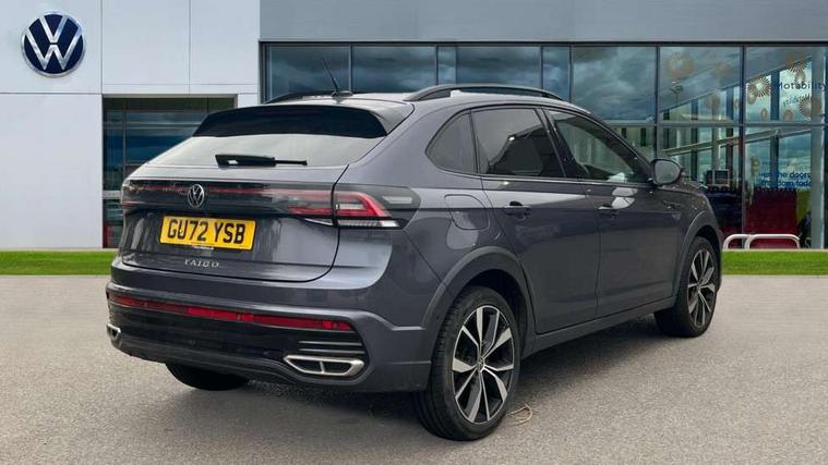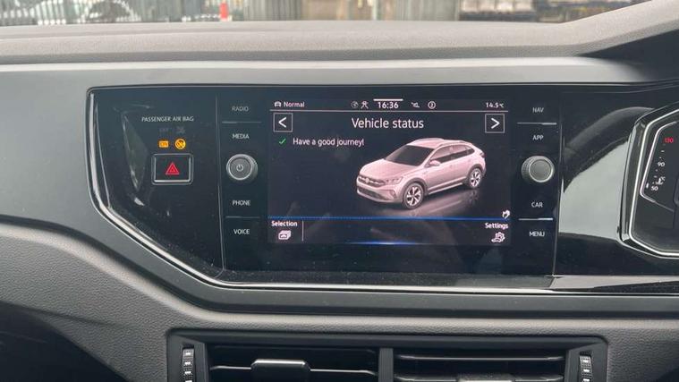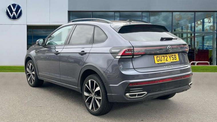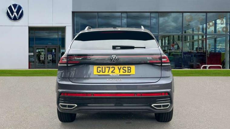 Adaptive cruise control, App-Connect including App-Connect Wireless, Digital cockpit pro - 10.25" high resolution TFT dash display screen with customizable menus and information, Driver alert system, Driving profile selection, e-Call (emergency call), Power Steering, Travel assist including emergency assist, Washer fluid level indicator, Wireless Charging including Bluetooth, Start-stop system with battery regeneration (recuperation - energy recovery during braking), XDS electronic differential lock for improved traction and handling, Digital radio reception (DAB+), Diversity antenna for FM reception, WeConnect plus, Ambient lighting with logo projection, Aspherical driver's exterior mirror, Auto headlights, Body coloured bumpers, Body coloured exterior mirror housings and door handles, Bumpers in R-Line style, Electric windows, External USB type C socket and charging sockets, Front fog lamps with cornering function, Front scuff plates with R-Line logo, Headlight range control, LED headlamps, LED rear combination lamp, LED third brake light, Left convex exterior mirror, Power folding adjustable/heated exterior mirrors and front passenger exterior mirror lowering function, Rear fog light on one side, reversing light on both sides, Rear side wing doors, Rear wash/wipe with intermittent wipe setting, 12V socket in centre console, 2 front reading lights, 3 rear head restraints, 3 seat bench in 2nd row, Air care climatronic air conditoning system with active combination filter and 2-zone temperature control, Black carpets, Black roof lining, Child seat anchor for child seat system i-Size, 2x top tether and child seat anchor in front on front passenger side, Chrome bezel for instrument cluster, vents, door handles + gear shift, Driver and front passenger seat height adjustment, Front + rear carpet mats, Front centre armrest, Front footwell illumination, Front sports comfort seats, Height and reach adjustable steering wheel, Interior ambient lighting and surround lighting, Karoso artvelours cloth upholstery, Leather trimmed gear knob, Leather wrapped multifunction steering wheel, Luggage compartment floor, Luggage compartment light, Lumbar support for driver's and front passengers seat, Seat covers in grey + titanium black, Single front passenger seat, Split folding backrest with centre armrest and unsplit rear seat bench, Stainless steel pedals, Storage compartment under front seats, Sun visors with illuminated vanity mirrors, Chrome Package - Taigo, Drivers assistance pack - Taigo, Light and Sight pack including High beam assist - Taigo, 2 x 3-point seatbelts/outer rear seats with ECE label, 3-point seat belts in front with pretensioner and height adjustment, 3-point seatbelt for centre rear seat, Driver and front passenger airbags with front passenger airbag de-activation, front side and curtain airbags, Driver and front passenger safety-optimised head restraints, Electronic stability control, Extended and predictive pedestrian/ cyclist protection, Front and rear disc brakes, Front curtain and side airbags with center airbag, Hill start assist, Manual rear child locks, Single tone horn, Tyre pressure loss indicator, Anti-theft alarm system with interior monitoring, backup horn, and towing protection, Anti-theft wheel bolts, Grey anodised matte decorative inserts in dash and front door panels, Low rolling resistance tyres,