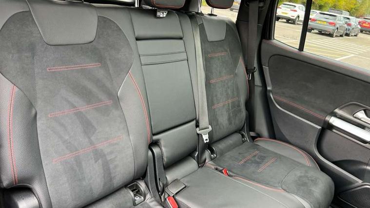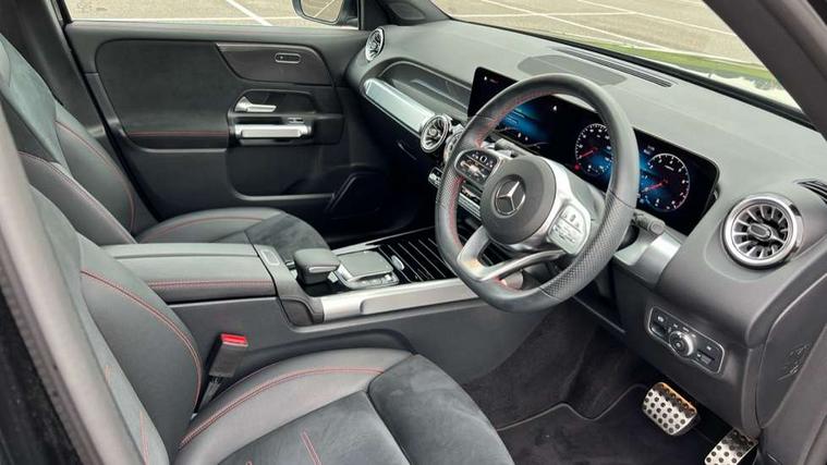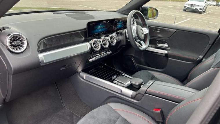 10.25" Digital instrument cluster display screen, 10.25" Digital media screen display, Attention assist - Monitors steering behaviour and long journey fatigue, Brake pad wear indicator warning light, Car wash mode, DYNAMIC SELECT with a choice of driving modes (ECO, Comfort, Sport and Individual), ECO start/stop function, Fluid level warning indicator for fuel, oil, coolant and washer fluid, Hard disk navigation, Hey Mercedes Voice activation, Lamp failure indicator, Mercedes me connect including emergency call system, accident recovery, breakdown and maintenance management, Mercedes me remote services, Outside temperature gauge, Owners manual and service booklet in English, Parameter steering system, Pre-installation of private car share, Radio aerial integrated into front and rear windshields, Service indicator (ASSYST), Smartphone integration with Apple CarPlay and Android auto, Traffic sign assist, Trip computer in multifunction display with current consumption indicator, Comfort suspension, Rear axle multi-link, DAB digital radio tuner, MBUX multimedia system with DAB digital radio and touchpad including satellite navigation, Mercedes Benz sound system (225 W) with 10 speakers, 1 central speaker, speakers on doors, a tweeter on door, one sub woofer + boost amplifier, Pre installation for Mercedes Benz Link, USB (type C) port in front stowage compartment, USB (type C) ports (2) in stowage compartment, Adaptive brake lights, Aerial for GPS, AMG bodystyling door panels black grained with chrome plated inserts, AMG bodystyling front apron with chrome splitter, AMG bodystyling rear apron with diffuser optics and chrome trim element, AMG specific front and rear bumper including underride guard in high gloss chrome, Auto headlights, Beltline strips and weather strip in chrome, Body coloured door handles with chrome insert for keyless entry, Body coloured door mirror caps, Electric adjustable and heated door mirrors with integrated LED side indicators, Electric panoramic glass sunroof, Exhaust system with dual flow exhaust pipes (non-functional), Front and rear electric windows, Headlamp assist automatic headlamp activation, Heated glass rear windscreen + timer control, High level LED third brake light, Interior mirror with black reading lamps and frameless, LED daytime running lights, Multibeam LED headlamps and tail lamp with adaptive high beam assist, Polished aluminium roof rails, Privacy glass with dark tinting on rear side windows and rear window, Radiator grille with pins in chrome and single louvre with chrome insert, Rain sensor windscreen wipers, Rear fog lamp, Rear side wing doors, Rear wiper, Two visible tailpipe trim elements exhaust, 3 seat bench in 2nd row, 3 spoke multifunction sport steering wheel in nappa leather, Air conditioning - Two zone thermotronic luxury automatic climate control with display, AMG sports pedals with brushed stainless steel surfaces and black rubber studs, Artico man-made leather/Microfibre Dinamica upholstery with red contrast stitching, Automatic child seat recognition sensor, Black floor mats with AMG lettering, Black roof lining, Fore/aft adjustment rear seats, Freight packaging with tie-down hooks, Front centre armrest with stowage, Front door sills with illuminated changeable cover, Front passenger grab handle with brushed side silver chrome, Galvanished gear shift paddles on steering wheel, Heated front seats, Height/reach adjustable steering column, Interior lighting - 64 colour Ambient lighting, Luggage net on driver/front passenger seat backrest, Rear armrest with two integral cup holders for drinks, Rear seat easy entry, Single front passenger seat, Sports seats with adjustable head restraints, Stowage compartment in centre console, Stowage compartment with retractable cover, Third row of seats for two people on rear seat, Touchpad on center console, Twin front cup holders, Two outer rear seat isofix and top tether child seat fixing points, Interior lighting with light and sight pack - GLB, Keyless go pack - GLB, Mirror pack - GLB, Parking pack - GLB, 3 rear 3 point seatbelts, Active bonnet pedestrain safety measure which detects an impact and raises bonnet by 65mm, Adaptive brake assist with hold function and hill start assist, Airbags - kneebag for driver, Anti-lock braking system (ABS) with brake assist, Childproof locks manually operated for rear doors and electrically operated for rear power windows, Crash responsive emergency lighting, Curve dynamic assist, Driver and front passenger head and sidebags, Driver and front passenger windowbags, Dual stage driver and front passenger airbags, Electronic parking brake, Electronic stability programme with acceleration skid control, Front and rear seatbelt reminder, Front brake callipers with Mercedes Benz lettering, Front passenger seat occupancy sensor, Tyre pressure monitoring system, Warning triangle and first aid kit, Remote central locking and crash sensor with emergency opening function, Thatcham category 1 alarm system with immobiliser and interior protection, Urban guard vehicle protection - Anti theft alarm system, tow away protection with visual and acoustic warning and alarm siren, Vehicle key with decorative surround in chrome, Black air vents with chrome surround, Carbon structure trim, 19" AMG 5 twin spoke light alloy wheels painted in tantalite grey with high sheen finish, Summer tyres, Tirefit tyre sealant kit,