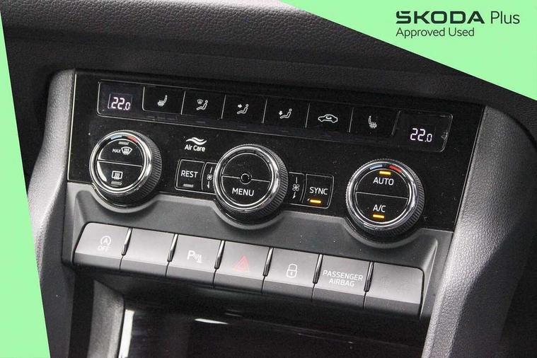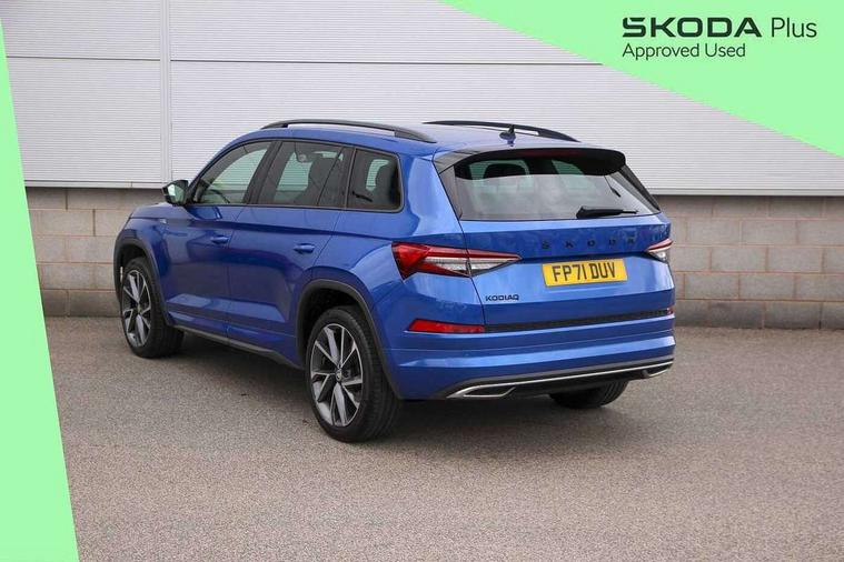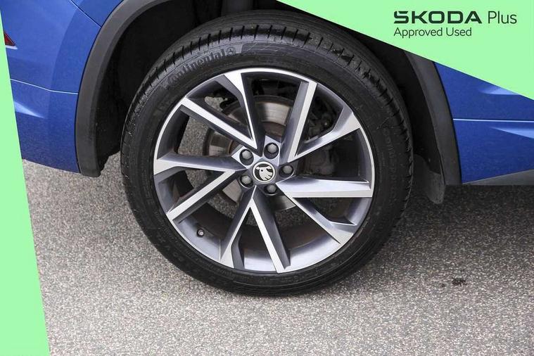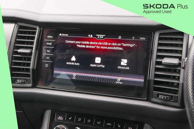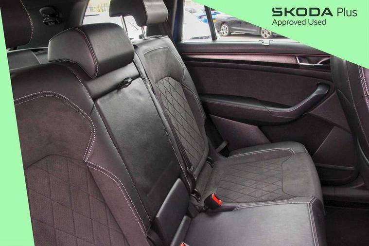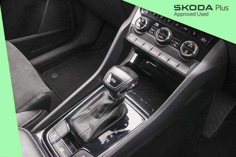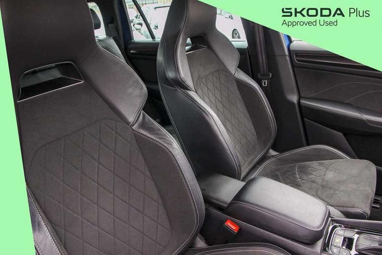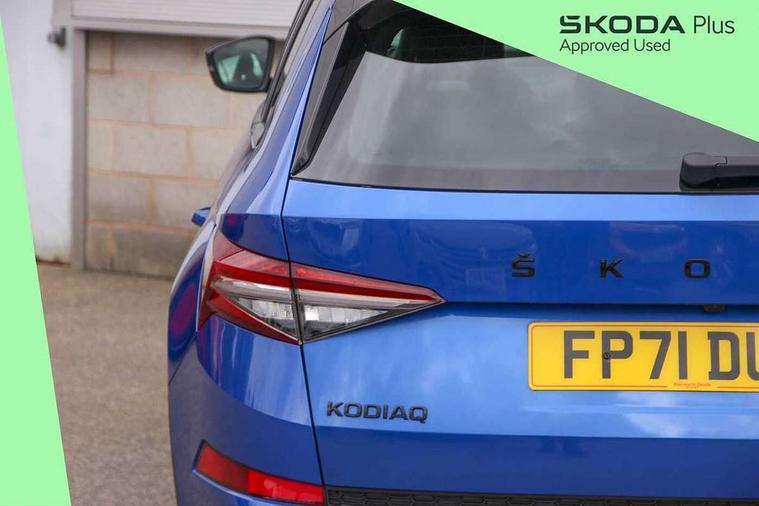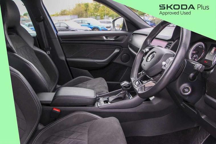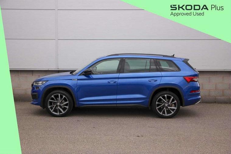 Bluetooth system, Columbus satellite navigation with 9.2" touchscreen, integrated Wi-Fi, web radio, E-call, ECO Stop/start function, Exterior temperature indicator, Progressive steering, Rear view camera, Smartlink wireless for apple carplay and wired for android auto, Speed limiter, Tailgate unlocking from outside, USB C Port x 2 in front centre console, Wireless charging, 8 Speakers, DAB Digital radio, Aero front windscreen wipers with intermittent function, Aero rear window wiper, Auto dimming rear view mirror, Black roof rails, Black sports styling including front grille and window surrounds, Black wheel arch surrounds, Body colour bumpers, Body colour door handles, Electric adjustable/heated/folding door mirrors, driver side auto dimming with boarding sports and memory function, Electric front and rear windows, Extended rear spoiler with finlets in gloss black, Front fog lights, Full LED matrix headlights with AFS (adaptive front light system), cornering function and AWL (all weather lighting system), Gloss black door mirrors, Headlight washers, Heated rear window, Invisible tailpipe, LED daytime running lights, LED rear fog light, LED third brake light in rear spoiler, Light assistant (coming/leaving home/tunnel light), Off-road style lower front bumper element, Privacy glass, Rain and light sensors, Rear diffuser, Rear LED lights (high functionality) with welcome effect and dynamic indicators, Rear side wing doors, Safety reflectors on front and rear doors, Sportline badge on front fender, Sports front and rear bumpers including lower rear chrome strip, Tailgate lettering in Black, Window control switches with black trim, 12V socket in boot, 2 rails with 2 hooks, 2 seat bench in 3rd row, 3 seat bench in 2nd row, 4 foldable roof handles with rear coat hooks, 60:40 foldable rear seat with sliding adjustment and backrest angle adjustment, Aluminium pedals, Black roof headlining, Bottle holders in door panel in the 1.5 litre front and 1 litre rear, Cargo storage compartments, Chrome headlight control button, Chrome interior door handles, Coat hooks on B pillar, Covered storage compartment on driver side, Decorative door sills in the front and rear, Front centre armrest with storage compartment, cup holder and 12V socket, Front courtesy lights, Gear shift lever with chrome frame and black gloss insert, Grey stitching in front and rear armrests and door armrests + door inserts, Height adjustable front headrests, Illuminated and cooled glovebox, Illuminated luggage compartment, Isofix child seat fittings in outer rear seats with top tether, Manually adjustable steering column, Microsuede door panels, Net programme in boot (1x horizontal Net, 2x vertical Nets), Overhead glasses storage compartment, Pollen filter, Rear centre armrest with cupholders, Single front passenger seat, Sliding trunk cover, Small Bags on the inner sides of the front backrests, Sports seats, Sunvisors with illuminated vanity mirrors, Three rear height adjustable headrests, Ticket holder on A Pillar, Umbrella in door panel, Variable boot floor, LED Interior light pack - Kodiaq, Auto door release and activation of warning lights in the event of an accident, Child locks on rear doors, Driver and front passenger airbag with knee airbag and front passenger airbag deactivation, Electronic parking brake with hill start assist, Emergency rear braking signal, ESC (incl. ABS+MSR+ASR+EDS+HBA+DSR+RBS+MKB), Front assist with autonomous emergency braking, Front side airbags with curtain airbags, Fuel cut off safety device, Height adjustable front 3 point seatbelts + pretensioners, Hill hold control, Rear disc brakes, Safety vest holder in door, Seat belt reminder for all seats, Three point rear seat belts, Two tone horn, Tyre pressure monitor, Alarm with interior monitoring and tilt sensor with safe function, Anti-theft wheel bolts, Immobiliser, Keyless entry and start system (KESSY), Remote central locking with 2 keys, Black air vent surround, Carbon finish dashboard and door inserts, Grey stitching in dashboard, 20" Vega Anthracite alloy wheels, Temporary spare wheel (space saver),
