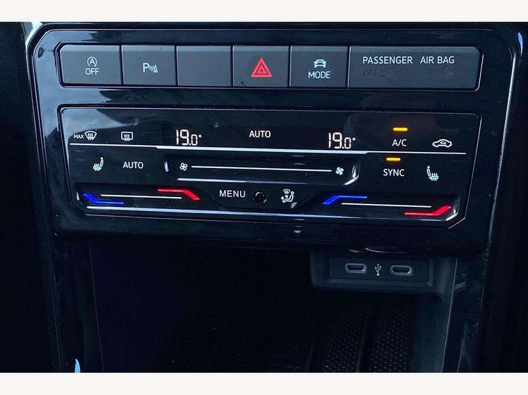 'Lights On' Reminder warning buzzer, 10.25" Digital cockpit pro, Advanced driver attention and drowsiness monitor, Blind spot monitoring, Car information display, Driver profile selection including ECO function, Dynamic road sign display, E-Sim card for online connectivity, eCall emergency call system, Front and rear parking sensors, Front assist, forward collision warning, autonomous emergency braking and speed limiter, Low washer fluid warning light, Multifunction computer with visual gear change recommendation for fuel consumption, Multifunction front facing camera for distance control, Operating permit alteration, Power assisted steering, Predictive adaptive cruise control, Preparation for navigation system with media and internet package, Preparation for We connect and We connect plus, Semi-automated driving assistance, travel assist including lane keeping system Lane Assist and emergency assisst, Speedo, rev counter, electronic odometer, trip, service interval display, exterior temperature and fuel gauge, Warning sound and light for doors and tailgate open, Warning sound and light for front seatbelts unfastened, Wireless Car net app connect with Apple CarPlay, combined functionality of Apple CarPlay/Android Auto and MirrorLink, Wireless charging, Misfuel prevention device, Start-stop system with battery regeneration (recuperation - energy recovery during braking), 2 USB C ports in front, 2 USB charging sockets on the centre console in the rear charging capacity upto 45W, Diversity antenna for FM reception, Music playback - MP3, WMA and AAC files, Radio, Automatic dimming interior rear view mirror, Automatic hazard lights activation under emergency braking, Automatic headlight control with LED separate daytime running light and coming home and leaving home feature, Body colour door handles, Body colour door mirrors, Body coloured bumpers, Dynamic headlight range control with self adjusting whilst driving, Electric folding door mirror, adjustable, heated with front passenger exterior mirror lowering function, Exterior mirrors convex on the left and aspherical on the right, Front and rear electric windows, Front door sill protectors with R-Line logo, Galvanised body, Heat insulating and laminated safety glass windshield, Heat insulating darkened glass in side and rear windows, High Beam Assist, automatic sensing for switching between dipped and main beam, LED rear combination lights, LED third brake light, Lower door sills and door pillars in black, Privacy glass for rear side windows and rear window, Rain sensor, Rear fog light on one side, reversing light on both sides, Rear side wing doors, Rear window aerial, Rear window wiper with intermittent control, Reflectors in all doors, Scuff plates, Tailgate with integrated roof spoiler, 12V Accessory socket in centre console, 2 Front and rear reading lights incorporating LED technology, 3 rear head restraints, 3 seat bench in 2nd row, 60/40 split folding rear seat backrest, Air care climatronic 2 zone air conditioning system, Ambient lighting, Brushed stainless steel pedals, Chrome plated radiator grille inserts, air vent surrounds and light switch surrounds, Cloth upholstery, Comfort front sport seats, Door and side trim panel, Drawer under drivers seat, Driver and front passenger sunvisor with vanity mirror, Dust and pollen filter, Front + rear carpet mats, Front centre armrest with storage compartment, Front footwell illumination, Front seat back storage pockets, Glove compartment door with light, Heated front seats, Heating and fresh air system with 4 stage blower, Height/reach adjust steering wheel, Instrument lighting white adjustable panel illumination, Interior light with switch off delay and dimmer, Isofix anchors for child seats on outer rear seats and front passenger seats, Leather gearshift handle, Leather wrapped multifunction steering wheel, Luggage compartment floor, Luggage compartment lighting, Manual front seats with height adjustment, Padded dashboard, Removable luggage compartment cover, Single front passenger seat, Storage compartment in drivers and front passengers door, Titanium black roof lining, Unsplit sliding rear seat bench, 3 point outer rear seat belts with ECE label, 3 Point seatbelt for centre rear seat, Anti-lock Braking System (ABS) with Hydraulic Brake Assist (HBA), Automatic post collision braking system, Disc brakes in front, Disc brakes in rear, Driver and front passenger safety-optimised head restraints, Drivers and Front Passengers airbags with front passengers airbag deactivation switch, ESC with EDL and ASR (traction control), Extended and predictive pedestrian/cyclist protection, Front and rear passenger curtain airbag system including front side airbags, Height adjustable front 3 point seatbelts + pretensioners, Hill start assist, Pre crash preventive occupant protection, Proactive passenger protection system in combination with front assist, Rear door child safety locks, Rigid safety cell with front and rear crumple zones, Single tone horn, Tyre pressure loss indicator, Volkswagen roadside assistance, Alarm with interior protection, Anti theft alarm system, Electronic engine immobiliser, Remote tailgate unlocking using key fob, Titanium Black Decorative inserts - R Line, Low rolling resistance tyres,