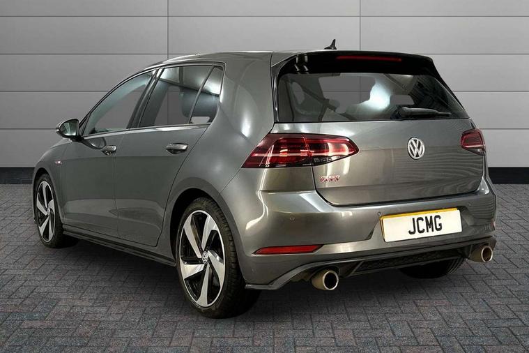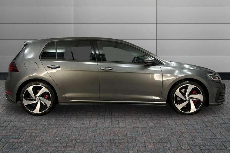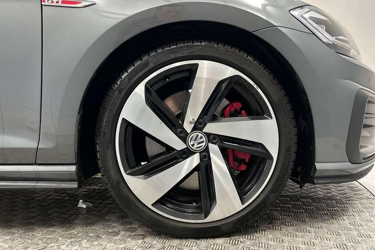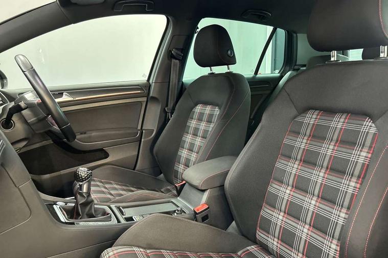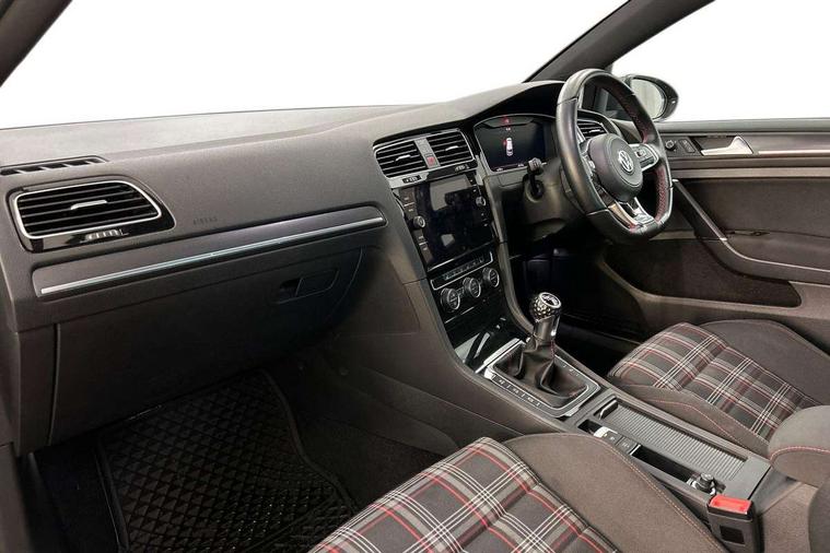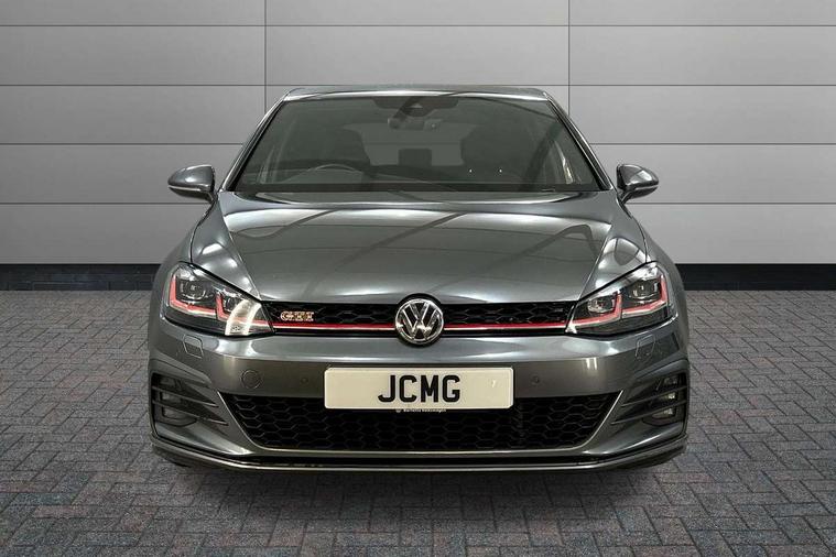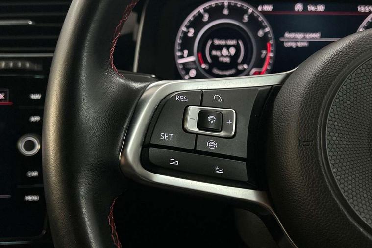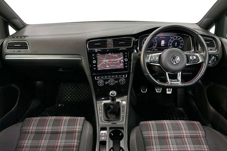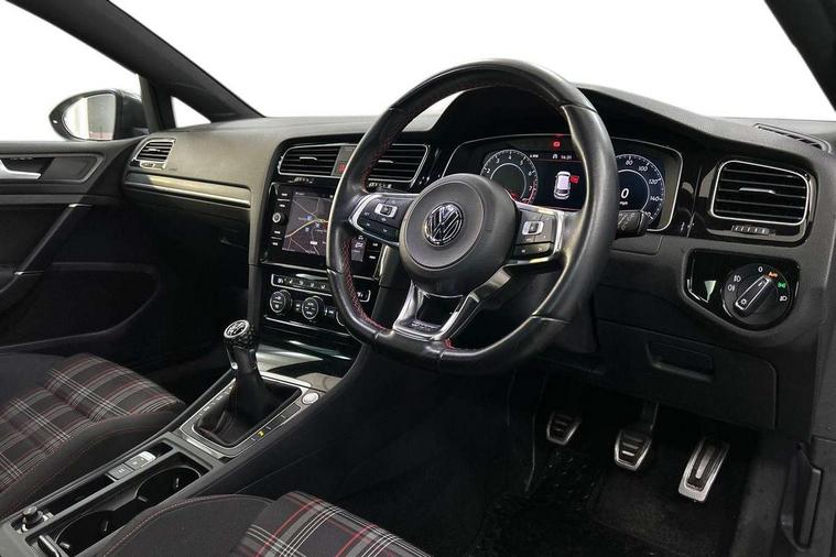 'Lights On' Reminder warning buzzer, ACC - Adaptive cruise control with front assist, forward collision warning, distance monitoring, city emergency brake and speed limiter, Bluetooth telephone and audio connection for compatible devices, Brake pad wear indicator warning light, Driver alert system, Driver profile selection, Driving Mode Selection with four preset modes - Eco, normal, sport or individual modes, Instrument cluster in white, Lane assist with dynamic light assist and traffic sign recognition, Multifunction computer with visual gear change recommendation for fuel consumption, Power assisted speed sensitive electro-mechanical steering, Push tank flap, Rear view camera, Speedo, rev counter, electronic odometer, trip, service interval display, exterior temperature and fuel gauge, Stop/start system, Warning buzzer and light for front seatbelts unfastened, Battery regeneration during braking, Limited slip differential, Lowered sports suspension, XDS electronic differential lock, Composition media system, DAB Digital radio receiver, MP3/WMA compatability, Multi device interface (MDI) with USB connection, Premium USB cable in choice of either Apple or Android smartphone compatibility, SD card slot, SMS Functionality, USB and SD card connectivity, Volkswagen media control, 3D-LED tinted rear light clusters with indicator sweep function, Black rear diffuser, Body colour door handles, Body colour door mirrors with integrated indicators, Body colour rear roof spoiler, Body colour sports bumpers, Dusk sensor + automatic driving lights, Electric front windows, Electric rear windows, Electrically adjustable and heated door mirrors, Fully galvanised body, GTI logo in red on front and back, GTI logo lettering on front wings on right and left, Heated rear windscreen, High level 3rd brake light incorporating LED Technology, Honeycomb radiator grille - black, LED daytime running lights, LED front fog lights with static cornering light function, LED headlights with dynamic light assist, Rear fog lamp, Rear window aerial, Rear window wash/wipe with intermittent wipe, Reflectors in all doors, Shiny black aerofoil downside, Sill extensions, Twin exhaust tailpipe, Windscreen wipers/ intermittent wipe + 4 position delay, 12V socket in luggage compartment, 3 rear headrests, 4 load lashing points in luggage compartment, 60/40 split folding rear seat backrest, Bag hook in luggage compartment x 2, Black headlining, Climate control - 2 zone electronic air conditioning with automatic air recirculation and allergy filter, Cooled glovebox, Dust/pollen filter, Front + rear carpet mats, Front centre armrest with storage compartment and two rear air vents, Front seat back storage pockets, Grab handles front x 2, rear x 2 with integrated coat hooks, Height and reach adjustable steering wheel, Illuminated door sills, Illuminated vanity mirrors, Instrument lighting white adjustable panel illumination, Interior light delay, Isofix preparation for 2 rear child seats, Leather gear knob and handbrake grip, Load through provision with rear centre armrest and cupholders x2, Luggage compartment lighting, Multifunction leather steering wheel with GTI logo and selector lever boot grip with red stitching, Overhead storage box, Stainless steel pedals, Storage box in luggage compartment, Storage compartment in roof console with cover, Storage compartments in front doors, Storage compartments in rear doors, Stowable luggage compartment cover, Sun visors, Variable boot floor, height adjustable and removable, Ambient lighting pack - Golf, Convenience Pack - Golf, Light and Sight pack - Golf, Mirror pack - Golf, 3 rear three point seatbelts, Airbags - Driver's and front passenger's, curtain airbag, Driver's knee, front side impact and passenger's airbag deactivation switch, Anti-lock Braking System (ABS) with Hydraulic Brake Assist (HBA), Automatic post collision braking system, Child locks on rear doors, Driver/Passenger optimised head restraints, Electronic parking brake with auto hold, Electronic stability control (ESC) including Electronic differential lock (EDL) and ASR (Traction control) with deactivation via infotainment system, Front ventilated disc brakes and rear disc brakes, Pre crash preventive occupant protection, Red brake calipers, Three point height adjustable front seatbelts with tensioners, Tyre pressure loss indicator, Alarm with interior protection and deactivation via infotainment system, Electronic engine immobiliser, Keyless entry with start/stop button on centre console, Remote central locking with 2 remote folding keys, Chrome plated air vent surround, Chrome plated electric mirror adjustment light switch surround, Honeycomb black decorative inserts, Piano black centre console, Steel space saver spare wheel,