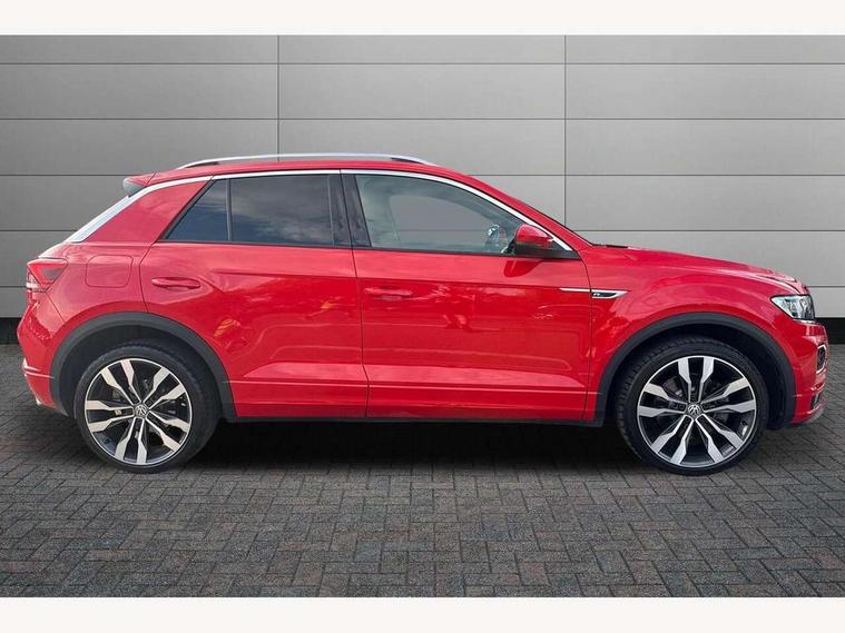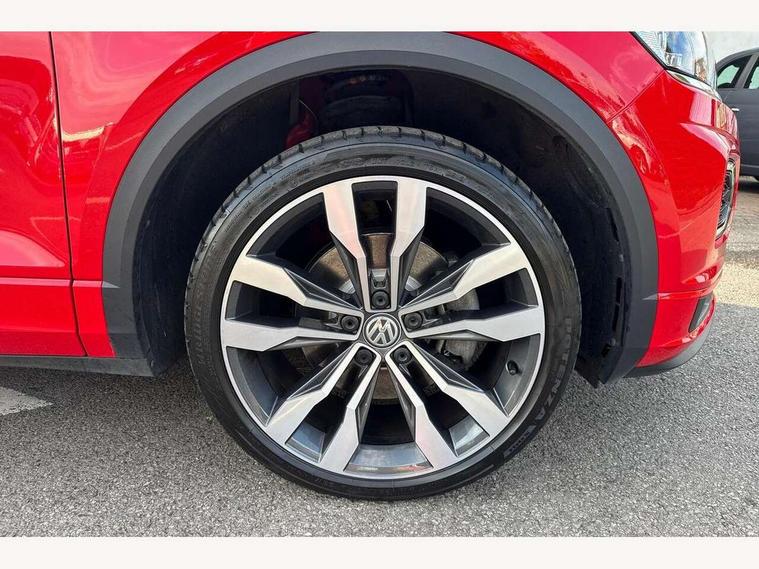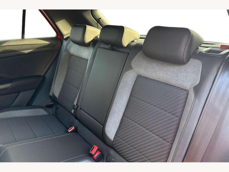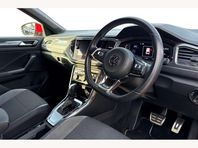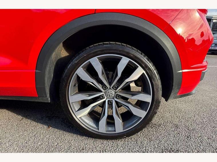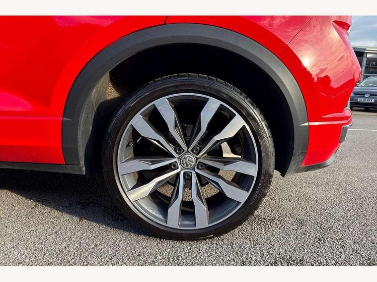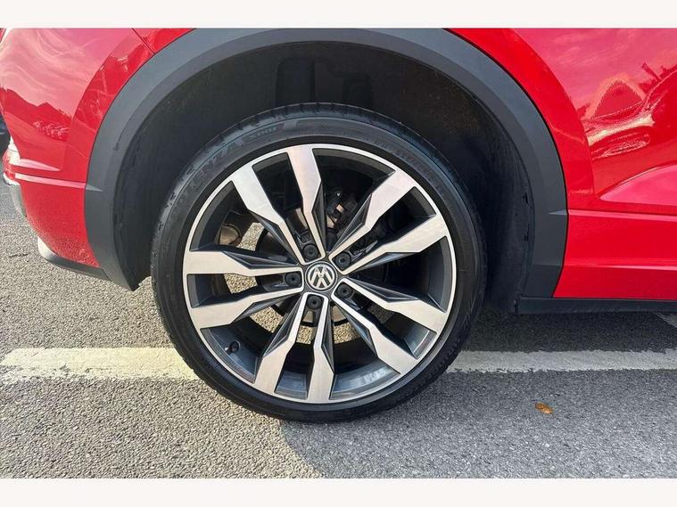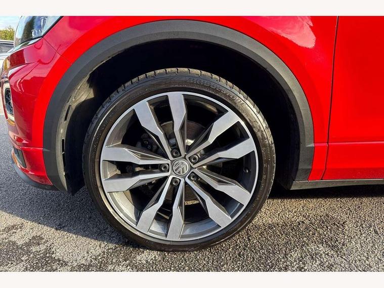 'Lights On' Reminder warning buzzer, 2 USB connection charging sockets, Active Info Display, 10.3" high resolution TFT dash display screen with customised information, Adaptive cruise control with front assist, radar sensor controlled distance monitoring, city emergency braking, App-Connect, Automatic start/stop system, Bluetooth telephone and audio connection for compatible devices, Car information display, Car-Net Security and Service, Discover navigation, 8" touch screen navigation/infotainment system with Car-Net, European map, CD/radio, 2D/3D map and speed limiter, Driver alert system with audible and visual fatigue detection system, Driver tips and journey analysis, Driving profile selection - Eco, normal, sport or individual modes with Individual mode allows for steering, drive and air conditioning settings, Lane assist, Multifunction computer with visual gear change recommendation for fuel consumption, Service interval indicator, Think blue trainer driver tips and journey analysis, Voice activation, Warning sound and light for doors and tailgate open, Warning sound and light for front seatbelts unfastened, Battery regeneration during braking, DAB Digital radio, Dynamic navigation based on TMC+, Multi device interface (MDI) with USB connection, Music playback - MP3, WMA and AAC files, Premium USB cable in choice of either Apple or Android smartphone compatibility, SD card slot, Simultaneous pairing of 2 compatible mobile devices, SMS functionality - read, compose and send SMS messages using touch-screen display, Three route options - Fast, Short, Eco, Title and cover art display, Auto dimming interior rear view mirror, Black grained lower door protectors, Body colour door handles, Body colour rear roof spoiler, Chrome effect left and right trapezoid exhaust tailpipe fascia surround, Chrome trim on upper and lower radiator grille, Dusk sensor, Electrically foldable, adjustable and heated door mirrors with puddle lights and reverse activated kerb-view adjustment on passenger's door mirror, Front and rear electric windows, Front fog lights with static cornering function, Front windscreen wiper with intermittent wipe and 4 position delay, Fully galvanised body, Heated rear window, High level 3rd brake light, LED darkened rear light clusters, LED rear number plate lights, Manual coming/automatic leaving home lighting function, Rain sensor, Rear tinted glass from B-pillar backwards approx 65% tinted, Rear wash/wipe with intermittent wipe setting, 12V socket in centre console storage area, 2 Front and rear reading lights incorporating LED technology, 3 rear head restraints, 4 load lashing points in luggage compartment, Aluminium pedals, Ambient lighting in front footwell and light strips below trim in front doors, Black roof lining and sun visors, Branded points of interest, Carbon flag cloth upholstery, Climate control - 2 zone electronic air conditioning with automatic air recirculation and allergy filter, Drawer under drivers seat, Front and rear carpet mats with contrast stitching, Front centre armrest with storage compartment, longitudinal and height adjustable and two rear air vents, Front cupholders x 2, Front footwell illumination, Front seat back storage pockets, Front sports seats with R-Line logo on seat backrest, Glovebox, Height adjustable front seats, Height/reach adjust steering wheel, Illuminated vanity mirrors, Instrument lighting, white adjustable panel illumination, Interior light delay, Isofix easy fit child seat preparation for 2 outer rear seats, Load through provision with single cup holder when folded down, Luggage compartment cover, removable, Luggage compartment lighting, R Line badge, Split folding rear seat backrests with centre armrest, Storage compartment in left and right luggage area, Storage compartment in rear doors, Storage compartments in driver and front passenger doors, Three spoke multifunction leather trimmed steering wheel including gear knob and paddle shift with aluminium inserts contrast stitch and R Line logo, Unique R Line door sill protectors, R line styling pack - T-Roc, Winter pack - T-Roc, 3 rear three point seatbelts, ABS, Curtain airbags, Driver and front passenger safety-optimised head restraints, Drivers and front passengers airbags with passengers deactivation switch, Electronic parking brake with auto hold, Electronic stability control (ESC) includes ASR, EDL, EDTC and trailer stabilisation function, Front seat side impact airbags, Predictive pedestrian protection, Rigid safety cell with front and rear crumple zones, Three point height adjust front seatbelts + pretensioners, Tyre pressure loss indicator, Ventilated front and rear disc brakes, Volkswagen roadside assistance, Alarm with interior protection and deactivation via infotainment system, Electronic engine immobiliser, Remote central locking with 2 remote folding keys, Shadow steel decorative inserts in dash and door panel, 19" Suzuka alloy wheels with low rolling resistance tyres and anti wheel bolts, Space and weight saver spare wheel,