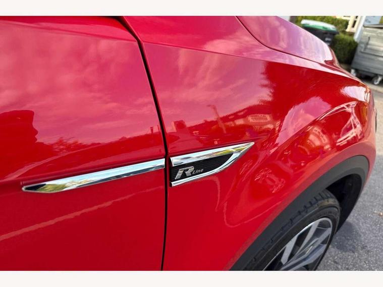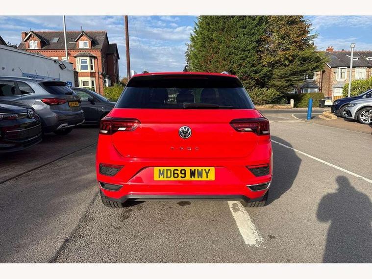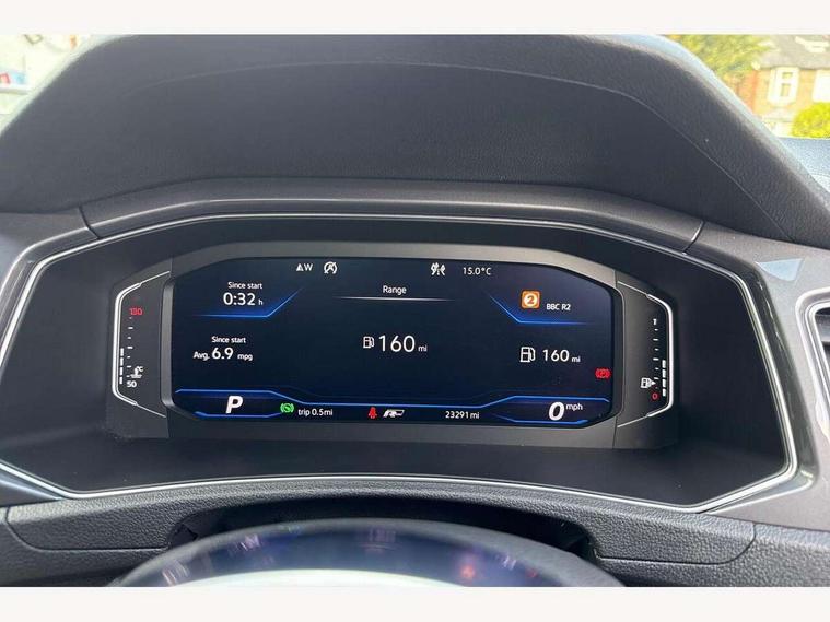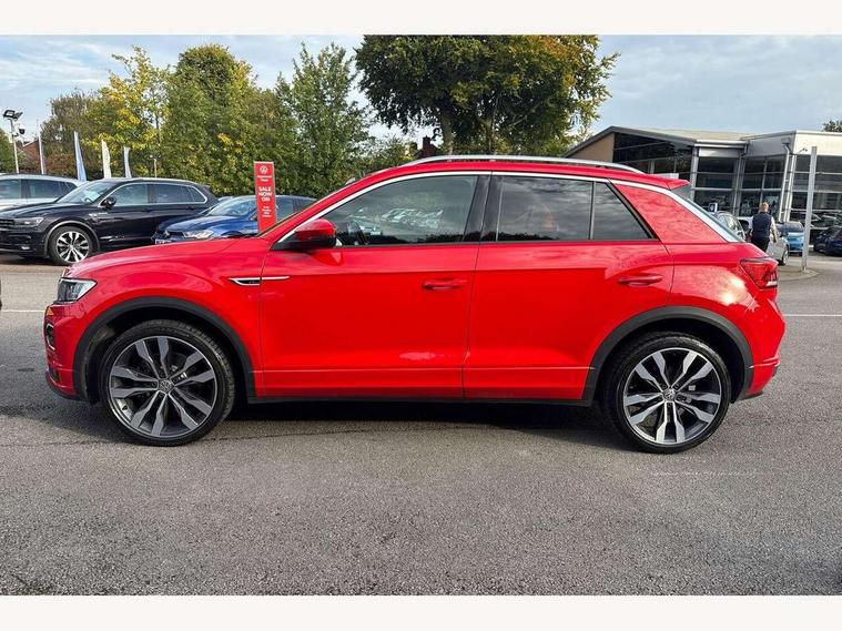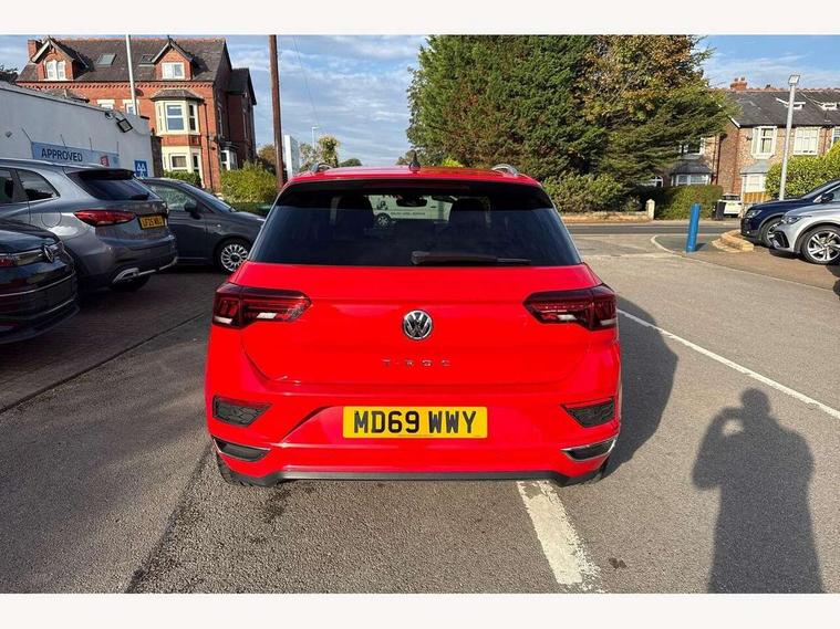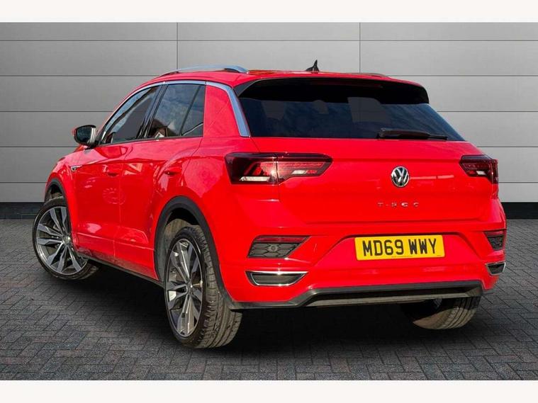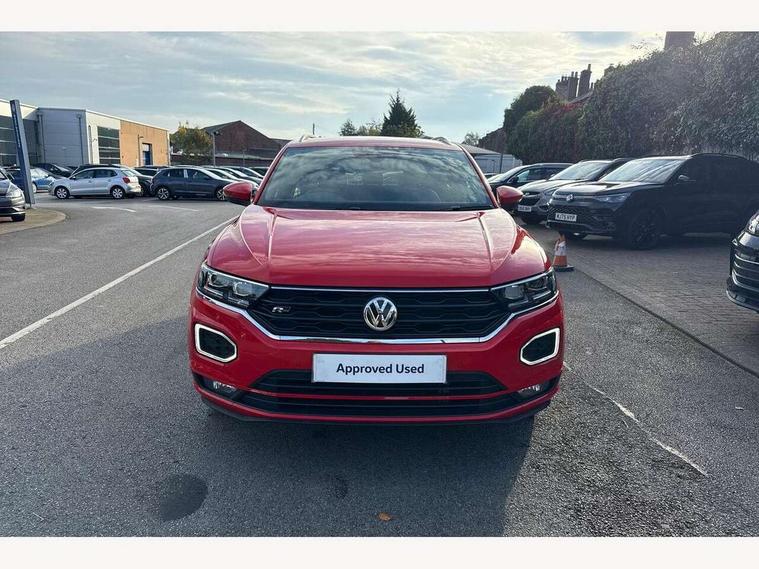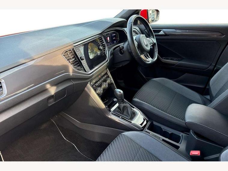 'Lights On' Reminder warning buzzer, 2 USB connection charging sockets, Active Info Display, 10.3" high resolution TFT dash display screen with customised information, Adaptive cruise control with front assist, radar sensor controlled distance monitoring, city emergency braking, App-Connect, Automatic start/stop system, Bluetooth telephone and audio connection for compatible devices, Car information display, Car-Net Security and Service, Discover navigation, 8" touch screen navigation/infotainment system with Car-Net, European map, CD/radio, 2D/3D map and speed limiter, Driver alert system with audible and visual fatigue detection system, Driver tips and journey analysis, Driving profile selection - Eco, normal, sport or individual modes with Individual mode allows for steering, drive and air conditioning settings, Lane assist, Multifunction computer with visual gear change recommendation for fuel consumption, Service interval indicator, Think blue trainer driver tips and journey analysis, Voice activation, Warning sound and light for doors and tailgate open, Warning sound and light for front seatbelts unfastened, Battery regeneration during braking, DAB Digital radio, Dynamic navigation based on TMC+, Multi device interface (MDI) with USB connection, Music playback - MP3, WMA and AAC files, Premium USB cable in choice of either Apple or Android smartphone compatibility, SD card slot, Simultaneous pairing of 2 compatible mobile devices, SMS functionality - read, compose and send SMS messages using touch-screen display, Three route options - Fast, Short, Eco, Title and cover art display, Auto dimming interior rear view mirror, Black grained lower door protectors, Body colour door handles, Body colour rear roof spoiler, Chrome effect left and right trapezoid exhaust tailpipe fascia surround, Chrome trim on upper and lower radiator grille, Dusk sensor, Electrically foldable, adjustable and heated door mirrors with puddle lights and reverse activated kerb-view adjustment on passenger's door mirror, Front and rear electric windows, Front fog lights with static cornering function, Front windscreen wiper with intermittent wipe and 4 position delay, Fully galvanised body, Heated rear window, High level 3rd brake light, LED darkened rear light clusters, LED rear number plate lights, Manual coming/automatic leaving home lighting function, Rain sensor, Rear tinted glass from B-pillar backwards approx 65% tinted, Rear wash/wipe with intermittent wipe setting, 12V socket in centre console storage area, 2 Front and rear reading lights incorporating LED technology, 3 rear head restraints, 4 load lashing points in luggage compartment, Aluminium pedals, Ambient lighting in front footwell and light strips below trim in front doors, Black roof lining and sun visors, Branded points of interest, Carbon flag cloth upholstery, Climate control - 2 zone electronic air conditioning with automatic air recirculation and allergy filter, Drawer under drivers seat, Front and rear carpet mats with contrast stitching, Front centre armrest with storage compartment, longitudinal and height adjustable and two rear air vents, Front cupholders x 2, Front footwell illumination, Front seat back storage pockets, Front sports seats with R-Line logo on seat backrest, Glovebox, Height adjustable front seats, Height/reach adjust steering wheel, Illuminated vanity mirrors, Instrument lighting, white adjustable panel illumination, Interior light delay, Isofix easy fit child seat preparation for 2 outer rear seats, Load through provision with single cup holder when folded down, Luggage compartment cover, removable, Luggage compartment lighting, R Line badge, Split folding rear seat backrests with centre armrest, Storage compartment in left and right luggage area, Storage compartment in rear doors, Storage compartments in driver and front passenger doors, Three spoke multifunction leather trimmed steering wheel including gear knob and paddle shift with aluminium inserts contrast stitch and R Line logo, Unique R Line door sill protectors, R line styling pack - T-Roc, Winter pack - T-Roc, 3 rear three point seatbelts, ABS, Curtain airbags, Driver and front passenger safety-optimised head restraints, Drivers and front passengers airbags with passengers deactivation switch, Electronic parking brake with auto hold, Electronic stability control (ESC) includes ASR, EDL, EDTC and trailer stabilisation function, Front seat side impact airbags, Predictive pedestrian protection, Rigid safety cell with front and rear crumple zones, Three point height adjust front seatbelts + pretensioners, Tyre pressure loss indicator, Ventilated front and rear disc brakes, Volkswagen roadside assistance, Alarm with interior protection and deactivation via infotainment system, Electronic engine immobiliser, Remote central locking with 2 remote folding keys, Shadow steel decorative inserts in dash and door panel, 19" Suzuka alloy wheels with low rolling resistance tyres and anti wheel bolts, Space and weight saver spare wheel,