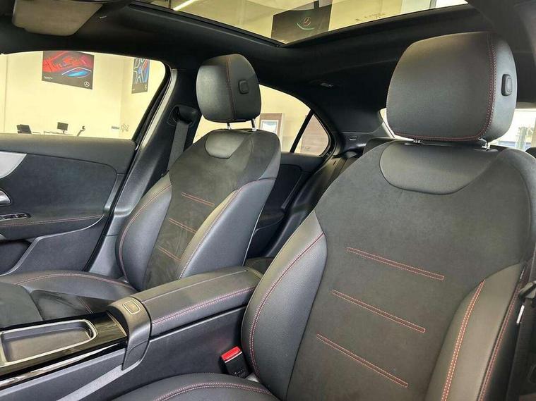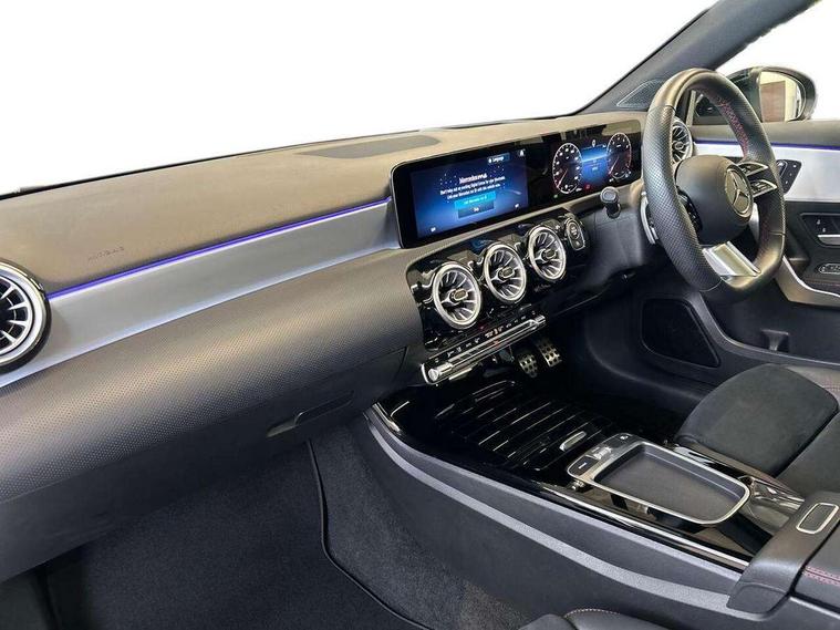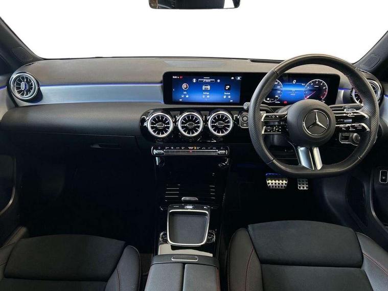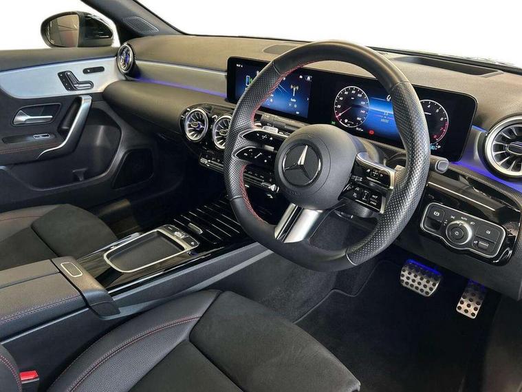 10.25 inch touchscreen central media display, 10.25" Digital instrument cluster display screen, Attention assist, Brake pad wear indicator warning light, Car wash mode, Direct steering, Direction indicators with lane change function, Dual bluetooth interfaces, DYNAMIC SELECT with a choice of driving modes (ECO, Comfort, Sport and Individual), ECO start/stop function, Engine start/stop button, Fingerprint scanner, Fluid level warning indicator for fuel, oil, coolant and washer fluid, Fluorescent jacket for driver, Hard-disk navigation, Head up Display, Hey Mercedes Voice activation, Lamp failure indicator, Mercedes me connect including emergency call system, accident recovery, breakdown and maintenance management, Mercedes me remote services, Outside temperature gauge, Owners manual in English, Pre-installation of private car share, Preinstallation for Mercedes Benz link, Remote boot closing, Service indicator (ASSYST), Smartphone integration with Apple CarPlay and Android auto, Speed sensitive power steering, Traffic sign assist, Trip computer in multifunction display with current consumption indicator, Wireless charging, Lowered comfort suspension, DAB Digital radio, MBUX multimedia system, Mercedes Benz advanced sound system (225 W) with 10 speakers, 1 central speaker, speakers on doors, a tweeter on door, one sub woofer + boost amplifier, 4 Electric Front and Rear windows, Adaptive brake lights, AMG body styling - AMG front apron with front splitter and AMG rear apron and visible exhaust tailpipe trim elements, Body colour bumpers, Body colour door handles with chrome inserts, Body colour side skirt, Chrome beltline strips, Diamond radiator grille with pins in fine star pattern, Electric adjustable and heated door mirrors with integrated LED side indicators, Exhaust system with 2 visible tailpipe trim elements and rear apron, Headlamp assist automatic headlamp activation, Heat insulating dark tinted rear and rear side windows, Heated glass rear windscreen + timer control, LED daytime running lights, LED tail lamp, Multibeam LED headlamps with adaptive highbeam assist and cornering function, Panoramic sliding sunroof, Privacy glass, Radio aerial, Rain sensing windscreen wipers with two sensitivity settings, Rear boot, Rear fog lights, Rear side wing doors, Third brake light featuring LED technology, 3 seat bench in 2nd row, 3 Spoke flat bottom leather multi function steering wheel with perforated leather in grip area, 40:20:40 split folding rear seats, Air conditioning - Two zone thermotronic luxury automatic climate control with display, AMG floor mats, Automatic child seat recognition sensor, Black air vents with surround in silver chrome, Black roof lining, Brushed stainless steel sports pedals with rubber studs, Electrically adjustable front memory seats including lumbar support and backrest inclination, Front centre armrest with stowage, Front seat backs luggage nets, Galvanished gear shift paddles on steering wheel, Height/reach adjustable steering column, Illuminated Mercedes Benz lettering front door sills with changeable cover, Interior lighting - 64 colour Ambient lighting, Interior mirror with reading lamps in black and frameless, Rear armrest with 2 cupholders, Seat occupancy sensor for front passenger seat, Single front passenger seat, Sports seats with adjustable head restraints, Stowage compartment in centre console with retractable cover, Sunvisors with illuminated vanity mirrors, Twin front cupholders, Keyless go comfort pack - A Class, Light and sight package - A Class, Mirror package - A Class, Night pack - A Class Sport, Parking pack with 360 degree camera - A Class, Seat comfort pack - A Class, USB pack plus - A Class, Winter pack - A Class, 3 rear 3 point seatbelts, ABS with Brake Assist, Active bonnet, Adaptive brake assist with hold function and hill start assist, Black seatbelts, Bonnet with power domes, Childproof locks manually operated for rear doors and electrically operated for rear power windows, Crash responsive emergency lighting, Driver and passenger head and side airbags, Drivers knee airbag, Dual stage driver/passenger airbags, Electronic parking brake, ESP curve dynamic assist, ESP with ASR, Exit warning, Front and rear seatbelt reminder, ISOFIX and top tether child seat fixing points in two outer rear seats, Tyre pressure monitoring system, Warning triangle and first aid kit, Window airbags, Alarm system/interior protection/immobiliser, Guard 360 degree vehicle protection, Remote central locking and crash sensor with emergency opening function, Light longitudinal grain aluminium trim, 19" AMG multi-spoke light alloy wheels, aerodynamically optimised, painted in black with high sheen rim flange, Summer tyres, Tirefit sealant kit,