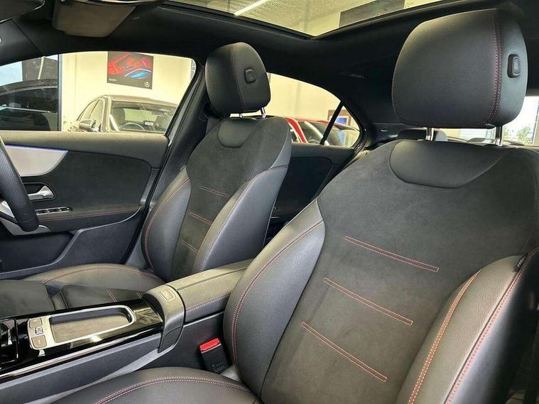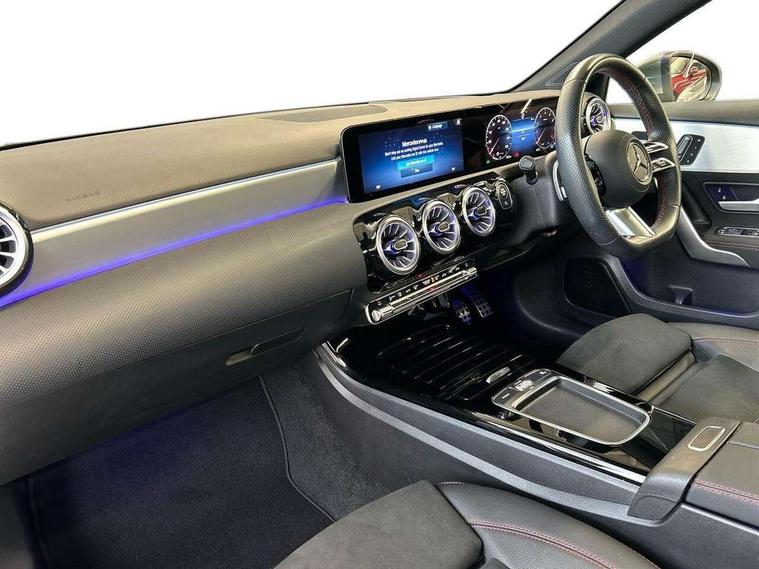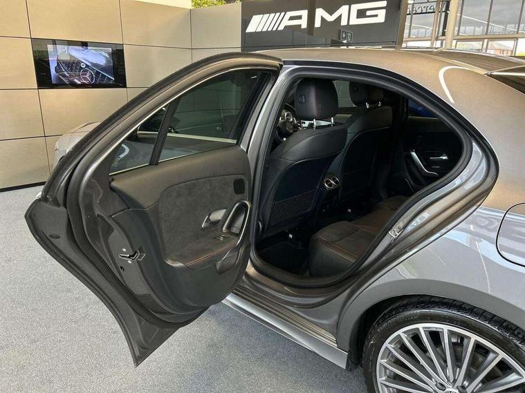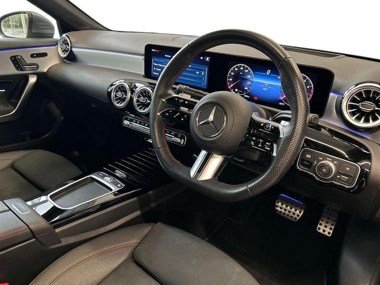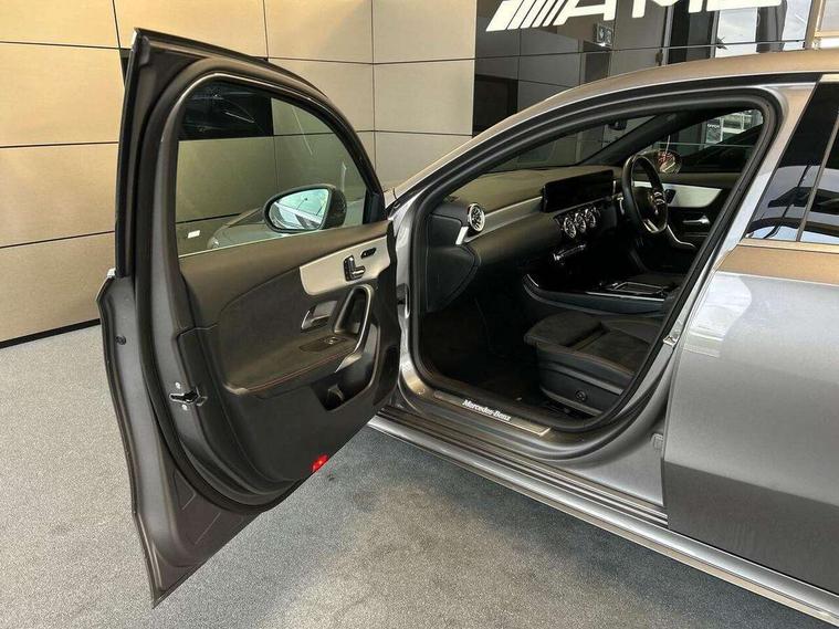 10.25 inch touchscreen central media display, 10.25" Digital instrument cluster display screen, Attention assist, Brake pad wear indicator warning light, Car wash mode, Direct steering, Direction indicators with lane change function, Dual bluetooth interfaces, DYNAMIC SELECT with a choice of driving modes (ECO, Comfort, Sport and Individual), ECO start/stop function, Engine start/stop button, Fingerprint scanner, Fluid level warning indicator for fuel, oil, coolant and washer fluid, Fluorescent jacket for driver, Hard-disk navigation, Head up Display, Hey Mercedes Voice activation, Lamp failure indicator, Mercedes me connect including emergency call system, accident recovery, breakdown and maintenance management, Mercedes me remote services, Outside temperature gauge, Owners manual in English, Pre-installation of private car share, Preinstallation for Mercedes Benz link, Remote boot closing, Service indicator (ASSYST), Smartphone integration with Apple CarPlay and Android auto, Speed sensitive power steering, Traffic sign assist, Trip computer in multifunction display with current consumption indicator, Wireless charging, Lowered comfort suspension, DAB Digital radio, MBUX multimedia system, Mercedes Benz advanced sound system (225 W) with 10 speakers, 1 central speaker, speakers on doors, a tweeter on door, one sub woofer + boost amplifier, 4 Electric Front and Rear windows, Adaptive brake lights, AMG body styling - AMG front apron with front splitter and AMG rear apron and visible exhaust tailpipe trim elements, Body colour bumpers, Body colour door handles with chrome inserts, Body colour side skirt, Chrome beltline strips, Diamond radiator grille with pins in fine star pattern, Electric adjustable and heated door mirrors with integrated LED side indicators, Exhaust system with 2 visible tailpipe trim elements and rear apron, Headlamp assist automatic headlamp activation, Heat insulating dark tinted rear and rear side windows, Heated glass rear windscreen + timer control, LED daytime running lights, LED tail lamp, Multibeam LED headlamps with adaptive highbeam assist and cornering function, Panoramic sliding sunroof, Privacy glass, Radio aerial, Rain sensing windscreen wipers with two sensitivity settings, Rear boot, Rear fog lights, Rear side wing doors, Third brake light featuring LED technology, 3 seat bench in 2nd row, 3 Spoke flat bottom leather multi function steering wheel with perforated leather in grip area, 40:20:40 split folding rear seats, Air conditioning - Two zone thermotronic luxury automatic climate control with display, AMG floor mats, Automatic child seat recognition sensor, Black air vents with surround in silver chrome, Black roof lining, Brushed stainless steel sports pedals with rubber studs, Electrically adjustable front memory seats including lumbar support and backrest inclination, Front centre armrest with stowage, Front seat backs luggage nets, Galvanished gear shift paddles on steering wheel, Height/reach adjustable steering column, Illuminated Mercedes Benz lettering front door sills with changeable cover, Interior lighting - 64 colour Ambient lighting, Interior mirror with reading lamps in black and frameless, Rear armrest with 2 cupholders, Seat occupancy sensor for front passenger seat, Single front passenger seat, Sports seats with adjustable head restraints, Stowage compartment in centre console with retractable cover, Sunvisors with illuminated vanity mirrors, Twin front cupholders, Keyless go comfort pack - A Class, Light and sight package - A Class, Mirror package - A Class, Night pack - A Class Sport, Parking pack with 360 degree camera - A Class, Seat comfort pack - A Class, USB pack plus - A Class, Winter pack - A Class, 3 rear 3 point seatbelts, ABS with Brake Assist, Active bonnet, Adaptive brake assist with hold function and hill start assist, Black seatbelts, Bonnet with power domes, Childproof locks manually operated for rear doors and electrically operated for rear power windows, Crash responsive emergency lighting, Driver and passenger head and side airbags, Drivers knee airbag, Dual stage driver/passenger airbags, Electronic parking brake, ESP curve dynamic assist, ESP with ASR, Exit warning, Front and rear seatbelt reminder, ISOFIX and top tether child seat fixing points in two outer rear seats, Tyre pressure monitoring system, Warning triangle and first aid kit, Window airbags, Alarm system/interior protection/immobiliser, Guard 360 degree vehicle protection, Remote central locking and crash sensor with emergency opening function, Light longitudinal grain aluminium trim, 19" AMG multi-spoke light alloy wheels, aerodynamically optimised, painted in black with high sheen rim flange, Summer tyres, Tirefit sealant kit,