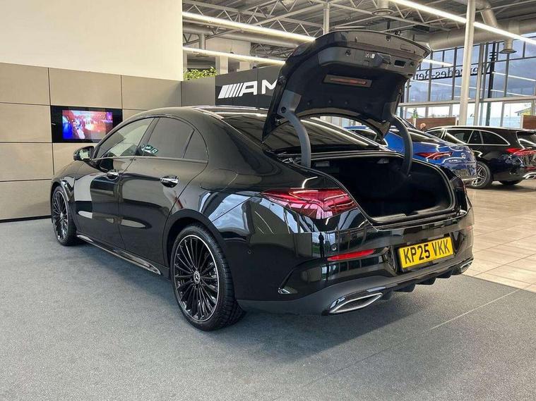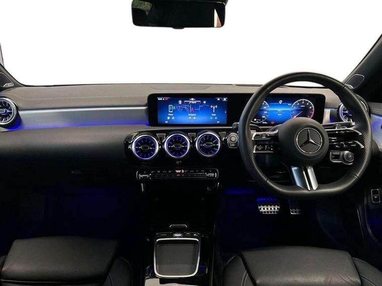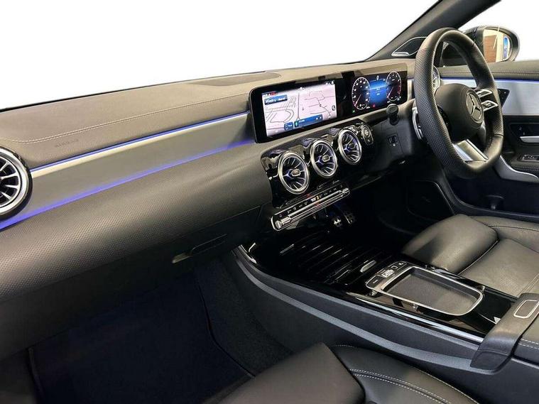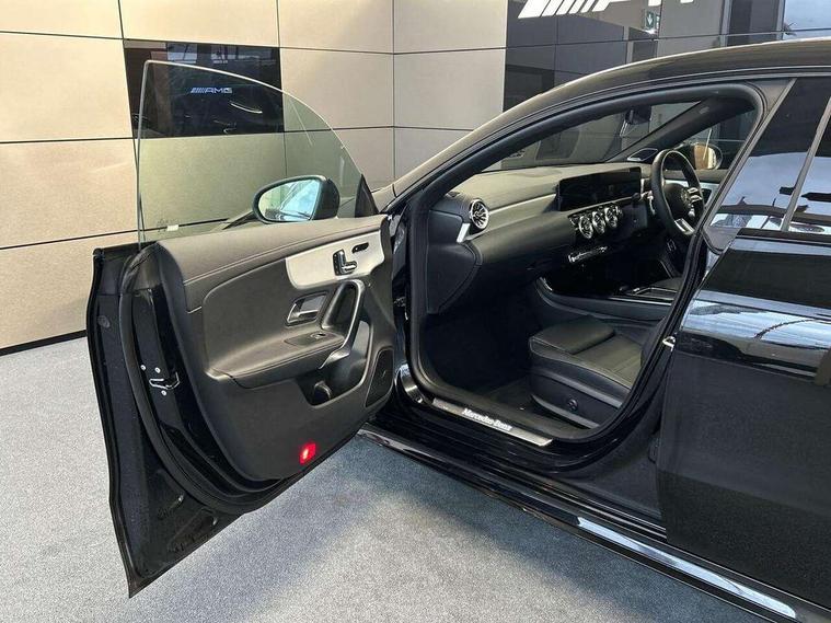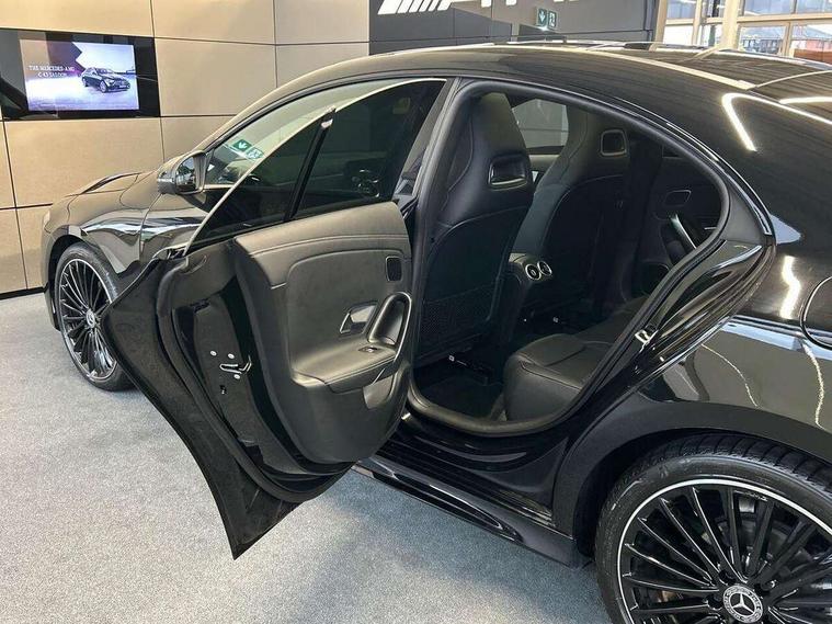 10.25 inch Instrument display with digital cockpit, 10.25 inch touchscreen central media display, Active lane keeping assist, Attention assist - Monitors steering behaviour and long journey fatigue, Bluetooth connection, Car wash mode, Cruise control with limiter, Direct steer system, DYNAMIC SELECT with a choice of driving modes (ECO, Comfort, Sport and Individual), ECO start/stop function, Fingerprint sensor, Fluid level warning indicator for fuel, oil, coolant and washer fluid, Hard-disk navigation, Head up Display, Hey Mercedes Voice activation, Lamp failure indicator, Mercedes me connect including emergency call system, accident recovery, breakdown and maintenance management, Mercedes me remote services, Outside temperature gauge, Owners manual in English, Pre-installation of private car share, Radio aerial integrated into front and rear windshields, Service indicator (ASSYST), Smartphone integration with Apple CarPlay and Android auto, Traffic sign assist, Trip computer in multifunction display with current consumption indicator, Wireless charging in the front centre console, Comfort suspension with ride height lowering, Rear axle multi-link, Burmester lettering on the speakers, Burmester surround sound system (710W) with dolby atmos, speakers - 1 central, 1 woofer, 1 tweeter, 1 subwoofer with 60W, 2 in C pillar, DAB digital radio tuner, MBUX multimedia system, Pre installation for Mercedes Benz Link, Adaptive brake lights, AMG body styling with AMG front apron and rear apron and visible exhaust tailpipe in chrome trim elements, Body colour door handles, Electric panoramic sunroof with automatic tilt and convenience closing fuinctions, rain sensor auto closing and electronic roller sunblind, Electric windows, Electrically adjustable and heated door mirrors with integrated LED indicators, Exhaust system with 2 Visible tailpipe trim elements and rear apron with trim in chrome, Hand free access, Headlamp assist automatic headlamp activation, Heated glass rear windscreen + timer control, High level LED third brake light, Integrated LED daytime running lights, Interior mirror with black reading lamps and frameless, LED tail lamp, Multibeam LED headlamps with adaptive highbeam assist plus, Privacy glass with dark tinting on rear side windows and rear window, Radiator grille with Mercedes-Benz pattern in chrome and central Mercedes star, single louvre in high-gloss black with chrome inserts, Rain sensing windscreen wipers with two sensitivity settings, Rear boot, Rear fog lamp, Rear side wing doors, Variable front intermittent wipers, 3 seat bench in 2nd row, 3 twin spoke flattened multifunction steering wheel in nappa leather - horizontal twin spoke in high gloss black, vertical twin spoke in silver chrome, 40:20:40 split folding rear seat backrests, Air conditioning - Two zone thermotronic luxury automatic climate control with display, Air vents with surround in silver chrome, Automatic child seat recognition sensor, Black roof lining, Brushed stainless steel sports pedals with rubber studs, Electrically adjustable front memory seats including 4 way lumbar support, Floor mats with stitched AMG lettering, Fluorescent jacket, Front centre armrest with stowage, Galvanished gear shift paddles in silver chrome, Interior lighting - 64 colour Ambient lighting, Luggage net on driver/front passenger seat backrest, Manually height and reach adjustable steering column, Rear armrest with two integral cup holders for drinks, Rear head restraints, Single front passenger seat, Sport seats with fixed head restraints, Stowage compartment in centre console with retractable cover, Sunvisors with illuminated vanity mirrors, Twin front cupholders, Two outer rear seat isofix and top tether child seat fixing points, Keyless go comfort pack - CLA, Light and sight pack - CLA, Mirror pack - CLA, Night package - CLA, Parking pack with 360 degree camera - CLA, Seat comfort pack - CLA, USB package plus - CLA, Winter pack - CLA, Active bonnet pedestrain safety measure which detects an impact and raises bonnet by 65mm, Adaptive brake assist with hold function and hill start assist, Anti lock braking system (ABS) with brake assist, Black seat belts, Bonnet with power domes, Brake calipers with Mercedes-Benz lettering, Brake pad wear warning indicator, Childproof locks manually operated for rear doors and electrically operated for rear power windows, Crash responsive emergency lighting, Driver and front passenger head and sidebags, Driver and front passenger windowbags, Drivers knee airbag, Dual stage driver and front passenger airbags, Electric parking brake, Electronic stability programme with acceleration skid control, ESP curve dynamic assist, Exit warning, Front and rear seatbelt reminder, Front passenger seat occupancy sensor, Perforated front brake discs, Sports braking system, Three point rear seat belts, Tyre pressure monitoring system, Warning triangle and first aid kit, Alarm system with immobiliser and interior protection -Thatcham category 1, Guard 360 deg vehicle protection - tow away protection with visual, acoustic warning, interior monitoring, preinstallation for parking damage, Remote central locking and crash sensor with emergency opening function, Light aluminium with longitudinal grain interior trim, 19" AMG multi-spoke black painted light alloy wheels with high sheen rim flange, Summer tyres, Tirefit tyre sealant kit,