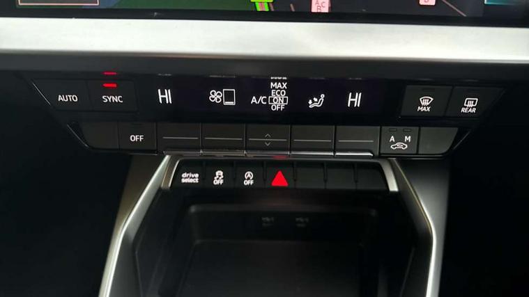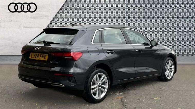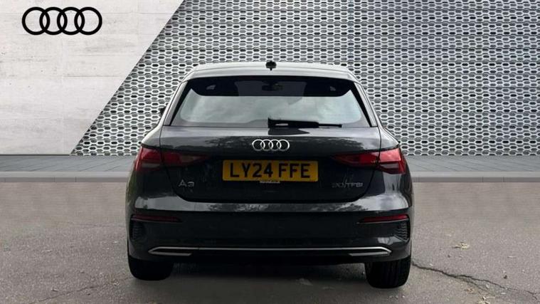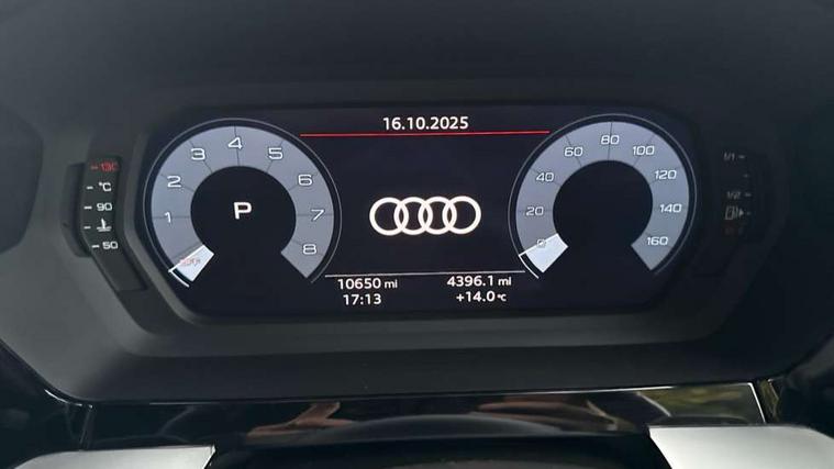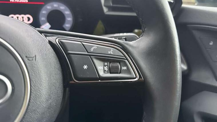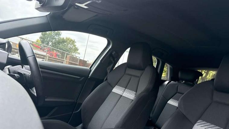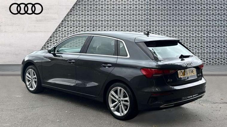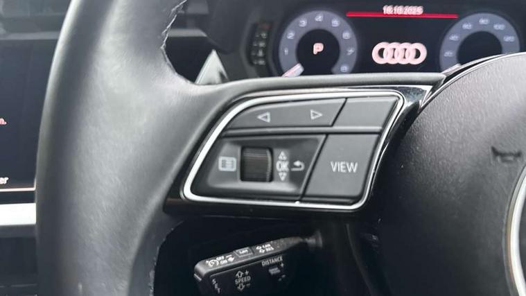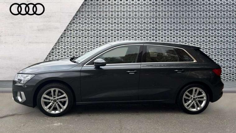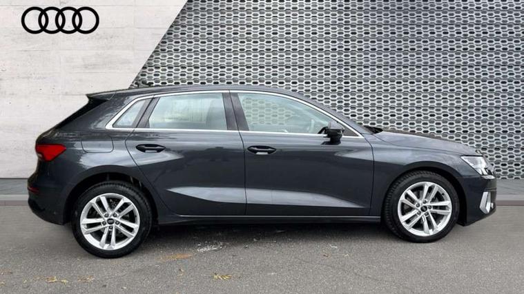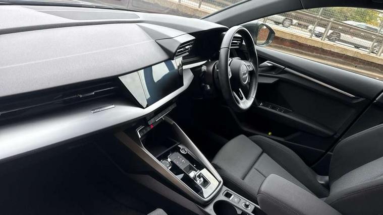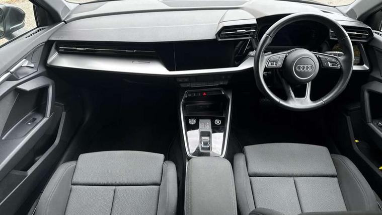 Audi drive select (Auto, Comfort, Dynamic and Individual), Audi smartphone interface, Audi Virtual Cockpit - 10.25" digital and colour instrument cluster, Automatic start/stop system with recuperation, Bluetooth interface, Camera based traffic sign recognition, Collision avoidance assistant, e-Call (emergency call), Electromechanical power speed sensitive steering, Lane departure warning system, MMI Navigation Plus with high resolution 10.1" colour touch screen display, Service indicator, Trip computer, Voice control system with natural language interaction, Standard suspension, 2xUSB-C connection with data and charging functions, 6 passive loudspeakers, DAB Digital radio, 3rd brake light, Acoustic glass windscreen, Aluminium window trim, Auto dimming frameless rear view mirror, Body colour exterior mirrors, Body colour roof spoiler, Electrically adjustable/heated/folding/auto dimming door mirrors with integrated LED indications + kerb view function for passenger side, Front electric windows, LED daytime running lights, LED headlights and halogen rear lights, Light and rain sensors, Rear electric windows, Rear side wing doors, Rear window, rear door windows and rear side windows in clear glass, Rear wiper, 12V socket and storage compartment in front centre console, 3 seat bench in 2nd row, 3 spoke leather multifunction steering wheel with paddle shift, 4 way electrically adjustable lumbar support for driver and front passenger, 60/40 split folding rear seat bench, Dual zone electronic climate control, Front and rear headrests, Front centre armrest, Front door sill trims with aluminium inlay, Front/rear floor mats, Height and reach adjustable steering wheel, Interior lighting - Front and rear roof module including reading lights, glove compartment light and right hand side, Interior lighting - glove compartment light and right hand side, Luggage compartment floor covering, Manual boot compartment lid, Manually adjustable front seats, Routine cloth upholstery with front sports seats, Seat side bolsters, Single front passenger seat, Steel grey cloth headlining, Aluminium interior elements pack - A3 Sportback, LED interior lighting pack - A3 Sportback, Sport styling pack - A3 Sportback, 3x3 point rear seat belts, Driver and front passenger airbag with passenger airbag deactivation, Electronic Stabilisation Control (ESC) including ABS, ASR and EDL, First aid kit with warning triangle and 2 safety vests, Front side airbags with head airbags and interaction airbag, Pre-sense front with pedestrian and cyclist detection, Seatbelt monitoring, Tyre pressure loss indicator, Anti theft alarm, Anti-theft wheel bolts, Electronically operated child locks, Immobiliser, Remote control central locking, Inlays with silk effect paint in platinum grey,