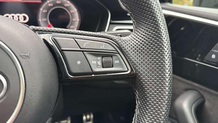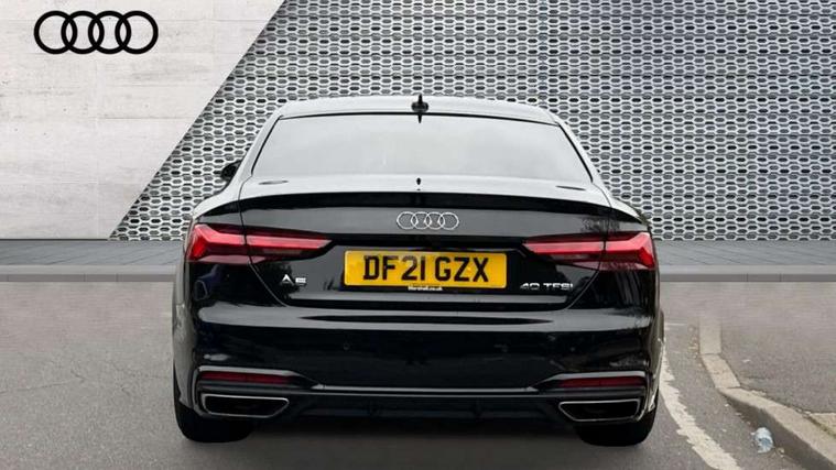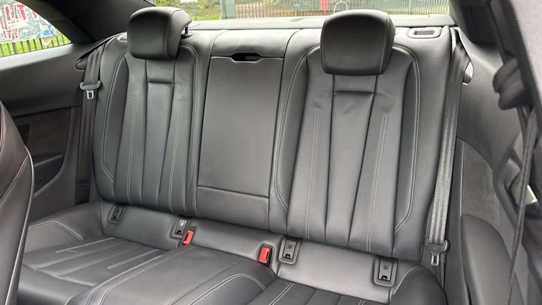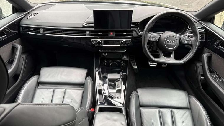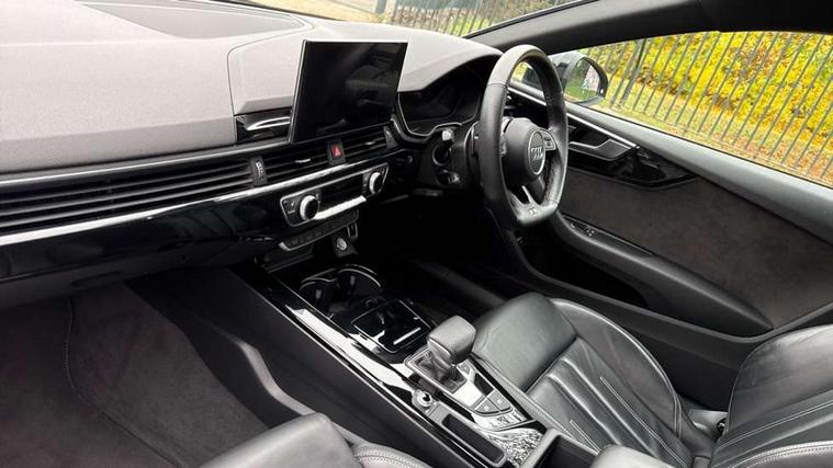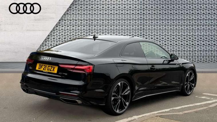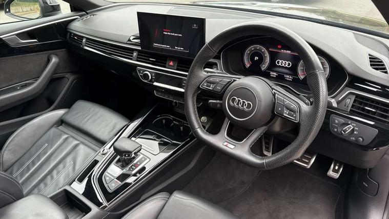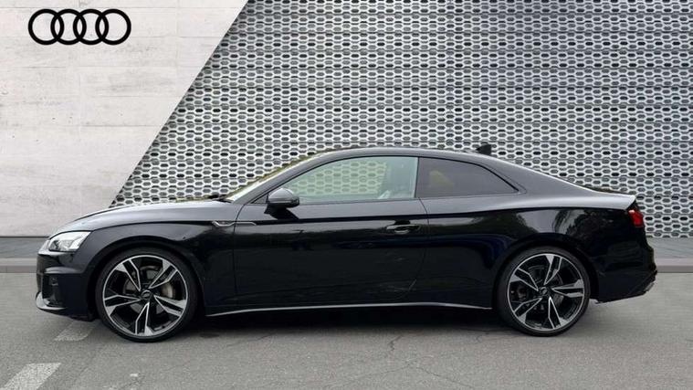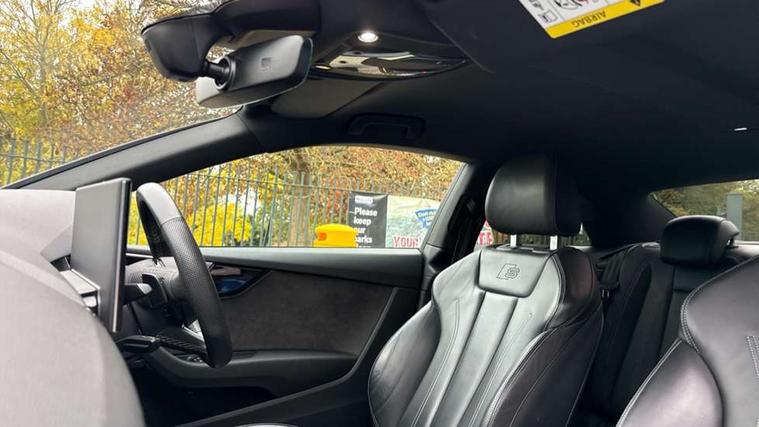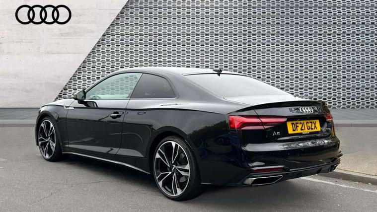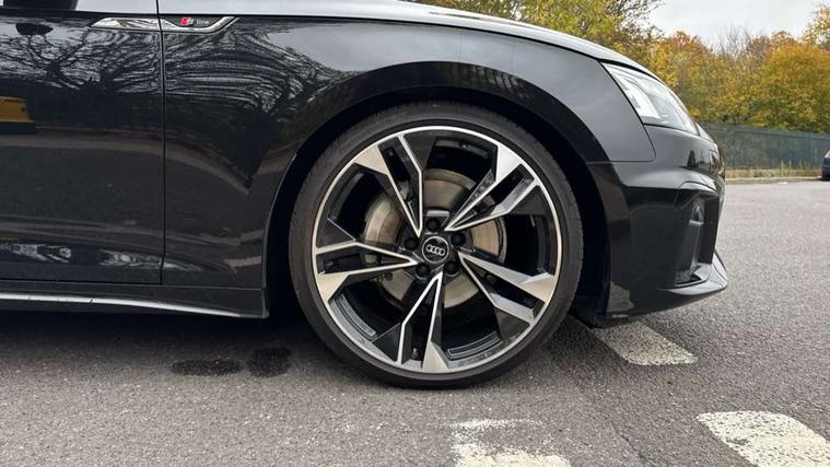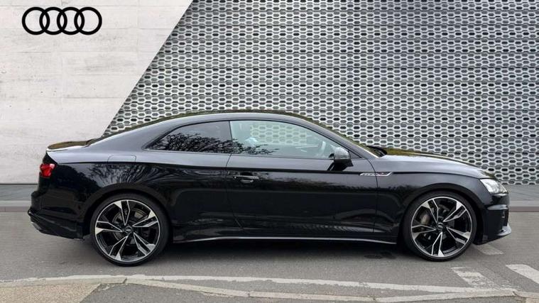 Audi connect safety and service (e-call), Audi drive select (Auto, Comfort, Dynamic, Efficiency and Individual), Audi parking system plus with front and rear sensors, Audi phone box with wireless charging, Audi smartphone interface, Audi virtual cockpit - 12.3" full colour digital instrument cluster, vehicle/engine speed, Radio/media information+Driver assistance systems, Automatic start-stop system with coasting functionality and efficiency programme, Bluetooth interface, Electric boot lid release, Electro-mechanical power steering, Email, calendar and text messages displayed via MMI, MMI nav+ with MMI touch - 10.1" high resolution MMI display, touch sensitive, 3D map, route/country info, dynamic route guide, personal route assist, Rear view camera, Service interval indicator, Voice control system, Sports suspension lowered by 23mm, 8 passive loudspeakers, CD player, DAB digital radio reception, Two additional USB ports for rear passenger in rear centre console, Two SDXC card slots, Auto dimming rear view mirror, Black door mirror housings, Body colour bumpers, Body colour door handles, Body colour front spoiler lip, Body colour side sill trim, Electric adjustable heated door mirrors, Electric folding door mirrors, Electric front windows, Front fog lights, Honeycomb structure radiator grille in grained matt black, Matrix LED headlights with Audi laser light, dynamic light sequencing and dynamic indicator, Matt aluminium silver tailpipe trim, Privacy glass, Rain and light sensors, Rear diffuser in matt titanium black with trim strip in matt aluminium silver, Side air inlets in grained matt black with matt aluminium silver inlay, Sport front and rear bumpers with side skirts, Towbar preparation, Windscreen with acoustic glazing, 4 way electric lumbar support for driver and front passenger, 40/20/40 split folding 2 seater rear seat bench with rear centre armrest, Adjustable steering column, Black cloth headlining, Black perforated leather gearknob, Contrast stitching on seats, steering wheel and gear lever gaiter, Deluxe 3 zone electronic climate control, Electrically adjustable front seats, Fine Nappa leather upholstery with front sports seats S embossed logo, Front centre armrest, Front head restraints, Front/rear floor mats, Heated front seats, Illuminated door sill trim with S logo, ISOFIX child seat mounting and top tether, Luggage compartment mat, Rear headrests, Stainless steel pedals, Sunvisors with vanity mirrors, Tool kit, Black styling pack - A5 Coupe/Sportback, LED interior light pack - A5/RS5, 2 x 3-point rear seat belts, 6 airbags - Driver, front passenger, curtain and side airbags, Electromechanical parking brake, Electronic Stabilisation Control (ESC) including ABS, ASR and EDL, Front passenger airbag deactivation, Height adjustable front seatbelts, Hill hold assist, Multi collision brake assist, Pop-up bonnet for pedestrian protection, Seatbelt monitoring, Tyre pressure warning, Variable restraint system, Warning triangle and first aid kit, Anti theft alarm system, Anti theft wheel bolts, Immobiliser, Keyless Go, Remote central locking, Piano black finish inlay, 20" 5 twin spoke polygon design alloy wheels in gloss anthracite black and gloss turned finish, Tyre repair kit,