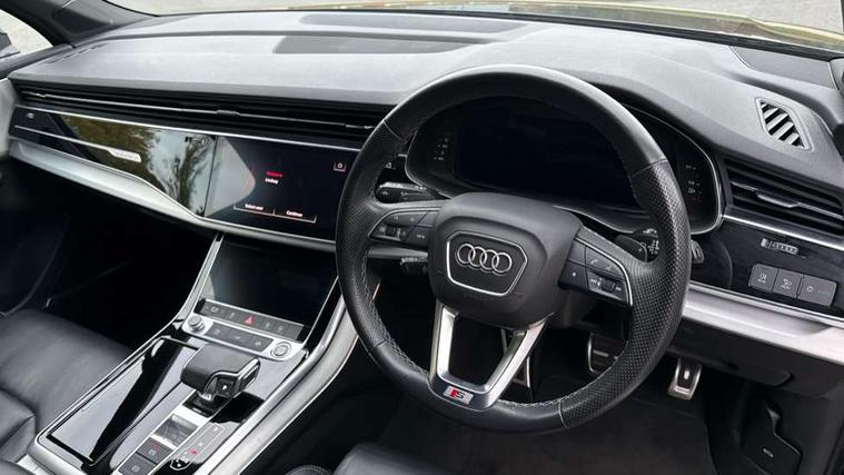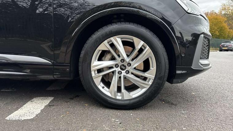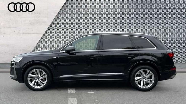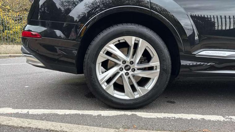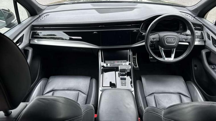 Audi connect safety and service (e-call), Audi connect with Amazon Alexa Integration, Audi drive select (Auto, Comfort, Dynamic, Efficiency, Individual, Off-road and All road), Bluetooth interface, Camera based traffic sign recognition, Electromechanical steering, MMI navigation plus with MMI touch screens includes 10.1" and 8.6" screens with haptic feedback, Natural voice recognition, Parking system plus with 360 degree display (front, rear and side sensors) - acoustic and visual park assist system, Power operated tailgate, Rear view camera, Smartphone interface includes wireless Apple carplay/Android Auto, Start/stop system, 48V Mild hybrid technology, Adaptive air suspension, Quattro all wheel drive with self locking centre differential, Audi music interface - front 2 USB-C ports with charger and data functions, Audi sound system with 6 channel amplifier, 180 watt amplifying capacity and 10 loudspeakers including subwoofer, DAB digital radio module, 3rd brake light, Aluminium roof rails, Aluminium window trim, Auto dimming frameless rear view mirror, Body coloured door mirrors, Electrically adj heated/folding + automatically dimming exterior mirrors with memory + automatic kerb side function for passenger side exterior mirror, Heat insulating glass in windshield, Integrated LED indications in door mirrors, LED daytime running lights, LED headlights and high beam assist, LED rear tail lights, Privacy glass - dark tinted rear and rear side windows from B-pillar backwards, Rear side wing doors, Rear wiper, S Line badge on wings, S line bumpers in full body colour paint finish, S line roof spoiler, S line styling side ventilation grilles and side skirts, 2 seat bench in 3rd row, 2 zone automatic climate control, 3 seat bench in 2nd row, 7 seat layout with ISOFIX points for the front passenger seat and rear passenger seat, Black cloth headlining, Comfort front centre armrest, Electric adjustable front seat with 4 way lumbar support, driver memory functionality, Folding rear seats, Front head restraints, Front/rear floor mats, Heated front seats, Illuminated door sill trims with S logo, LED interior ambient lighting, Luggage compartment cover, Luggage compartment sill protection in stainless steel, Rear head restraints, Single front passenger seat, Stainless steel pedals, Sunvisors with illuminated vanity mirrors, 3 point seatbelts on all rear seats, Audi pre sense front, Child locks on rear doors, Driver and front passenger, front side and curtain airbags, Electromechanical parking brake, Electronic Stabilisation Control (ESC) including ABS, ASR and EDL, Extended pedestrian protection measures, Hill hold assist, Seatbelt monitoring, Tyre pressure loss indicator, Warning triangle and first aid kit, Anti theft alarm, Anti-theft wheel bolts and wheel loosening detection, Keyless Go, Remote central locking, Darkened matt brushed aluminium inlays, Tool kit, Tyre repair kit,