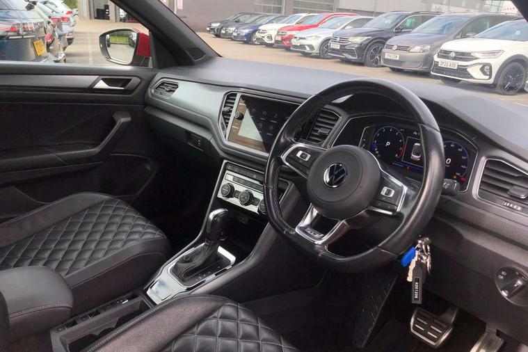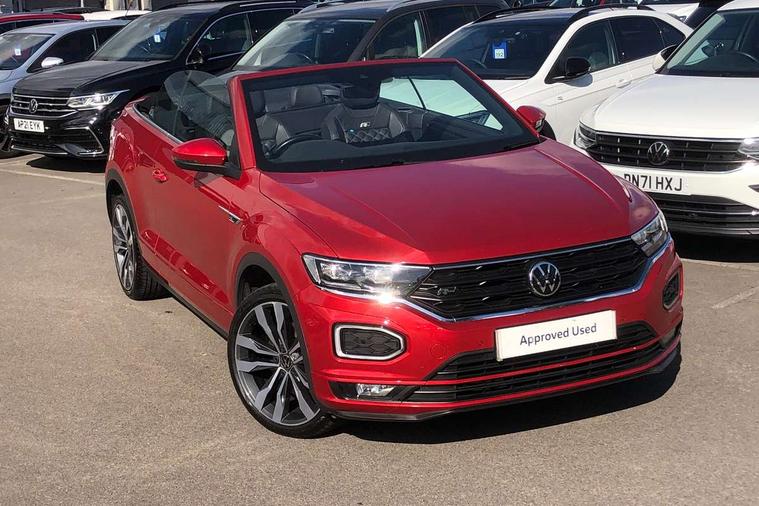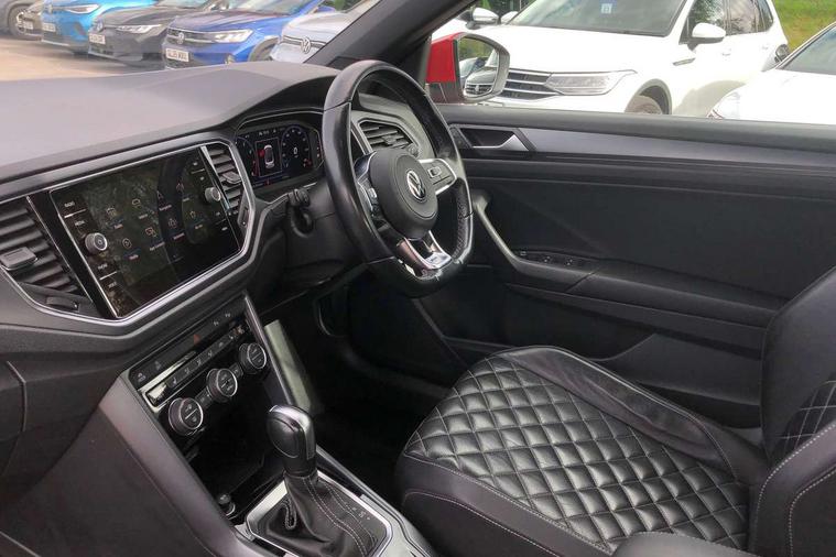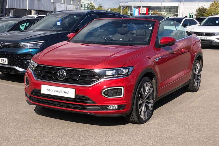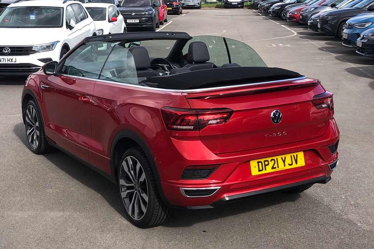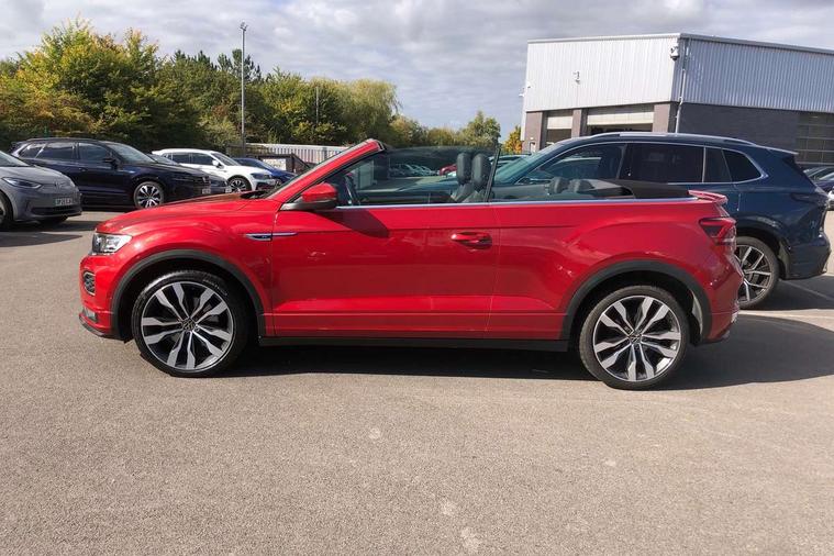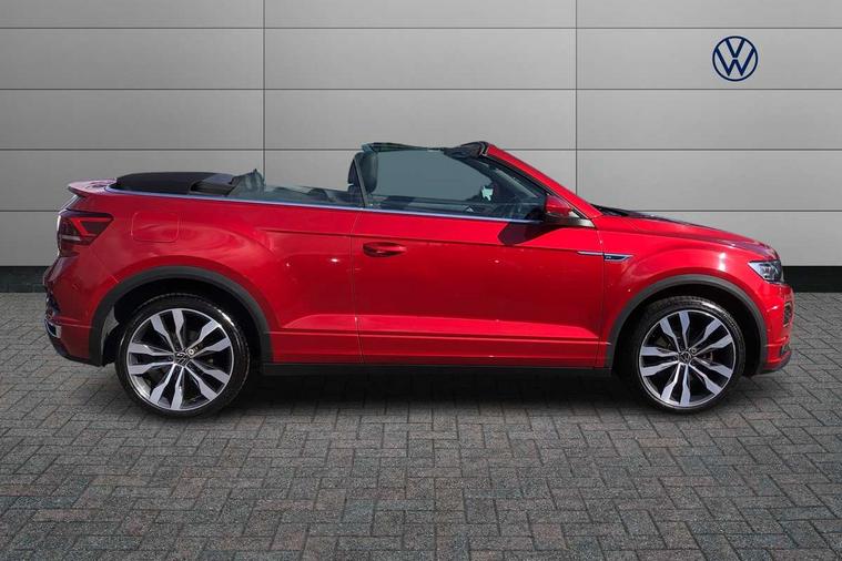 8" colour touch screen, Active Info display 10.25" high resolution TFT dash display with customisable menu and information, Adaptive cruise control, Bluetooth telephone and audio connection for compatible devices, Brake pad wear indicator, Car information display, Car-Net Security and Service, Driver alert system with fatigue detection, Driver tips and journey analysis, Dynamic road sign display, Emergency call service, Lane assist with warning text instrument cluster, Mobile phone interface, Modified key software - reduce switch off time for key status change to Long no motion, Multifunction computer with visual gear change recommendation for fuel consumption, Navigation system discover media including streaming and internet, Online services, Progressive power assisted steering, Speedo and rev counter, electronic odometer, trip, service interval display, digital clock and fuel gauge, Start/stop system with brake energy recovery, Tailgate/trunk lid release from outside, Warning sound and light for front seatbelts unfastened, Wired and wireless app connect, Bluetooth - Simultaneous pairing of 2 compatible mobile devices, DAB Digital radio, Diversity antenna for FM reception, Music playback - MP3, WMA and AAC files, SMS functionality - read, compose and send SMS messages using touch-screen display, Title and cover art display, USB-C Interface and USB charging socket, WeConnect plus, Auto dimming interior rear view mirror, Automatic coming/leaving home lighting function and daytime running lights, Automatic hazard lights activation under emergency braking, Body colour rear roof spoiler, Body coloured exterior mirror housings and door handles, Chrome effect left and right trapezoid exhaust tailpipe fascia surround, Chrome trim on upper and lower radiator grille, Darkened LED tail lamp, Dusk sensor, Dynamic headlight range control with self adjusting whilst driving, Electrically power adjustable, heated, folding, auto dimming, front passenger exterior door mirror lowering function, Front and rear electric windows, Front fog lights with static cornering function, Heat insulating glass windscreen, High level 3rd brake light, LED darkened rear light clusters, LED headlamps with automatic range adjustment and unique signature LED separate daytime running lights, LED rear number plate lights, LED tail lamp rear comination lamps, Power operated canvas convertible top, R-Line design body coloured bumpers, Rain sensor, Rear exhaust tailpipe, Rear fog lamp, Volkswagen roundel, Windscreen wiper with intermittent wipe light, 12V socket in centre console storage area, 2 front reading lights, 3 spoke leather wrapped multifunction sport steering wheel, 50/50 rear seat bench split folding rear seat backrests, Activated charcoal canister for intensified evaporation system, Chrome plated surround to light, mirror and window switch, Climate control - 2 zone electronic air conditioning with automatic air recirculation and allergy filter, Door and side trim panel in foam film, insert in leatherette, Entry aid easy entry (Front folding seats), Front + rear carpet mats, Front centre armrest, Front cupholders x 2, Front seat back storage pockets, Front sports comfort seats with manual height adjustment, Glove Compartment with light, Height/reach adjust steering wheel, Illuminated vanity mirrors in sun visors with air bag label on sun visor and b-pillar, Instrument lighting, white adjustable panel illumination, Interior light delay, Interior light in footwell, Isofix easy fit child seat preparation for 2 outer rear seats, Luggage compartment lighting, Power adjustable lumbar support in front, Rear head restraints, Scuff plates in door apertures, Stainless steel pedals, Storage compartments in driver and front passenger doors, Unique R Line door sill protectors, White ambient lighting, 2 x 3-point rear seatbelts, ABS, Autonomous emergency braking, Driver and front passenger safety-optimised head restraints, Drivers and front passengers airbags with passengers deactivation switch, Drivers seatbelt reminder, Electronic parking brake with auto hold, Electronic stability control (ESC) includes ASR, EDL, EDTC and trailer stabilisation function, Front assist with city emergency braking and pedestrian monitoring, Pedestrian monitoring, Predictive pedestrian protection, Rigid safety cell with front and rear crumple zones, Side airbag/thorax airbag system, for front passengers, Single tone horn, Three point height adjust front seatbelts + pretensioners, Tyre pressure loss indicator, Tyre pressure monitor, Ventilated front and rear disc brakes, Volkswagen roadside assistance, Alarm with interior protection and deactivation via infotainment system, Electronic engine immobiliser, Shadow steel matt decorative inserts in dash and door panel,