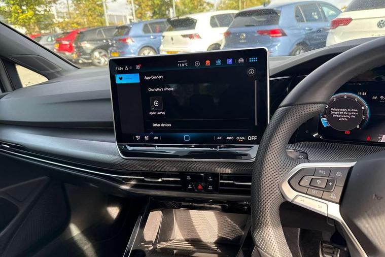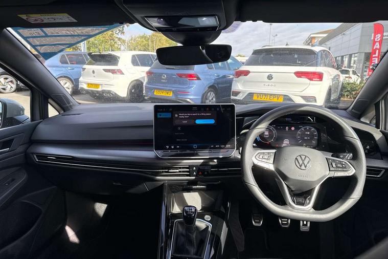 Activated carbon canister, Adaptive cruise control (ACC), Advanced driver attention and drowsiness monitor, Dynamic road sign display, Dynamic steering, E-Sim card for online connectivity, eCall emergency call system, Multi-color Digital cockpit pro, selection of different info profile possible, Multifunction front facing camera for distance control, Navigation system, Oncoming vehicle braking when turning including swerve support, Preparation for light assist system, Speed limiter, Speedo, rev counter, electronic odometer, trip, service interval display, exterior temperature and fuel gauge, Traffic jam assist, Voice enhancer and voice control, Warning signal and warning light for front and rear seatbelts not fastened, We connect plus preparation, We connect preparation, Wireless app connect, Petrol Particulate Filter, Start-stop system with battery regeneration (recuperation - energy recovery during braking), XDS electronic differential lock for improved traction and handling, 2 USB C ports in front, 2 USB charging sockets on the centre console in the rear charging capacity upto 45W, Comfort telephony + wireless charging, without wireless aerial connection, Digital radio reception (DAB), Diversity antenna for FM reception, Gaming platform via car app, Infotainment system with 12.9" display, Mobile phone interface with inductive charging feature, 3rd brake light, Auto headlights, Automatic headlamp activation with Coming home and Leaving home feature, Body colored bumpers in R-Line style, Body colour door handles, Exterior ambient lighting with illuminated door handles, Exterior mirrors convex on the left and aspherical on the right, Front and rear electric windows, Heat insulating windshield made of laminated glass, LED daytime running lights, Rear exhaust tailpipe, Rear fog light on one side and reversing lights on both sides, Rear side wing doors, Rear windscreen washer and wiper with interval delay, Remote electrically foldable door mirrors, puddle lights and reverse activated passenger's door mirror, Welcome light with surround lighting, 12V socket in front centre console, 12V socket in luggage compartment, 3 rear head restraints, 3 seat bench in 2nd row, Ambient lighting with 30 colour including LED light unit in front footwell with selectable light colour, Brushed stainless steel pedals, Carpet mats, front and rear, Chrome plated radiator grille inserts, air vent surrounds and light switch surrounds, Front centre armrest, Integrated front head restraints, ISOFIX anchors for child seats on outer rear bench seats and on front passanger seat compatible for i-Size, Leather gearshift handle, Luggage compartment lighting, Premium sports seats in front, Rear cupholder and loadthough, Single front passenger seat, Soul black instrument panel, Split folding backrest with centre armrest and unsplit rear seat bench, Storm grey roof lining, Sun visors with illuminated vanity mirrors, 3 point height adj front seatbelts + pretensioners, 3 rear three point seatbelts, ABS, Autonomous emergency braking front assist with pedestrian and cyclist monitoring, Child locks on rear doors, Driver and front passenger airbag with front passenger airbag deactivation, Electronic parking brake with auto hold, ESC (Electronic Stability Control), Extended pedestrian protection measures, Rear disc brakes, Two tone horn, Tyre pressure loss indicator, Volkswagen roadside assistance, Anti theft wheel bolts, Preparation for alcohol interlock, Decorative inserts carbon grey for dashboard and front door trim panels,