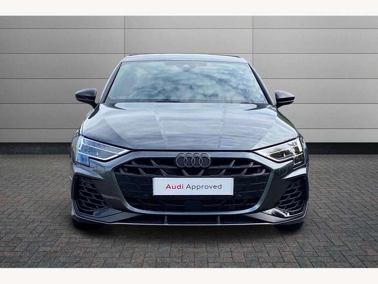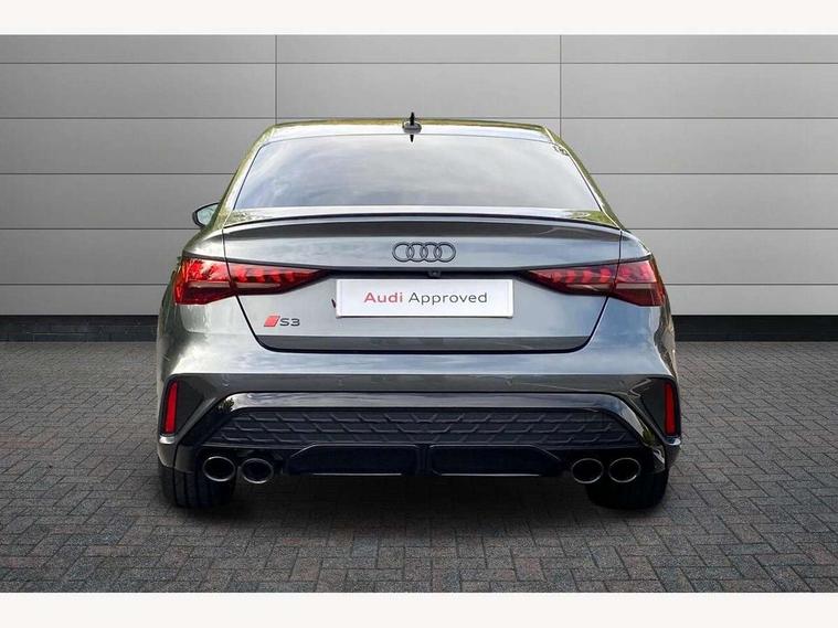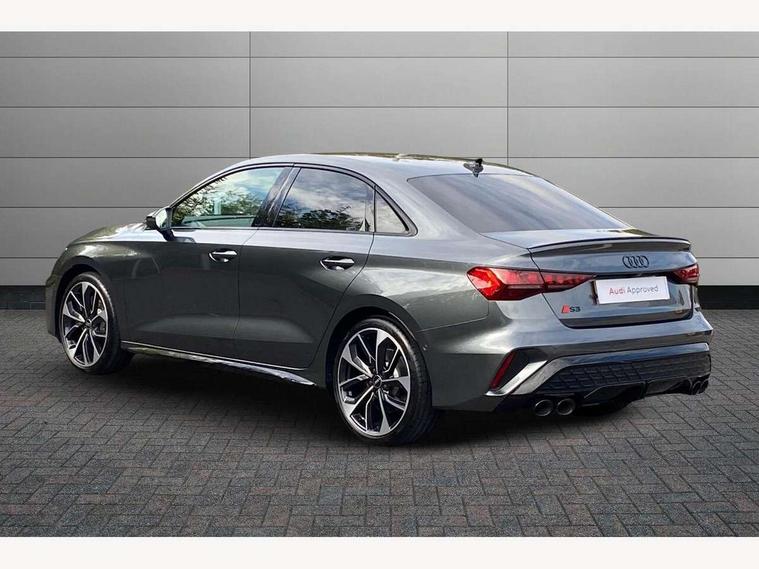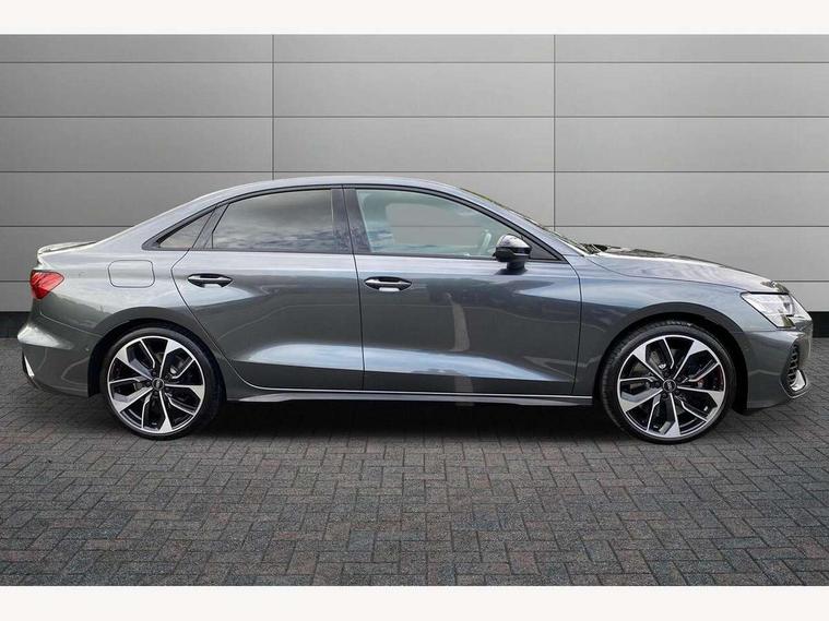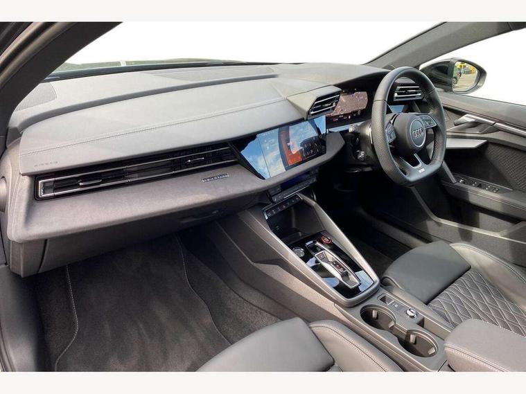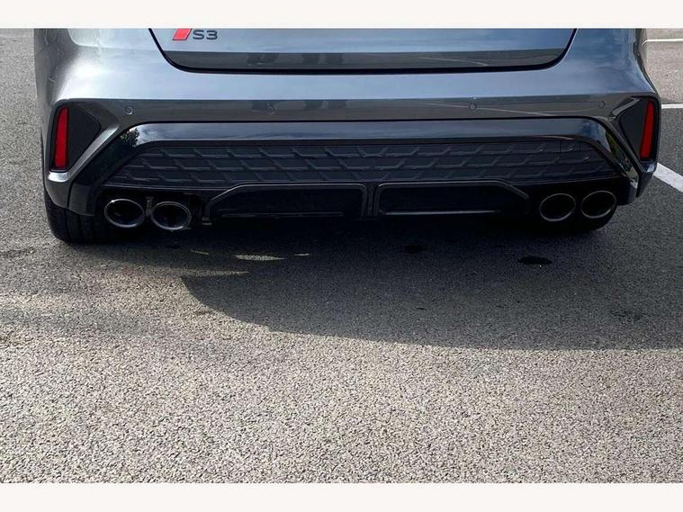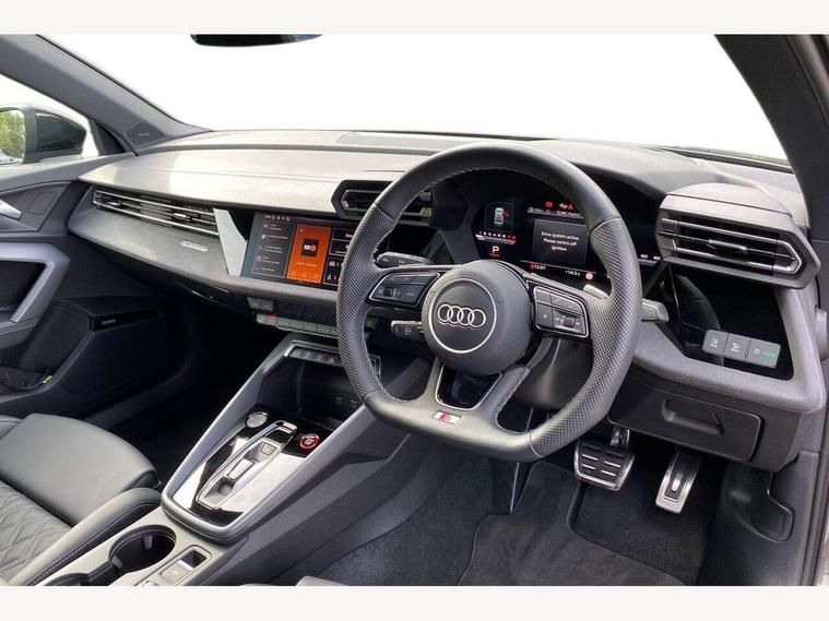 Adjustable speed limiter, Audi drive select, Audi smartphone interface with app store includes wireless Apple carplay, Android auto and Amazon alexa integration, Audi virtual cockpit plus - 12.3" full HD resolution dynamic digital instrument cluster, Automatic start/stop system with recuperation, Bluetooth interface, Camera based traffic sign recognition, Collision avoidance assistant, Distraction and Fatigue warning, e-Call (emergency call), Electromechanical power speed sensitive steering, Lane departure warning system, MMI Navigation Plus with high resolution 10.1" colour touch screen display, Park Assist with parking system Plus, Progressive steering, Service indicator, Trip computer, Voice control system with natural language interaction, S sport suspension with spring damper adjustment and lowering by 15mm, Audi Phonebox light with wireless charging, DAB Digital radio, USB ports with charging function in the rear, Anthracite grey Audi rings (front and rear), Audi Beam uses LEDs to project the rhombus S logo onto the ground as you exit your S3, Auto dimming frameless rear view mirror, Black accents front and rear bumpers including air inlets, Black accents in front grille and frame, Black accents window trims strips, Electrically adjustable/heated/folding/auto dimming door mirrors with integrated LED indications + kerb view function for passenger side, Exterior model badging, Front electric windows, Headlight washers, Heat insulating glass windscreen, Illuminated door sills with aluminium inserts at the front with S logo, LED 3rd brake light, LED daytime running lights, LED headlights with LED rear lights and dynamic rear indicators, Light and rain sensors, Privacy glass - dark tinted rear window, rear door and side windows, Rear boot, Rear electric windows, Rear side wing doors, S grille, S3 front bumper with S specific air intake grilles, 12V socket and storage compartment in front centre console, 3 seat bench in 2nd row, 3 spoke flat bottomed leather multifunction sport steering wheel with gear shift paddles, 3-zone deluxe automatic air conditioning, 4 way electrically adjustable lumbar support for driver and front passenger, 40/20/40 split folding rear seat bench, Black cloth headlining, Fine Nappa leather upholstery with front sports seats S embossed logo, Front and rear centre armrest in artificial leather, Front and rear headrests, Front/rear floor mats, Heated front seats, Manual boot compartment lid, Manually adjustable front seats, Rear cup holders, S badging on the steering wheel, Seat side bolsters, Single front passenger seat, Stainless steel pedals and front footrest in black, Aluminium interior elements pack - A3, Extended ambient lighting package Pro - S3 Black edition, Storage package - A3 Saloon, Technology package - A3, 3x3 point rear seat belts, Driver and front passenger airbag with passenger airbag deactivation, Electronic Stabilisation Control (ESC) including ABS, ASR and EDL, First aid kit with warning triangle and 2 safety vests, Front side airbags with head airbags and interaction airbag, Hill hold assist, Pre-sense front with pedestrian and cyclist detection, Seatbelt monitoring, Tyre pressure loss indicator, Anti theft alarm, Anti-theft wheel bolts, Electronically operated child locks, Immobiliser, Remote central locking with safelock, Inlays in black dynamica microfibre,