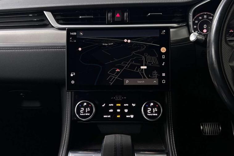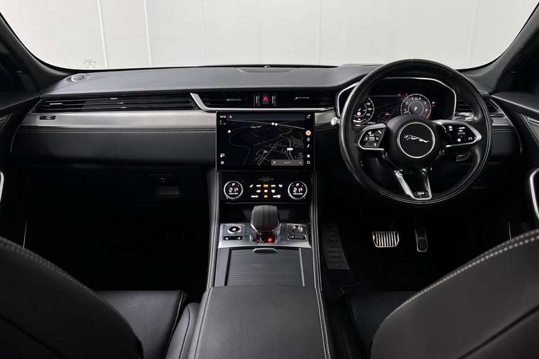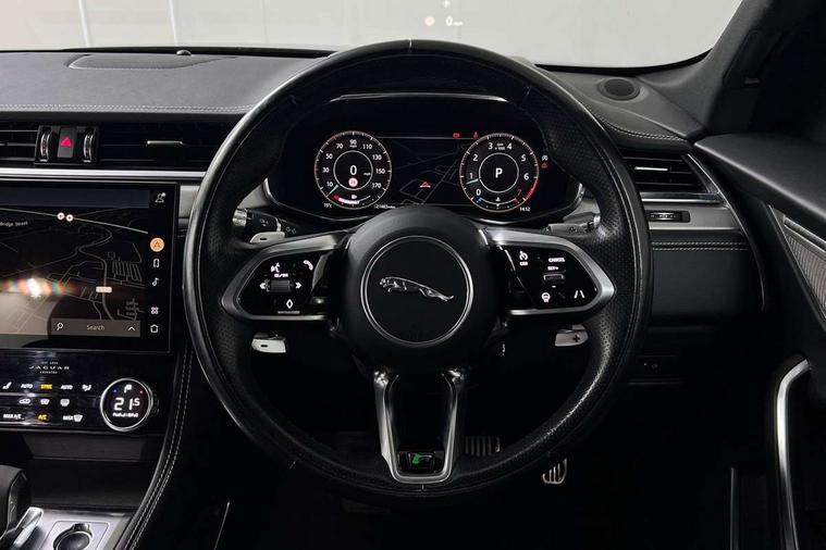 11.4" touchscreen, Android Auto, Apple car play, Blind spot assist, Bluetooth connectivity, Clear exit monitor, Driver alert system, Driver condition monitor, Eco driving style assistant, Electric power assisted steering, InControl remote, Interactive Driver display instrument cluster, Jaguar Toggle shift selector, Lane departure warning system, Lane keep assist, Outside temperature gauge, Personalisation profile management, Pivi pro connected navigation system with app interface and media storage, Pro services and wifi hotspot, Push button starter, Rear traffic monitor, Service interval indicator, Speed proportional steering, Start up sequence with movement in dials and lighting, Traffic sign recognition with adaptive speed limiter, Trip computer, Voice control system, 8 speed automatic transmission, All terrain progress control, All Wheel Drive (AWD), Open differential with torque vectoring by braking, AM/FM radio, Bluetooth streaming, DAB Radio (Digital Audio Broadcasting), Dynamic volume control, InControl apps, InControl protect, iPod integration, 3 flash lane change indicators, Animated directional indicators, Approach Illumination, Auto dimming rear view mirror, Automatic headlights, Body colour door mirrors, Electric heated/power fold memory door mirrors with approach lights and auto dimming driver side, Electric windows with one touch open/close and anti trap, F-Pace badge, Green tinted glass, Heated front windscreen + heated washer jets, Heated rear window with timer, Illuminated metal tread plates with Jaguar script, Jaguar script and leaper, LED tail lights, Non acoustic front windscreen, R Dynamic badge on side door, Rain sensor windscreen wipers, Rear fog lights, Rear metal tread plates, Rear wiper, Trailer stability assist, Variable front intermittent wipers, 12V power point front, 3 rear headrests, Air distribution speed, Bright metal foot pedals, Centre armrest console, Centre console with side storage, Door sill tread plates, Electrically adjustable steering column, Fold flat front seats, Front centre armrest with storage compartment, Front door storage space, Glovebox finisher with jaguar script, Heated steering wheel, Hooks in loadspace, Illuminated glovebox, Interior front door handles with separate locking switches, ISOFIX on outer rear seats, Jaguar sense, Luggage tie downs in loadspace, Mist sensing, Multifunction steering wheel, Overhead lighting console, Overhead stowage for sunglasses, Passive front head restraints, Premium cabin lighting, Premium carpet mats, R-Dynamic branded leather steering wheel, Rear air vents, Rear armrest with twin cupholders, Rear centre headrest, Rear door storage space, Reversible boot floor, Satin chrome gearshift paddles, Shopping bag hook, Sunvisors with illuminated vanity mirrors, Twin front cupholders with cover, Online Pack with data plan - F-Pace, 355mm front brakes and 325mm rear brakes, 3x3 point rear seatbelts, ABS, All surface progress control (ASPC), Brake pad warning light, DSC - Dynamic Stability Control, Electric parking brake (EPB), Emergency brake assist, Front airbags with passenger seat occupant detector, Front and rear seatbelt reminder, Front side airbags, Full length side window curtain airbag, Hill launch assist, Power operated child locks, Torque vectoring brake, Traction control, Tyre pressure monitoring system, Immobiliser, Keyless entry, Keyless Start, Locking wheel nuts, Perimeter alarm, Remote central locking, Valet mode,