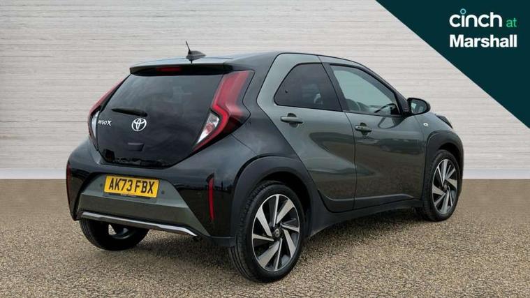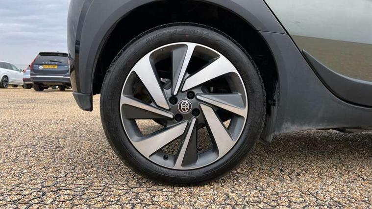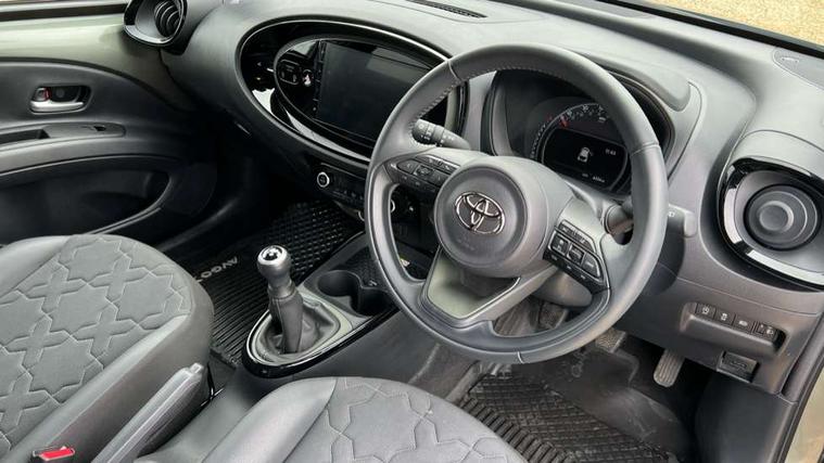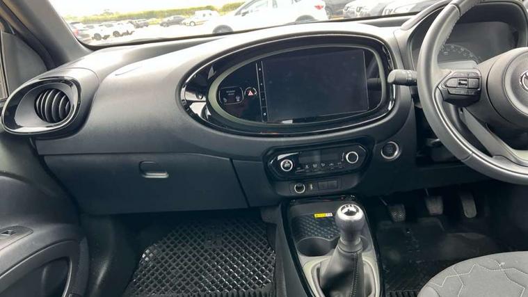 4.2" TFT colour screen, Adjustable speed limiter, Analogue speedometer, Bluetooth connectivity, Digital tachograph, Driver attention alert system, eCall emergency call system, Electric power steering, Front and rear parking sensors with auto brake, Intersection turn assist, Key reminder warning, Noise reduction kit, Pre collision system with emergency steering assist, Remote boot door release on key, Reversing camera with static guide lines, Smart entry and push button start, Speed limit display, Start and stop, Wireless charger, Wireless Smartphone Integration includes Apple CarPlay and Android auto, Vehicle Stability Control (VSC), 4 speakers, 9" HD multimedia display touch screen with Toyota smart connect, DAB digital audio broadcast, USB connector, Auto headlights, Auto wipers, Automatic headlights cut-off, Automatic high beam On/Off switch, Bicycle towing hook, Black fog light surrounds, Black side protection mouldings, Black wheel arch mouldings, Body colour door handles, Body coloured front bumper, Boot door scuff plate, Eclipse black rear bumper, Electric heated door mirrors, Follow me home headlights, Front and rear underruns in silver, Front fog lights, Front power windows, Gloss black door mirrors, Gloss black upper front grille, Headlight cut-off reminder, LED daytime running lights guide, LED front light guide, LED High mounted stop lamp, LED projector headlights, Manual day/night rear view mirror, Manual headlight levelling, Pagoda roof, Power adjustable door mirrors, Power back door, Privacy glass, Rain sensor, Rear combination lights LED bulb type, Rear side wing doors, Rear windscreen defogger, Rear windscreen wiper, Remote hazard lights system, Short antenna, Variable intermittent windscreen wipers, 12v power outlet - front, 2 seat bench in 2nd row, 3 spoke leather steering wheel, 50/50 split folding rear seat, Adhesive roof headlining, Adjustable speed limiter switch on steering wheel, Audio and telephone switches on steering wheel, Auto air conditioning, Black roof lining, Body colour satin anodised insert on steering wheel, Boot light, Centre room light, Chrome interior door handles, Chrome surround on air conditioning buttons, Clean air filter, Console box storage, Floor mats, Front and rear cup holders, Front head rest deco art, Front head restraints, Height adjustable driver seat, Intelligent adaptive cruise control switch on steering wheel, ISOFIX child restraint system on rear seats, Lane departure alert switch on steering wheel, Leather gearshift knob, Light blue ambient lighting in centre console, Manual tilt steering wheel, Manually reclining and sliding driver seat, Manually reclining and sliding front passenger seat, Multimedia switches on steering wheel, Partial synthetic leather upholstery, Pollen filter, Rear door pockets, Rear head restraints, Satin silver insert on gear shift knob, Single compartment glovebox with lights, Single front passenger seat, Soft tonneau cover, Sun visors with mirror on driver and passenger side, Voice recognition switch on steering wheel, Toyota safety sense pack - Aygo X, Anti lock braking system + Electronic brake force distribution, Child safety door lock, Emergency brake light signal (EBS), Hill start assist control (HAC), Passenger airbag on/off switch, Seat belt reminder for front and rear seats, Supplement restraints system (SRS) - 6 airbags, Traction control, Tyre pressure warning system, Immobiliser, Remote power door locks, Black wheel centre caps, Tyre repair kit,