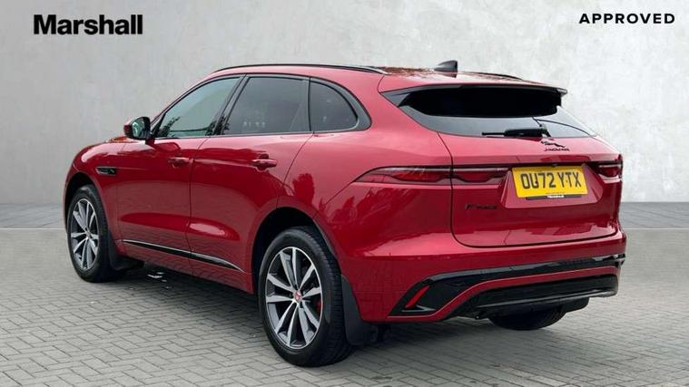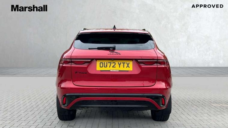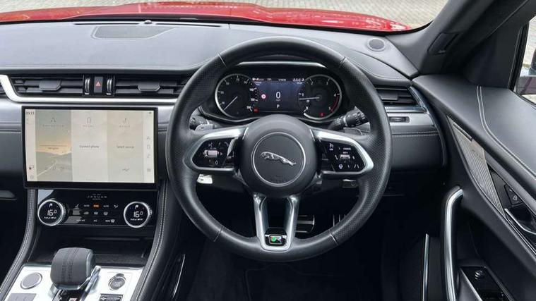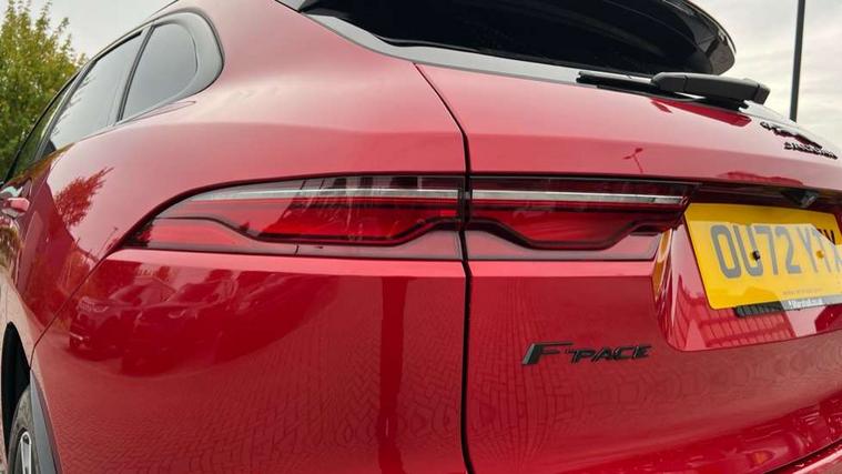 11.4" touchscreen, Android Auto, Apple car play, Blind spot assist, Bluetooth connectivity, Clear exit monitor, Driver alert system, Driver condition monitor, eCall emergency call system, Eco driving style assistant, Electric power assisted steering, InControl remote, Jaguar Toggle shift selector, Lane departure warning system, Lane keep assist, Outside temperature gauge, Personalisation profile management, Pivi pro connected navigation system with app interface and media storage, Pro services and wifi hotspot, Push button starter, Rear traffic monitor, Service interval indicator, Speed proportional steering, Start up sequence with movement in dials and lighting, Traffic sign recognition with adaptive speed limiter, Trip computer, Voice control system, 8 speed automatic transmission, All terrain progress control, All Wheel Drive (AWD), Open differential with torque vectoring by braking, AM/FM radio, Bluetooth streaming, DAB Radio (Digital Audio Broadcasting), Dynamic volume control, InControl apps, InControl protect, iPod integration, 3 flash lane change indicators, Animated directional indicators, Approach Illumination, Auto dimming rear view mirror, Automatic headlights, Body colour door mirrors, Electric heated/power fold memory door mirrors with approach lights and auto dimming driver side, Electric windows with one touch open/close and anti trap, F-Pace and R Dynamic badge, Green tinted glass, Heated front windscreen + heated washer jets, Heated rear window with timer, Jaguar script and leaper, LED High level third brake light, LED tail lights, Non acoustic front windscreen, R Dynamic badge on side door, Rain sensor windscreen wipers, Rear fog lights, Rear metal tread plates, Rear side wing doors, Rear wiper, Trailer stability assist, Variable front intermittent wipers, 12V power point front, 3 rear headrests, 3 seat bench in 2nd row, Air distribution speed, Bright metal foot pedals, Centre armrest console, Centre console with side storage, Deletion loadspace storage rails, Door sill tread plates, Fold flat front seats, Front centre armrest with storage compartment, Front door storage space, Glovebox finisher with jaguar script, Heated steering wheel, Hooks in loadspace, Illuminated glovebox, Interior front door handles with separate locking switches, ISOFIX on outer rear seats, Jaguar sense, Luggage tie downs in loadspace, Mist sensing, Multifunction steering wheel, Overhead lighting console, Overhead stowage for sunglasses, Passive front head restraints, Premium cabin lighting, Premium carpet mats, R-Dynamic branded leather steering wheel, Rear air vents, Rear armrest with twin cupholders, Rear centre headrest, Rear door storage space, Reversible boot floor, Satin chrome gearshift paddles, Shopping bag hook, Single front passenger seat, Sunvisors with illuminated vanity mirrors, Twin front cupholders with cover, Online Pack with data plan - F-Pace, 355mm front brakes and 325mm rear brakes, 3x3 point rear seatbelts, ABS, All surface progress control (ASPC), Brake pad warning light, DSC - Dynamic Stability Control, Electric parking brake (EPB), Emergency brake assist, Front airbags with passenger seat occupant detector, Front and rear seatbelt reminder, Front side airbags, Full length side window curtain airbag, Hill launch assist, Power operated child locks, Torque vectoring brake, Traction control, Tyre pressure monitoring system, Immobiliser, Keyless entry, Keyless Start, Locking wheel nuts, Perimeter alarm, Remote central locking, Valet mode,