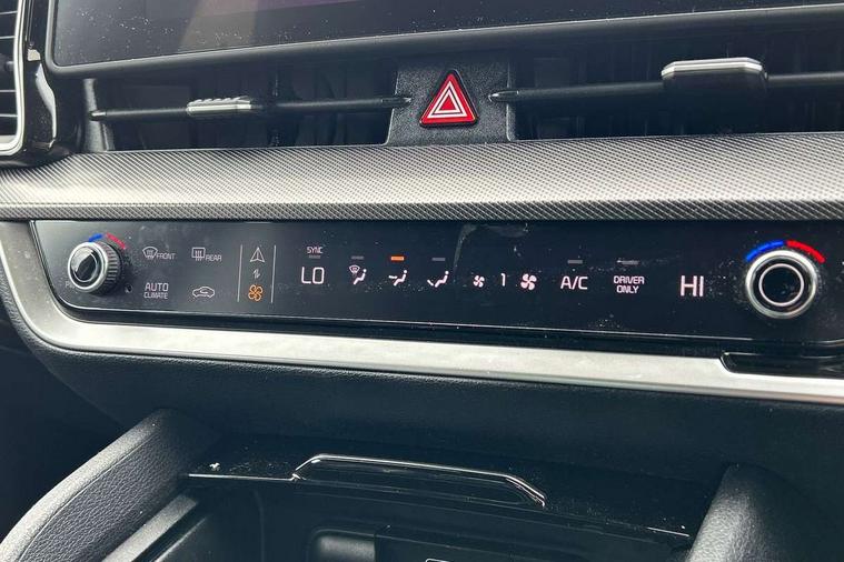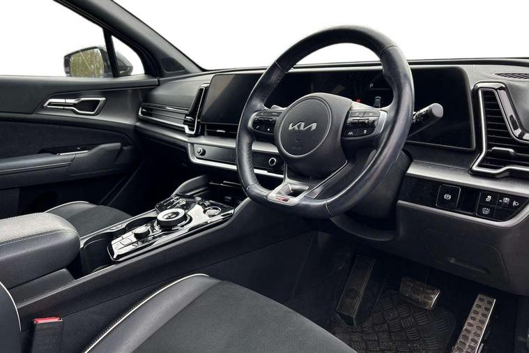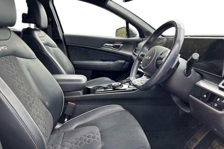 12.3" Display with navigation, 4.2" supervision colour cluster display, Apple car play/Android Auto with voice control, Drive mode selector, E-call, Forward collision avoidance assist (FCA) - city/pedestrian/cyclist/junction covering, Front and rear parking sensors, Highway Driving Assist (HDA), Intelligent speed limit assist, Kia Connect (UVO), Lane Following Assist (LFA), Lane keep assist, Low washer fluid warning, Rear view monitor, Reversing camera system integrated into centre fascia screen, Smart cruise control with stop and go functionality, Speed sensitive power steering, Trip computer, Windscreen washer level indicator, Intelligent Stop and Go, 6 speaker audio system, Bluetooth audio streaming, DAB Radio with MP3, Rear USB port, Steering wheel mounted audio controls, USB C type charging ports on centre console, USB C type charging ports on side of front seats, USB port for connection of a media device, All round electric windows with drivers and front passenger auto up/down function, Automatic headlight control system, Automatic window defogger, Backlite glass heated with timer, Body colour and black bumper with silver accents, Body colour exterior door handles, Body colour radiator upper garnish and door garnish, Electrically adjustable/heated/folding door mirrors with LED indicators, Front and rear chrome skid plates, Gloss black door mirrors, Gloss black radiator grille, Gloss black side sill and wheel arch body mouldings, Glossy black roof rack, High beam assist, Interior electrochromic mirror, LED daytime running lights, LED front fog lamps, LED headlamps (low and high beam - MFR type), LED High mounted stop light, LED rear combination lamp, Rain sensing wipers with aero blades, Rear fog lamp, Rear privacy glass, Rear side wing doors, Rear spoiler, Rear wiper, Satin finished beltline, Silver coloured inserts to bumpers, Tinted rear glass, Trailer stability assist, 12V power socket in front centre fascia and luggage compartment, 2nd row personal lamps, 3 seat bench in 2nd row, 3 x passenger assist grips, 40/20/40 split folding rear seat, All-round height adjustable headrests, Black headlining, Centre console storage box, Cupholders in rear armrest, D-Shaped sports leather steering wheel and perforated inserts with GT-Line logo, Door courtesy lamps, Drink holder at centre armrest, Driver and front passenger side sunvisors with illuminated vanity mirrors, Driver's seat manual height adjust, Drivers seat power lumbar support, Front and rear door storage, Front seat and rear pockets, Front/rear centre armrests, Gear shift indicator, Glovebox illumination, Heated front seats, Heated steering wheel, Interior door lock/unlock function, ISOFIX Child seat top tethers and anchor fixings outer rear seats, Luggage area light, Luggage area load cover, Luggage net with hooks, Metal paint interior door handles, Overhead console lamp, Paddle shift controls, Rear cabin light, Rear coat hooks, Single front passenger seat, Sports pedals, Suede leather upholstery, Three zone climate control, Tilt/telescopic adjustable steering wheel, Ventilation ducts to rear compartment, Active front headrests, All round 3-point seatbelts, Anti-lock braking system (ABS), Dual front side airbags, Dual horn, Electronic parking brake, Electronic stability control with downhill brake control, Front passenger airbag cut-off switch, Front seatbelt pretensioners + load limiters, Height adjustable front seatbelts, Hill start assist control (HAC), Impact sensing auto door unlocking, Multi collision brake assist, Rear door child safety locks, Rear seat alert system, Traction control, Twin curtain airbags, Twin front airbags, Tyre pressure monitoring system, Advanced anti-theft system including immobiliser and alarm, Door deadlocks, Engine Start/Stop Button with Smart Entry System, Locking wheel nuts, Speed sensitive auto door locking, Visible vehicle identification number, Aluminium pattern finish centre fascia and door garnish, 18" GT-Line alloy wheels, Tyre mobility kit,