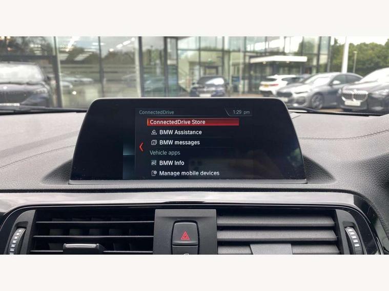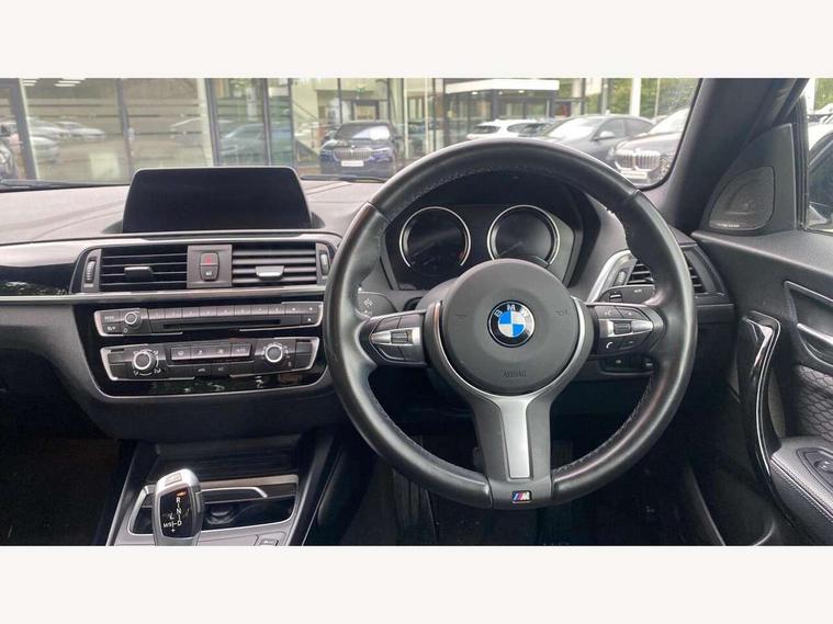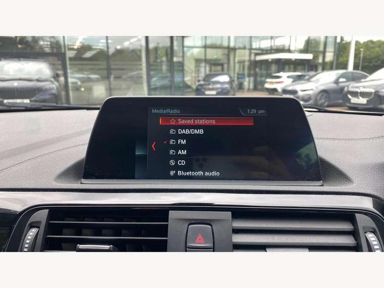 Auto start-stop, BMW Online services, BMW remote services, BMW Teleservices, Door/boot open warning, Front and rear Brake pad wear indicator, Instrument cluster with speedometer with miles per hour read out, tachometer and fuel gauge, Lights on warning by audio warning signal when ignition is switched off, Oil temperature display via on board computer in instrument cluster, On board computer - average speed+fuel consumption, service interval, clock/date, odometer/trip meter, outside temperature display and ice warning, Optimum shift indicator, Personal Profile - automatic lock when driving away selectable, Real time traffic information, Speed limiting function, Traffic message channel (TMC), 8 speed automatic transmission, Battery age recognition function, Drive performance control - ECO PRO, comfort, sport and sport+ modes, Engine cover with BMW roundel twin power turbo designation, Oil dipstick, DAB Digital radio, 2 speed adjustable intermittent wipers with wash/wipe function, Automatic headlight beam throw control, Automatically dimming rear view mirror, Body colour door handles, Body colour door mirrors, Body colour front bumper, Body colour roof mouldings, Chrome single exhaust tailpipe, round, left, Clear lenses direction indicator lights, Darkened rear lights with LED light bars, Daytime driving lights, Direction indicator side lights integrated exterior mirrors, Dynamic brake lights, Electric windows - front and rear, with open/close fingertip control, anti-trap facility and comfort closing, Follow me home headlights, Front air inlet with high gloss black finish, Front and rear bumper system with replaceable deformation elements, Green tinted heat protection glazing, Headlight range control, Heated windscreen washer jets, Heated, electrically adjustable exterior mirror aspheric on driver side, convex on passenger side, High gloss shadow line, High level third brake light, LED Headlights, LED welcome home lights, Lightweight engineering, M aerodynamic body styling, M logo designation in chrome on left and right front wings, Model designation, Model specific design elements, Rain sensor with automatic headlight activation, Rear bumper with high gloss black finish, Rear fog lights, Rear window aerial, Reversing light in rear light cluster, Shark fin roof aerial, Visible VIN plate, 12V power socket in centre console, 12V power socket in passenger footwell, 3 spoke nappa leather steering wheel, Anthracite headlining, Conditioned based service, Front and rear side armrests integrated into door trim, Front door sill finishers with M designation, Front door storage bins, Front floor mats in velour, Front head restraints, Front sliding armrest, Front sports seats with electric side bolster adjustment, Glove box handle with chrome surround, Interior lighting, front centre over interior mirror and rear centre automatic interior light activation when door is opened, Isofix child seat for two outer rear seats, Leather gearknob, Leather handbrake lever, Luggage compartment access via BMW roundel, Manually adjustment steering wheel column, Multi-function controls for steering wheel, Rear coat hooks, Rear folding head restraints, Storage compartment in rear centre console, Two cupholders with sliding cover and inlay mat, 2 rear 3 point safety belts, Active differential brake (ADB), electronic differential lock in DSC-OFF mode, Airbag - Front driver and passenger, front and rear head, front side, curtain head protection, manual deactivation of front passenger airbag possible, Anti lock braking system (ABS) with brake assist, Automatic Stability Control (ASC), BMW emergency call, Brake drying, Brake energy regeneration, Braking readiness, Cornering brake control (CBC), Crash sensor activating central locking release with hazard warning lights and interior lighting + battery safety cut-off, Dynamic brake control, Dynamic stability control + (DSC+), Dynamic Traction Control - DTC, Front pyrotechnic belt tensioners and belt force limiter, rear coaded belt buckles, Hill start assist, Rear brake discs, Seat belt security check for driver and front passenger, Side impact protection, Twin horns, Tyre pressure monitoring with 3 level warning strategy, Ventilated front disc brakes, Warning triangle and first aid kit, Central locking switch for all doors, fuel filler cap and luggage compartment, Check control system for monitoring of lights and door/luggage compartment open warning, Locking wheel bolts, Remote control including integrated key with blue insert, Start/stop button with Comfort Go keyless engine start and auto Start/stop deactivation button, Thatcham category 1 alarm + immobiliser, Reduced rolling resistance tyres,