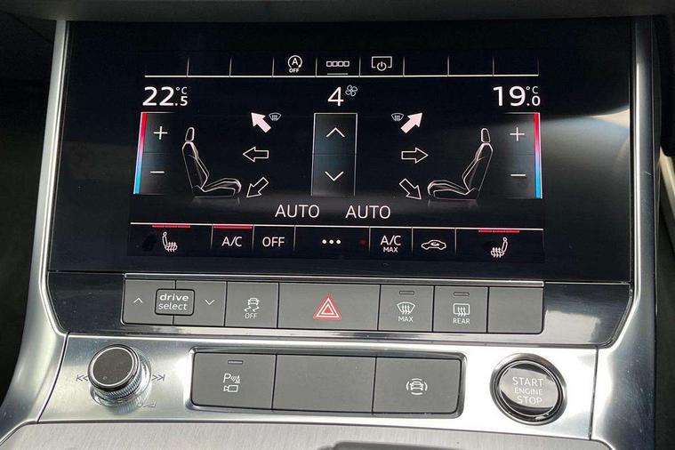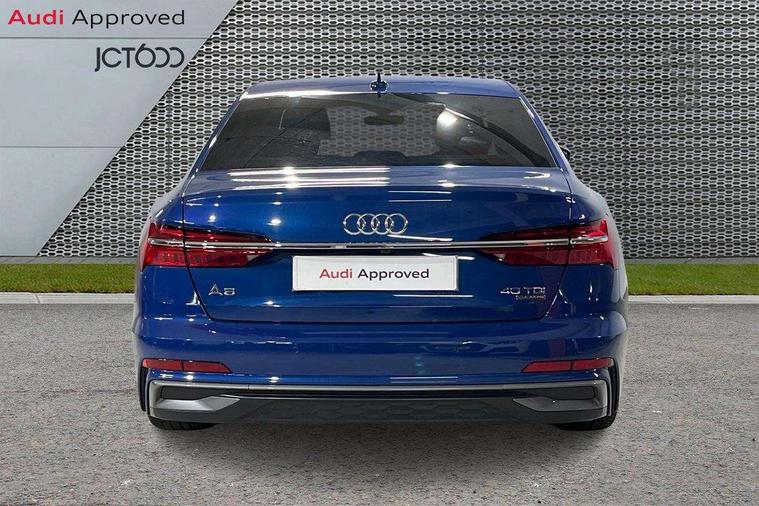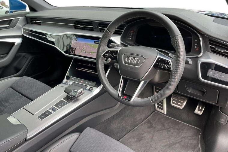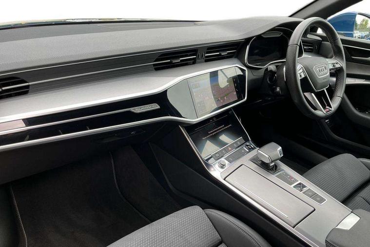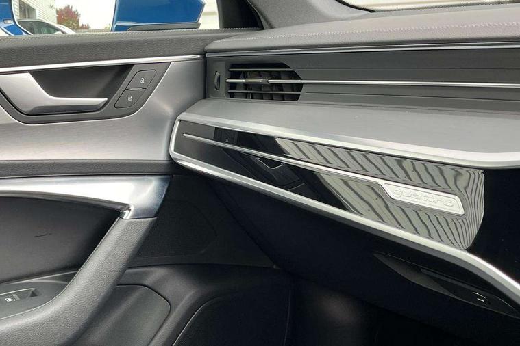 Audi connect safety and service (e-call), Audi connect with Amazon Alexa Integration, Audi drive select, Audi parking system plus - acoustic and visual park assist system for front and rear, Audi virtual cockpit, Automatic start/stop system with coasting functionality, Bluetooth interface, Camera based traffic sign recognition, Electric boot lid release, Lane departure warning system, MMI navigation plus with 10.1" and 8.6" touch screens, Progressive steering, Rear view camera, Service interval indicator, Smartphone interface includes wireless Apple carplay/Android Auto, Voice control system, 12V Mild hybrid, 22 litre AdBlue tank, Diesel particulate filter, Quattro on demand, Sports suspension, Audi front music interface, Audi sound system, Auxiliary input socket, DAB Digital radio, USB connection, Body coloured door mirrors, Electric front/rear windows, Electrically adjustable heated and folding + automatically dimming exterior mirrors with memory function, Frameless auto dimming interior rear view mirror, Front intermittent wipers, Heat insulating darkened glass in side and rear windows, Heat insulating glass in windshield, LED rear lights with dynamic indicators, LED signature front daytime running light, LED third brake light, Matrix LED headlights, Matt black rear diffuser with diffuser strip and tailpipes in chrome, Matt black side air intake grille with inlay in matt aluminium, Privacy glass, Radiator grille in anthracite black matt, single frame in chrome and horizontal struts in matt aluminium silver, Rain and light sensors, Rear boot, Rear side wing doors, 2 zone deluxe electronic climate control, 3 spoke high multi-function perforated leather steering wheel with contrast stitching and shift paddles, 40/20/40 split folding 3 rear seat bench in 3 parts with rear centre armrest, Audi phone box light, Black cloth headlining, Electrically adjustable front seats including seat height, fore/aft position, backrest angle and 4-way lumbar with memory for driver's seat, Front and rear floor mats, Front centre armrest, Front head restraints, Heated front seats, Height/reach adjust steering wheel, Illuminated door sill trims with S logo, Illuminated sun visors with vanity mirrors, Leather gear knob, Rear headrests, Single front passenger seat, Stainless steel pedals and foot rest, Tool kit and car jack, LED Interior Ambient Lighting Pack - A6, Non smoking pack - A6, S line exterior style pack - A6, 3 point seatbelts on all seats, Airbags - Front side, front and rear including head, Audi pre-sense front, EBD - Electronic brakeforce distribution, Electromechanical parking brake, Electronic Stability Control (ESC) including ABS, ASR and EDL, Extended pedestrian protection measures, ISOFIX child seat mounting for front passenger seat and ISOFIX child seat mounting with Top Tether for outer rear seats, Manual child proof rear door locks, Seatbelt monitoring, Tyre pressure warning light, Warning triangle and first aid kit, Anti theft alarm with tow away protection, Anti-theft wheel bolts and wheel loosening detection, Immobiliser, Keyless Go, Remote central locking, Matt brushed aluminium inlays,
