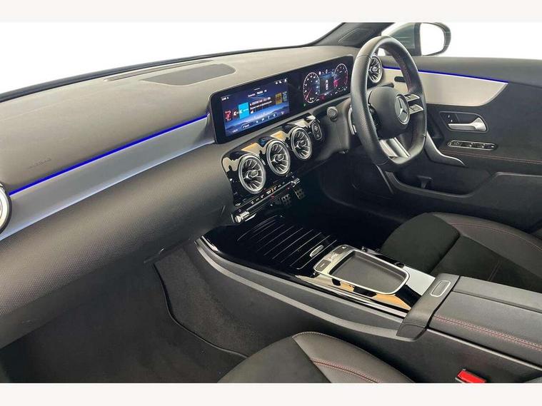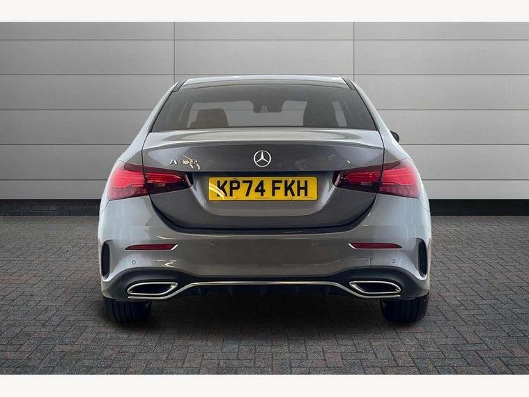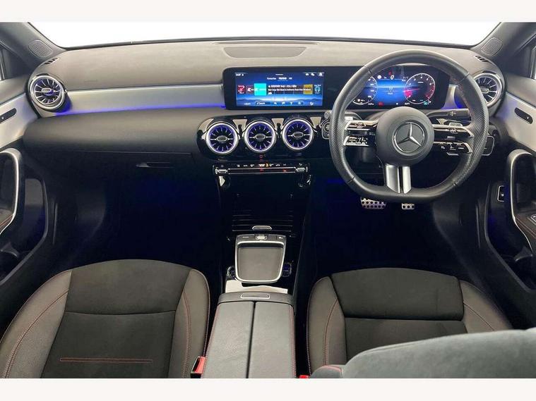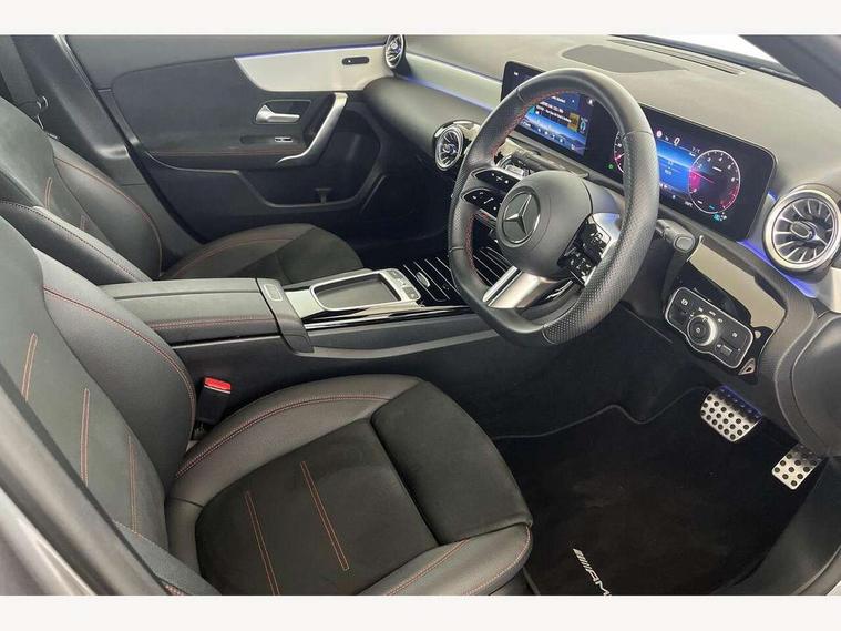 10.25 inch touchscreen central media display, 10.25" Digital instrument cluster display screen, Attention assist, Blind spot assist, Brake pad wear indicator warning light, Car wash mode, Cruise control + speed limiter, Direct steering, Direction indicators with lane change function, Dual bluetooth interfaces, DYNAMIC SELECT with a choice of driving modes (ECO, Comfort, Sport and Individual), ECO start/stop function, Engine start/stop button, Fingerprint scanner, Fluid level warning indicator for fuel, oil, coolant and washer fluid, Fluorescent jacket for driver, Hard-disk navigation, Hey Mercedes Voice activation, Lamp failure indicator, Lane keeping system, Mercedes me connect including emergency call system, accident recovery, breakdown and maintenance management, Mercedes me remote services, Outside temperature gauge, Owners manual in English, Pre-installation of private car share, Preinstallation for Mercedes Benz link, Remote boot closing, Service indicator (ASSYST), Smartphone integration with Apple CarPlay and Android auto, Speed limit assist, Speed sensitive power steering, Trip computer in multifunction display with current consumption indicator, Wireless charging, Lowered comfort suspension, DAB Digital radio, MBUX multimedia system, Mercedes Benz sound system (100 W) with 6 speakers, 4 Electric Front and Rear windows, Adaptive brake lights, AMG body styling - AMG front apron with front splitter and AMG rear apron and visible exhaust tailpipe trim elements, Body colour bumpers, Body colour door handles with chrome inserts, Body colour side skirt, Body coloured door mirrors, Chrome beltline strips, Diamond radiator grille with pins in fine star pattern, Electric adjustable and heated door mirrors with integrated LED side indicators, Exhaust system with 2 visible tailpipe trim elements and rear apron, Headlamp assist automatic headlamp activation, Heat insulating dark tinted rear and rear side windows, Heated glass rear windscreen + timer control, LED High Performance headlamps including integral LED daytime running lamps and adaptive highbeam assist, LED tail lamp, Privacy glass, Radio aerial, Rain sensing windscreen wipers with two sensitivity settings, Rear boot, Rear fog lights, Rear side wing doors, Third brake light featuring LED technology, Window line trim strip in chrome, 3 seat bench in 2nd row, 3 Spoke flat bottom leather multi function steering wheel with perforated leather in grip area, 4 way lumbar support, 40:20:40 split folding rear seats, Air conditioning - One zone thermatic automatic climate control with automatically controlled air distribution, AMG floor mats, Automatic child seat recognition sensor, Black air vents with surround in silver chrome, Black roof lining, Brushed stainless steel sports pedals with rubber studs, Front centre armrest with stowage, Front door sills with Mercedes Benz lettering, Front seat backs luggage nets, Galvanished gear shift paddles on steering wheel, Heated front seats, Height/reach adjustable steering column, Interior lighting - 64 colour Ambient lighting, Interior mirror with reading lamps in black and frameless, Rear armrest with 2 cupholders, Seat occupancy sensor for front passenger seat, Single front passenger seat, Sports seats with adjustable head restraints, Stowage compartment in centre console with retractable cover, Sunvisors with illuminated vanity mirrors, Twin front cupholders, Keyless go comfort pack - A Class, Light and sight package - A Class, Mirror package - A Class, Parking pack with 180 degree view - A Class, Seat comfort pack - A Class, USB pack plus - A Class, 3 rear 3 point seatbelts, ABS with Brake Assist, Active bonnet, Active brake assist includes forward collision warning system with autonomous braking, Adaptive brake assist with hold function and hill start assist, Black seatbelts, Bonnet with power domes, Childproof locks manually operated for rear doors and electrically operated for rear power windows, Crash responsive emergency lighting, Driver and passenger head and side airbags, Drivers knee airbag, Dual stage driver/passenger airbags, Electronic parking brake, ESP curve dynamic assist, ESP with ASR, Front and rear seatbelt reminder, ISOFIX and top tether child seat fixing points in two outer rear seats, Tyre pressure monitoring system, Warning triangle and first aid kit, Window airbags, Alarm system/interior protection/immobiliser, Guard 360 degree vehicle protection, Remote central locking and crash sensor with emergency opening function, Light longitudinal grain aluminium trim, 18" AMG 5 twin spoke light alloy wheels, aerodynamically optimised, painted in black with high sheen finish, Summer tyres, Tirefit sealant kit,