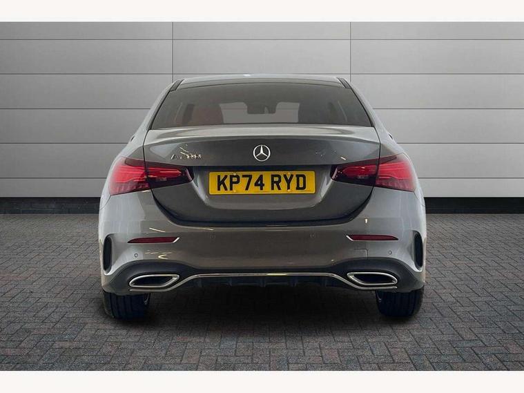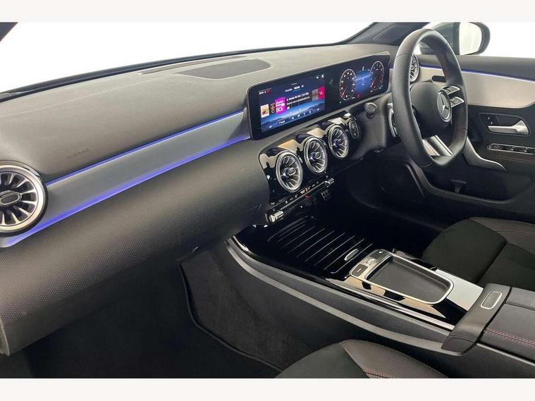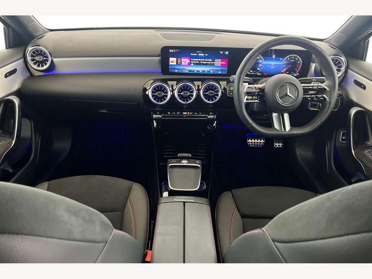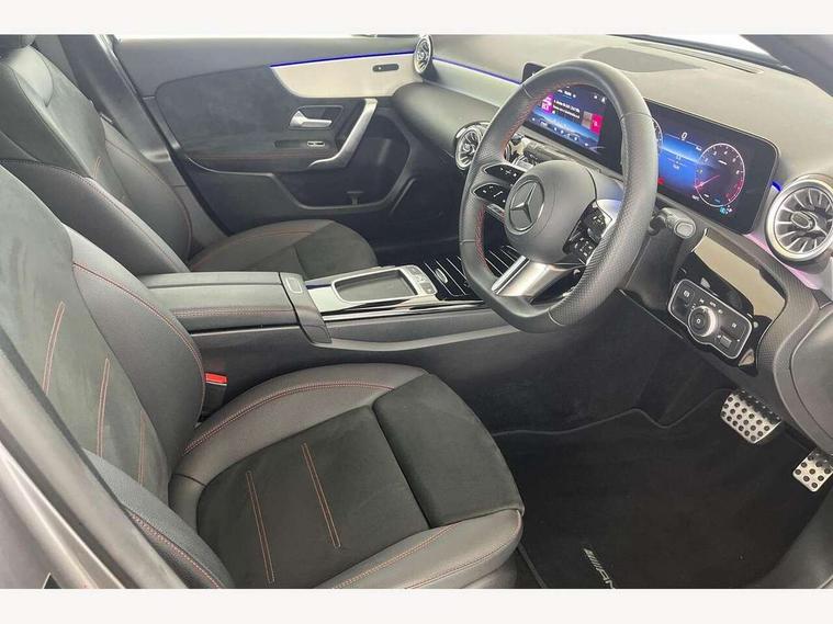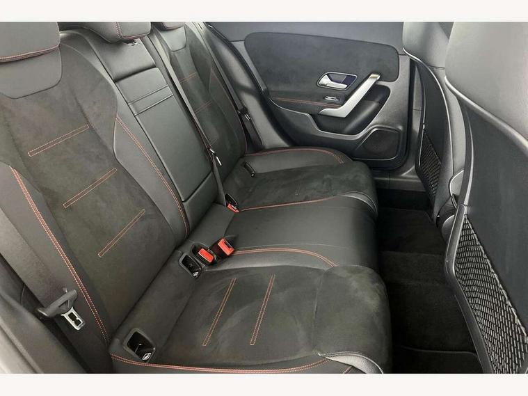 10.25 inch touchscreen central media display, 10.25" Digital instrument cluster display screen, Attention assist, Blind spot assist, Brake pad wear indicator warning light, Car wash mode, Cruise control + speed limiter, Direct steering, Direction indicators with lane change function, Dual bluetooth interfaces, DYNAMIC SELECT with a choice of driving modes (ECO, Comfort, Sport and Individual), ECO start/stop function, Engine start/stop button, Fingerprint scanner, Fluid level warning indicator for fuel, oil, coolant and washer fluid, Fluorescent jacket for driver, Hard-disk navigation, Hey Mercedes Voice activation, Lamp failure indicator, Lane keeping system, Mercedes me connect including emergency call system, accident recovery, breakdown and maintenance management, Mercedes me remote services, Outside temperature gauge, Owners manual in English, Pre-installation of private car share, Preinstallation for Mercedes Benz link, Remote boot closing, Service indicator (ASSYST), Smartphone integration with Apple CarPlay and Android auto, Speed limit assist, Speed sensitive power steering, Trip computer in multifunction display with current consumption indicator, Wireless charging, Lowered comfort suspension, DAB Digital radio, MBUX multimedia system, Mercedes Benz sound system (100 W) with 6 speakers, 4 Electric Front and Rear windows, Adaptive brake lights, AMG body styling - AMG front apron with front splitter and AMG rear apron and visible exhaust tailpipe trim elements, Body colour bumpers, Body colour door handles with chrome inserts, Body colour side skirt, Body coloured door mirrors, Chrome beltline strips, Diamond radiator grille with pins in fine star pattern, Electric adjustable and heated door mirrors with integrated LED side indicators, Exhaust system with 2 visible tailpipe trim elements and rear apron, Headlamp assist automatic headlamp activation, Heat insulating dark tinted rear and rear side windows, Heated glass rear windscreen + timer control, LED High Performance headlamps including integral LED daytime running lamps and adaptive highbeam assist, LED tail lamp, Privacy glass, Radio aerial, Rain sensing windscreen wipers with two sensitivity settings, Rear boot, Rear fog lights, Rear side wing doors, Third brake light featuring LED technology, Window line trim strip in chrome, 3 seat bench in 2nd row, 3 Spoke flat bottom leather multi function steering wheel with perforated leather in grip area, 4 way lumbar support, 40:20:40 split folding rear seats, Air conditioning - One zone thermatic automatic climate control with automatically controlled air distribution, AMG floor mats, Automatic child seat recognition sensor, Black air vents with surround in silver chrome, Black roof lining, Brushed stainless steel sports pedals with rubber studs, Front centre armrest with stowage, Front door sills with Mercedes Benz lettering, Front seat backs luggage nets, Galvanished gear shift paddles on steering wheel, Heated front seats, Height/reach adjustable steering column, Interior lighting - 64 colour Ambient lighting, Interior mirror with reading lamps in black and frameless, Rear armrest with 2 cupholders, Seat occupancy sensor for front passenger seat, Single front passenger seat, Sports seats with adjustable head restraints, Stowage compartment in centre console with retractable cover, Sunvisors with illuminated vanity mirrors, Twin front cupholders, Keyless go comfort pack - A Class, Light and sight package - A Class, Mirror package - A Class, Parking pack with 180 degree view - A Class, Seat comfort pack - A Class, USB pack plus - A Class, 3 rear 3 point seatbelts, ABS with Brake Assist, Active bonnet, Active brake assist includes forward collision warning system with autonomous braking, Adaptive brake assist with hold function and hill start assist, Black seatbelts, Bonnet with power domes, Childproof locks manually operated for rear doors and electrically operated for rear power windows, Crash responsive emergency lighting, Driver and passenger head and side airbags, Drivers knee airbag, Dual stage driver/passenger airbags, Electronic parking brake, ESP curve dynamic assist, ESP with ASR, Front and rear seatbelt reminder, ISOFIX and top tether child seat fixing points in two outer rear seats, Tyre pressure monitoring system, Warning triangle and first aid kit, Window airbags, Alarm system/interior protection/immobiliser, Guard 360 degree vehicle protection, Remote central locking and crash sensor with emergency opening function, Light longitudinal grain aluminium trim, 18" AMG 5 twin spoke light alloy wheels, aerodynamically optimised, painted in black with high sheen finish, Summer tyres, Tirefit sealant kit,