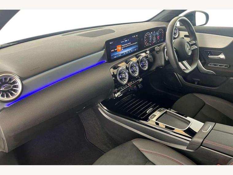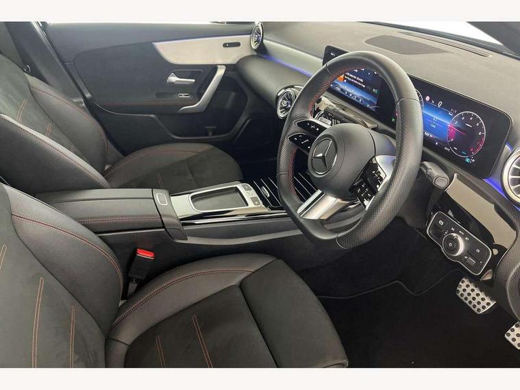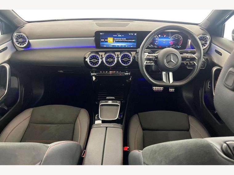 10.25 inch touchscreen central media display, 10.25" Digital instrument cluster display screen, Attention assist, Blind spot assist, Brake pad wear indicator warning light, Car wash mode, Cruise control + speed limiter, Direct steering, Direction indicators with lane change function, Dual bluetooth interfaces, DYNAMIC SELECT with a choice of driving modes (ECO, Comfort, Sport and Individual), ECO start/stop function, Engine start/stop button, Fingerprint scanner, Fluid level warning indicator for fuel, oil, coolant and washer fluid, Fluorescent jacket for driver, Hard-disk navigation, Hey Mercedes Voice activation, Lamp failure indicator, Lane keeping system, Mercedes me connect including emergency call system, accident recovery, breakdown and maintenance management, Mercedes me remote services, Outside temperature gauge, Owners manual in English, Pre-installation of private car share, Preinstallation for Mercedes Benz link, Remote boot closing, Service indicator (ASSYST), Smartphone integration with Apple CarPlay and Android auto, Speed limit assist, Speed sensitive power steering, Trip computer in multifunction display with current consumption indicator, Wireless charging, Lowered comfort suspension, DAB Digital radio, MBUX multimedia system, Mercedes Benz sound system (100 W) with 6 speakers, 4 Electric Front and Rear windows, Adaptive brake lights, AMG body styling - AMG front apron with front splitter and AMG rear apron and visible exhaust tailpipe trim elements, Body colour bumpers, Body colour door handles with chrome inserts, Body colour side skirt, Body coloured door mirrors, Chrome beltline strips, Diamond radiator grille with pins in fine star pattern, Electric adjustable and heated door mirrors with integrated LED side indicators, Exhaust system with 2 visible tailpipe trim elements and rear apron, Headlamp assist automatic headlamp activation, Heat insulating dark tinted rear and rear side windows, Heated glass rear windscreen + timer control, LED High Performance headlamps including integral LED daytime running lamps and adaptive highbeam assist, LED tail lamp, Privacy glass, Radio aerial, Rain sensing windscreen wipers with two sensitivity settings, Rear boot, Rear fog lights, Rear side wing doors, Third brake light featuring LED technology, Window line trim strip in chrome, 3 seat bench in 2nd row, 3 Spoke flat bottom leather multi function steering wheel with perforated leather in grip area, 4 way lumbar support, 40:20:40 split folding rear seats, Air conditioning - One zone thermatic automatic climate control with automatically controlled air distribution, AMG floor mats, Automatic child seat recognition sensor, Black air vents with surround in silver chrome, Black roof lining, Brushed stainless steel sports pedals with rubber studs, Front centre armrest with stowage, Front door sills with Mercedes Benz lettering, Front seat backs luggage nets, Galvanished gear shift paddles on steering wheel, Heated front seats, Height/reach adjustable steering column, Interior lighting - 64 colour Ambient lighting, Interior mirror with reading lamps in black and frameless, Rear armrest with 2 cupholders, Seat occupancy sensor for front passenger seat, Single front passenger seat, Sports seats with adjustable head restraints, Stowage compartment in centre console with retractable cover, Sunvisors with illuminated vanity mirrors, Twin front cupholders, Keyless go comfort pack - A Class, Light and sight package - A Class, Mirror package - A Class, Parking pack with 180 degree view - A Class, Seat comfort pack - A Class, USB pack plus - A Class, 3 rear 3 point seatbelts, ABS with Brake Assist, Active bonnet, Active brake assist includes forward collision warning system with autonomous braking, Adaptive brake assist with hold function and hill start assist, Black seatbelts, Bonnet with power domes, Childproof locks manually operated for rear doors and electrically operated for rear power windows, Crash responsive emergency lighting, Driver and passenger head and side airbags, Drivers knee airbag, Dual stage driver/passenger airbags, Electronic parking brake, ESP curve dynamic assist, ESP with ASR, Front and rear seatbelt reminder, ISOFIX and top tether child seat fixing points in two outer rear seats, Tyre pressure monitoring system, Warning triangle and first aid kit, Window airbags, Alarm system/interior protection/immobiliser, Guard 360 degree vehicle protection, Remote central locking and crash sensor with emergency opening function, Light longitudinal grain aluminium trim, 18" AMG 5 twin spoke light alloy wheels, aerodynamically optimised, painted in black with high sheen finish, Summer tyres, Tirefit sealant kit,