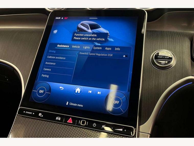 11.9" high resolution multimedia colour display, 12.3" Digital individually configurable instrument display, Acoustic presence indicator, Active lane keeping assist, Attention assist, Blind spot assist, Bluetooth interface for hands free telephone, Collision prevention assist plus, Cruise control with speedtronic variable speed limiter, Dashcam - front camera for video recording, Direct steer speed sensitive steering, DYNAMIC SELECT with a choice of driving modes (ECO, Comfort, Sport, Sport+ and Individual), eCall emergency call system, ECO start/stop function, Fingerprint scanner, Fluorescent jacket for driver, Hard disc navigation, Instrument display in miles with English lettering, MBUX augmented reality for navigation, MBUX navigation premium, MBUX voice control activated by keywords "Hey Mercedes", Mercedes me connect, Outside temperature display, Remote boot release, Remote services, Road sign recognition system, Service indicator (ASSYST), Smartphone integration, Status display for rear seat belts in instrument cluster, Traffic sign assist, Trip computer, Wireless charging, 48V Mild hybrid technology, 4MATIC permanent four wheel drive, 62 litre fuel tank, 9G TRONIC plus automatic transmission, Diesel particulate filter, Sport suspension, DAB digital radio tuner, MBUX extended functions, Mercedes benz sound system, Pre installation for Mercedes Benz Link, Adaptive brake lights, Adaptive high beam assist plus, Aluminium look running boards with rubber studs, Aluminium roof rails, AMG bodystyling front apron, rear apron and side skirts, AMG Line exterior, Auto headlights, Body colour bumpers, Body colour door mirrors, Digital light LED headlights, Electrically adjustable door mirrors, Front and rear electric windows, Headlight washers, Heat insulating dark tinted glass, Heated rear window, High level LED brake light, Integrated LED daytime running lights, LED indicator lights, LED rear fog lights, LED tail lamp, Motor way mode function and locator lighting, Noise acoustic glass, Radiator grille with Mercedes Benz pattern and integreated Mercedes star and louvre in dark grey matt with chrome inlay and black frame, Rain sensor windscreen wipers, Range adjustable headlights, Rear side wing doors, Rear wiper, Transparent Bonnet, Two chrome plated tailpipe trim elements, Variable front intermittent wipers, Welcome and follow-me home light functionality, Wider wheel arch for AMG wheels, 3 seat bench in 2nd row, 40:20:40 split folding rear seats, Ambient lighting premium, AMG line interior, Artico man-made leather upholstery, Audio and onboard settings control on multifunction steering wheel, Automatic child seat recognition sensor, Black fabric roof lining, Black floor mats with AMG lettering, Double cup holder in centre console, Easy-pack removable load compartment cover, Electrically height/reach adjustable steering column, Front centre armrest with stowage compartment, Front head restraints, Galvanised steering wheel gearshift paddles, Heated front seats, Illuminated door sill panels with Mercedes Benz lettering, Illuminated glove compartment, Instrument panel and beltlines in ARTICO manmade leather in nappa look, Multifunction sports steering wheel in nappa leather, Rear centre headrest, Rear head restraints, Rear top tether child seat ISOFIX attachment, Single front passenger seat, Sports pedals with stainless steel surfaces and rubber studs, Sports seats, Sun visors, THERMATIC 2 zone automatic climate control, Anti theft protection package - GLC, Boot comfort package - GLC, Exterior chrome package - GLC, Interior chrome package - GLC, Interior lighting pack - GLC, Keyless-Go comfort package - GLC, Memory pack - GLC, Mirror pack - GLC, Parking package with 360 degree camera - GLC, Seat comfort package - GLC, Stowage space package - GLC, USB Plus Pack - GLC, 3 rear 3 point seatbelts, Active braking assist, Anti-lock braking system (ABS), ASR traction control, Automatic front passenger airbag deactivation, Black seat belts, Brake calipers with Mercedes-Benz lettering + perforated brake discs, Braking system with larger brake discs on the front axle, Child proof door locks, Dual-stage airbags - driver and front passenger, driver knee bag and window bags for driver, front passenger and rear passengers, Electronic parking brake, Electronic stability programme (ESP) with curve dynamic assist and cross wind assist, Front and rear seatbelt reminder, Front passenger seat occupancy sensor, Front seatbelt pretensioners, Hill start assist, Tyre pressure monitoring system, Warning triangle and first aid kit, Automatic door locking, Guard 360 degree vehicle protection plus, Interior protection/immobiliser, Remote central locking, Centre console in metal structure finish, Metal structure trim, 20" AMG 5 spoke aerodynamically optimised light alloy wheels in painted black with high sheen finish, Summer tyres, TIREFIT with tyre inflation compressor,