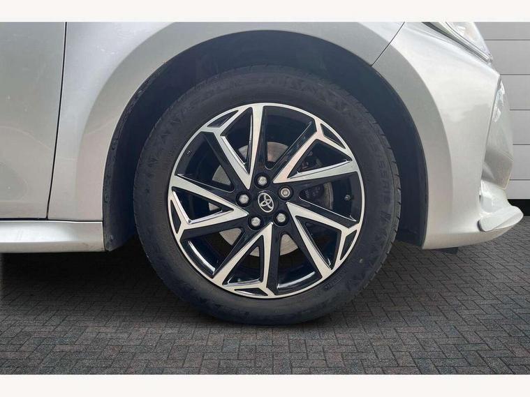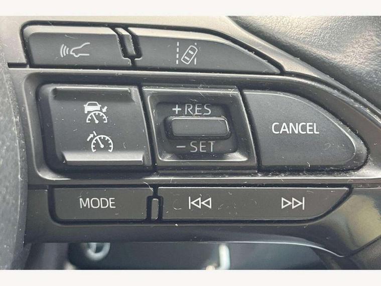 Adaptive cruise control, Adjustable speed limit with speed warning, Bluetooth connectivity, Colour binocular inspired displays with digital speedometer, E-call, Electric power steering, Hybrid energy display, Multi information display switches on steering wheel, Reversing camera, Smartphone integration with Apple CarPlay and Android auto, Tailgate, Voice recognition, Vehicle Stability Control (VSC), 4 speakers, 8" Multimedia display touch screen, USB connection, Acoustic windscreen glass, Auto windscreen wipers, Automatic headlights, Body coloured door mirrors, Electric adjustable heated door mirrors, Follow me home headlights, Front auto power windows with anti jam protection, Full LED rear lights, LED daytime running lights, LED front fog lights, LED front light guide, LED Headlights, LED High mounted stop lamp, LED Indicators, LED rear light guide, Manual headlight levelling, Painted chequered front grille, Rain sensor, Rear auto power windows with anti jam protection, Rear privacy glass, Rear side wing doors, Rear spoiler, Rear wiper, Shark fin antenna, Turning signal integrated indicators in door mirrors, Variable front intermittent wipers, 3 adjustable rear headrests, 3 spoke leather steering wheel, 60/40 split folding rear seat, Active headrests, Adjustable boot height, Auto air conditioning, Coat hooks in rear grab handles, Cup holders (2 front & door), Data Communication Module (DCM) connected services, Fabric upholstery, Front armrest, Glovebox, Grey roof lining, Height adjustable driver's seat, Isofix seat fixing, Leather gearshift, Pollen filter, Shopping bag hooks, Single front passenger seat, Tilt/telescopic steering column, 3 point seatbelts on all rear seats, ABS+EBD+Brake assist, Electronic parking brake, Emergency brake light system (EBS), Front passenger airbag on/off switch, Front seatbelt reminder, Hill start assist control (HAC), Rear child proof door locks, Rear seat belt reminder, Supplemental Restraint System (SRS) 8 airbags: Driver & passenger's airbags, dual side curtain airbags, side impact airbags, front centre airbag, Toyota Safety Sense 2, Precollison + Night time Pedestrian & Cyclist Detection, Lane Trace Assist, Auto High Beam, Intelligent ACC & Road Sign Assist, Tyre pressure warning system, 2x Master key, Alarm/immobiliser, Remote powered central double locking doors, Soft touch instrument panel, Space saver spare wheel,