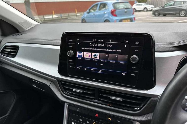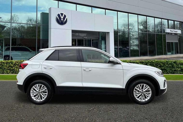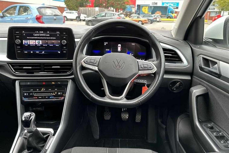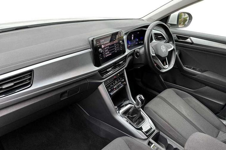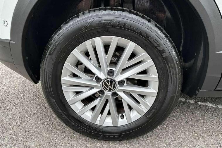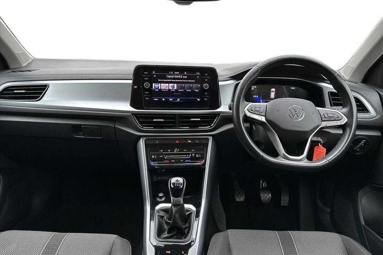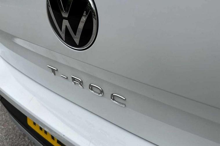 Bluetooth mobile phone interface, Driver alert system with fatigue detection, Driver tips and journey analysis, Emergency call service, Lane keeping system Lane Assist, Modified key software - reduce switch off time for key status change to Long no motion, Online services, Park assist including front and rear parking sensors, Power assisted speed sensitive steering, Service interval indicator, Tailgate/trunk lid release from outside, Think blue trainer driver tips and journey analysis, Warning sound and light for front seatbelts unfastened, Wireless app connect, Battery regeneration during braking, Front shock absorption, Rear shock absorption chassis with increased ride height, Start/stop function with battery regeneration, DAB Digital radio, Diversity antenna for FM reception, Music playback - MP3, WMA and AAC files, Premium USB cable in choice of either Apple or Android smartphone compatibility, SD card slot, Simultaneous pairing of 2 compatible mobile devices, Title and cover art display, We Connect and We Connect Plus functionality, 3rd brake light, Auto dimming interior rear view mirror, Automatic hazard lights activation under emergency braking, Automatic headlight control with LED separate daytime running lights with coming/leaving home function, Black roof rails, Body coloured bumpers and radiator grille with chrome trim and front fog lamps with chrome bezel, Body coloured exterior mirror housings and door handles, Extended roof spoiler, Exterior mirrors aspherical on driver side, convex on front passenger side, External USB type C socket and charging sockets, Front windscreen wiper with intermittent wipe and 4 position delay, Heated rear window, LED rear combination lamps, LED rear number plate lights, LED tail lamp rear comination lamps, Power windows with comfort operation and circuit breaker, Rain sensor, Rear exhaust tailpipe, Rear fog light on one side and reversing lights on both sides, Rear side wing doors, Rear wash/wipe with intermittent wipe setting, Remote electrically foldable door mirrors, puddle lights and reverse activated passenger's door mirror, 12V power socket in centre console, 3 rear head restraints, 3 seat bench in 2nd row, 4 load lashing points in luggage compartment, Air care climatronic air conditoning system with active combination filter and 2-zone temperature control, Ambient lighting with mirror logo projection, Cloth upholstery, Door and side trim panel in cloth, Drawer under drivers seat, Driver/front passenger seat height adjustment, Front centre armrest, Front comfort sports seats, Front cupholders x 2, Front reading light, Instrument lighting, white adjustable panel illumination, Interior light delay, Isofix child seat preparation, Leather gearshift handle, Load-through provision with cup holder when folded down ('Unsplit rear seat bench, split folding backrest, with centre armrest), Luggage compartment lighting, Lumbar support for driver's and front passengers seat, Non-folding front passenger seat backrest, Single front passenger seat, Storage compartment in left and right luggage area, Storage compartment in rear doors, Storage compartments in driver and front passenger doors, Sunvisors with illuminated vanity mirrors, Variable boot floor, height adjustable and removable, Driver assistance pack without proactive passenger protection - T-Roc, 3 point height adj front seatbelts + pretensioners, 3 point seatbelts in outer rear with ECE label, ABS, Child locks on rear doors, Driver and front passenger airbag with front passenger airbag deactivation, Driver and front passenger safety-optimised head restraints, Drivers seatbelt reminder, Electronic parking brake, Electronic Stability Control (ESC) inc EDL (Electronic Differential Lock) and ASR (Traction Control), Front and rear passengers curtain airbag system including front side airbags, Front assist with city emergency braking and pedestrian monitoring, Front disc brakes, Front seat side impact airbags, Hill start assist, Predictive pedestrian protection, Rear disc brakes, Single tone horn, Tyre pressure loss indicator, Volkswagen roadside assistance, Alarm with interior protection, Anti-theft alarm system with interior monitoring, backup horn, and towing protection, Remote central locking with SAFELOCK, radio remote control with 2 remote control folding keys, Pewter matt decorative inserts for intrument panel, centre console and door panels at the front, Trims for alloy wheels,