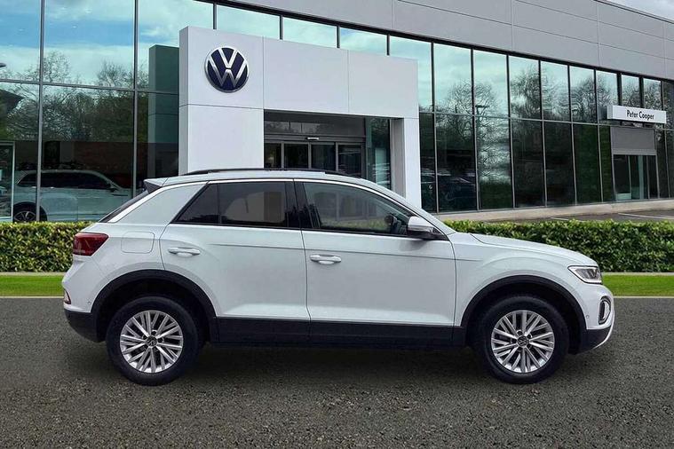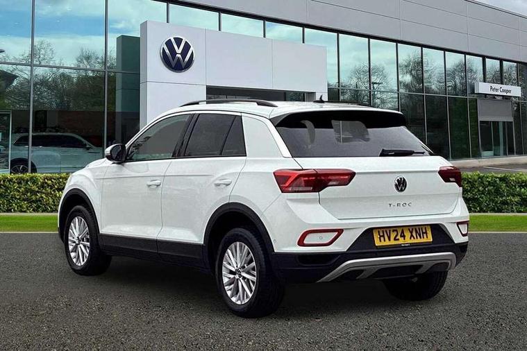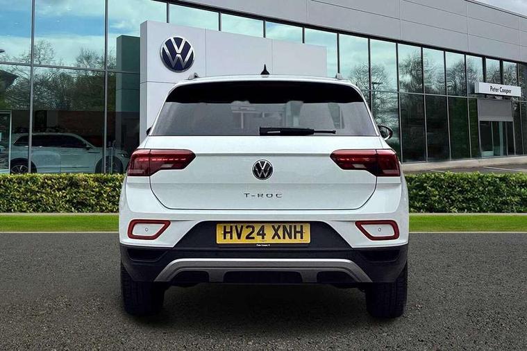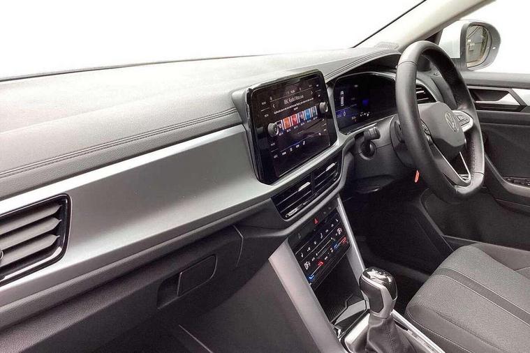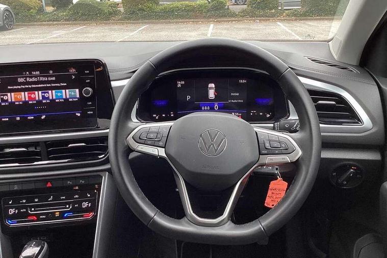 Advanced driver attention and drowsiness monitor, Bluetooth mobile phone interface, Dynamic road sign display, Emergency call service, Lane keeping system Lane Assist, Modified key software - reduce switch off time for key status change to Long no motion, Online services, Park assist including front and rear parking sensors, Power assisted speed sensitive steering, Service interval indicator, Tailgate/trunk lid release from outside, Think blue trainer driver tips and journey analysis, Warning sound and light for front seatbelts unfastened, Wireless app connect, Battery regeneration during braking, Front shock absorption, Rear shock absorption chassis with increased ride height, Start/stop function with battery regeneration, DAB Digital radio, Diversity antenna for FM reception, Music playback - MP3, WMA and AAC files, Premium USB cable in choice of either Apple or Android smartphone compatibility, SD card slot, Simultaneous pairing of 2 compatible mobile devices, Title and cover art display, We Connect and We Connect Plus functionality, 3rd brake light, Auto dimming interior rear view mirror, Automatic hazard lights activation under emergency braking, Automatic headlight control with LED separate daytime running lights with coming/leaving home function, Black roof rails, Body coloured bumpers and radiator grille with chrome trim and front fog lamps with chrome bezel, Body coloured exterior mirror housings and door handles, Electrically adjustable and heated door mirrors, Extended roof spoiler, Exterior mirrors aspherical on driver side, convex on front passenger side, External USB type C socket and charging sockets, Front windscreen wiper with intermittent wipe and 4 position delay, Heated rear window, LED rear combination lamps, LED rear number plate lights, Power windows with comfort operation and circuit breaker, Rain sensor, Rear exhaust tailpipe, Rear fog light on one side and reversing lights on both sides, Rear side wing doors, Rear wash/wipe with intermittent wipe setting, Remote electrically foldable door mirrors, puddle lights and reverse activated passenger's door mirror, 12V power socket in centre console, 3 rear head restraints, 3 seat bench in 2nd row, 4 load lashing points in luggage compartment, Air care climatronic air conditoning system with active combination filter and 2-zone temperature control, Ambient lighting with mirror logo projection, Cloth upholstery, Door and side trim panel in cloth, Drawer under drivers seat, Driver/front passenger seat height adjustment, Front centre armrest, Front comfort sports seats, Front cupholders x 2, Front reading light, Front seat back storage pockets, Glove compartment door with light, Instrument lighting, white adjustable panel illumination, Interior light delay, Isofix child seat preparation, Leather gearshift handle, Load-through provision with cup holder when folded down ('Unsplit rear seat bench, split folding backrest, with centre armrest), Luggage compartment lighting, Lumbar support for driver's and front passengers seat, Non-folding front passenger seat backrest, Single front passenger seat, Storage compartment in left and right luggage area, Storage compartment in rear doors, Storage compartments in driver and front passenger doors, Sunvisors with illuminated vanity mirrors, Variable boot floor, height adjustable and removable, Driver assistance pack without proactive passenger protection - T-Roc Life/Match, 3 point height adj front seatbelts + pretensioners, 3 point seatbelts in outer rear with ECE label, ABS, Child locks on rear doors, City emergency braking and pedestrian monitoring, Driver and front passenger airbag with front passenger airbag deactivation, Driver and front passenger safety-optimised head restraints, Drivers seatbelt reminder, Electronic parking brake, Electronic Stability Control (ESC) inc EDL (Electronic Differential Lock) and ASR (Traction Control), Front and rear passengers curtain airbag system including front side airbags, Front disc brakes, Hill start assist, Predictive pedestrian protection, Rear disc brakes, Two tone horn, Tyre pressure loss indicator, Volkswagen roadside assistance, Alarm with interior protection, Anti-theft alarm system with interior monitoring, backup horn, and towing protection, Remote central locking with SAFELOCK, radio remote control with 2 remote control folding keys, Pewter matt decorative inserts for intrument panel, centre console and door panels at the front, Trims for alloy wheels,