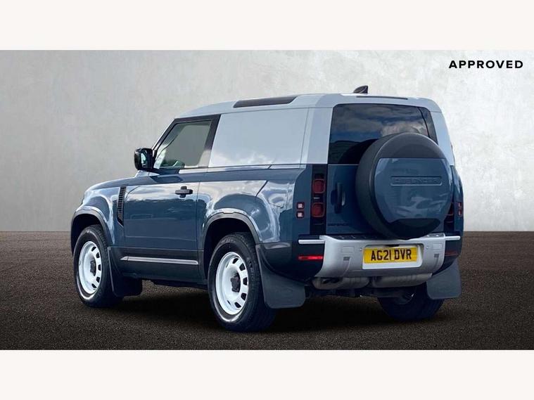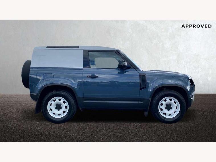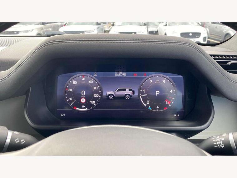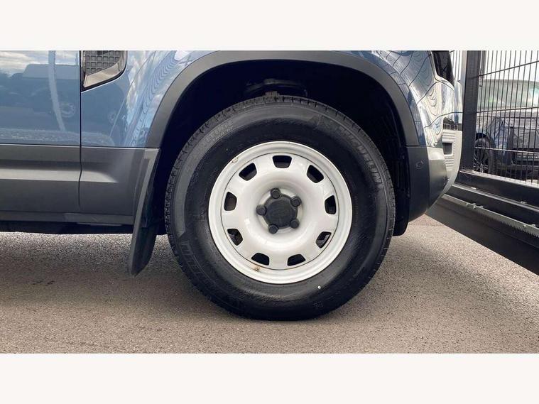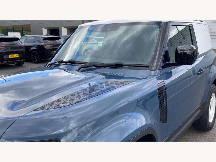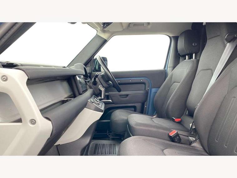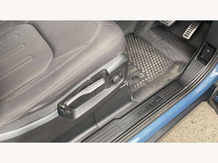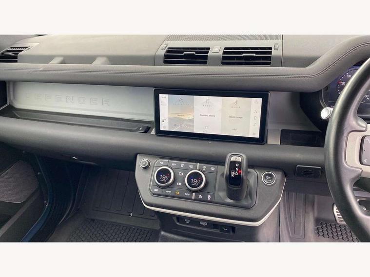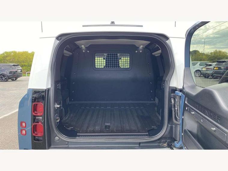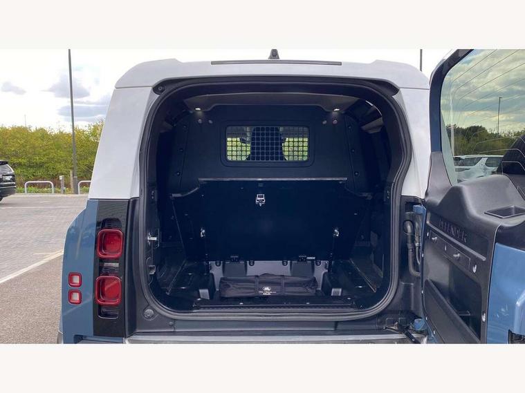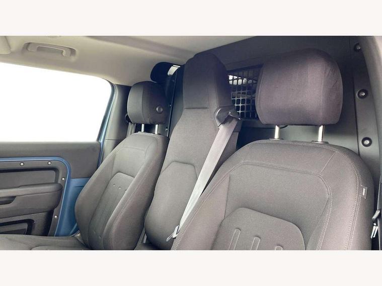 Customer Configurable Autolock, 360 parking aid, 3D Surround Camera with 360 View, 180 Rear View, Front Traffic Detection, Forward Vehicle Guidance, Tow Hitch Assist and clear sight Ground View, Brake Hold, Driver condition monitor, Electric power assisted steering (EPAS), Lane keep assist, Less wireless charger, Low traction launch, Pivi pro connected, Traffic sign recognition adaptive speed limiter, Trip computer, Tyre pressure monitor, Wade Sensing, Android Auto, Apple CarPlay, DAB Radio (Digital Audio Broadcasting), Sound system with 140W and 4 speakers, Alpine lights, Assisted tailgate, Centre high mounted stop light, ClearSight interior rear view mirror, Electric heated/power fold door mirrors with approach lights and auto dimming driver side, Electric windows with one touch open/close and anti-trap, Exterior signage panel, Follow me home lighting, Heated rear window with timer, LED tail light, Privacy glass, Puddle lights, Rain sensing wipers, Rear fog lights, Rear wash wiper, Side-hinged tailgate, Standard roof, Standard tread plates, 40:20:40 fixed rear seats, 8 way heated semi powered front seats with manual headrest, Cabin lighting, Carpet mats, Dual zone climate control, Durable rubber cabin flooring, Fabric upholstery, Footwell lights, Front jump seat and folding front centre armrest, Glovebox storage, High sided rubber mats, Loadspace hooks, Loadspace rubber mat, Manual adjustable steering column, Overhead stowage for sunglasses, Rear centre headrest, Rear reading light, Sunvisors with illuminated vanity mirrors, Twin front cupholders, Online pack - Defender with data plan, Brake pad wear indicator, Electronic traction control, Emergency braking, Front airbags, with passenger seat occupant detector, Power operated child locks, Remote for (e-Call, Optimised assistance call, InControl app, Climate, beep and flash and door), Seat belt reminder, Intrusion sensor, Locking wheel nuts, ABS and EBA, CBC - (Cornering brake control), Coil suspension system, Dynamic stability control, Electronic park brake, Gradient acceleration control, Hill Descent Control, Hill start assist, Particulate filter (DPF), Push button start, Roll stability control, Trailer stability assist,