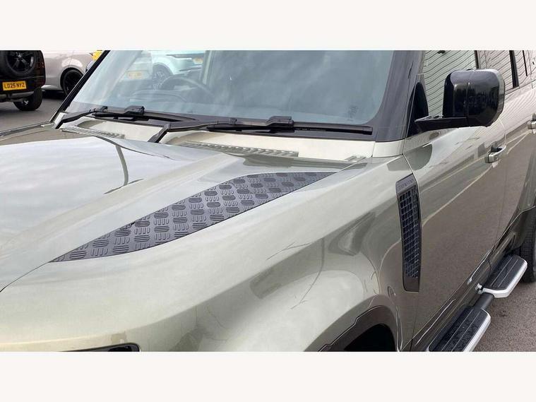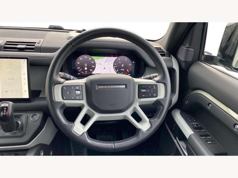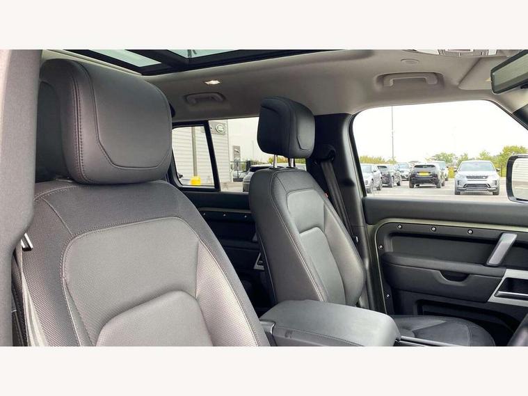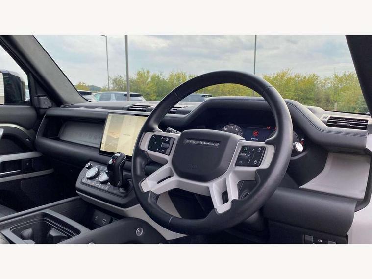 11.4" touchscreen, 360 degree parking aid, 3D Surround Camera with 360 View, 180 Rear View, Front Traffic Detection, Forward Vehicle Guidance, Tow Hitch Assist and clear sight Ground View, Adaptive cruise control, Android Auto, Apple CarPlay, Assisted tailgate with soft close, Blind spot assist, Bluetooth system, Brake pad wear indicator, Clear exit monitor, Connected navigation pro, Driver condition monitor, Electric power assisted steering (EPAS), Interactive driver display, Lane keep assist, Push button start, Rear collision monitor, Rear traffic monitor, Traffic sign recognition with adaptive speed limiter, Trip computer, Wade Sensing, 8 speed automatic transmission, All wheel drive system, Twin speed transfer box, DAB Radio (Digital Audio Broadcasting), Pivi pro connected, Automatic headlight levelling, Automatic headlights, Black exposed rear recovery eyes, Centre high mounted stop light, ClearSight interior rear view mirror, Electric heated/power fold door mirrors with approach lights and auto dimming driver side, Electric windows with one touch open/close and anti-trap, Follow me home lighting, Front fog lights, Heated rear window with timer, Heated windscreen, LED tail lights, Privacy glass, Puddle lights, Rain sensing windscreen wipers, Rear fog lights, Rear side wing doors, Rear wiper, Side hinged tailgate, Trailer stability assist, X-Dynamic badge, 12V power socket in loadspace, 14 way heated and cooled electric adjustable memory front seats with 4 way manual headrests, 3 seat bench in 2nd row, Alpine lights, Configurable cabin lighting, Durable rubber cabin flooring, Durable rubber loadspace flooring, Electric reach + rake adjustable steering column, Extended leather upgrade, Footwell lights, Front passenger isofix child seat attachment, Heated steering wheel, Loadspace cover, Loadspace Hook, Multifunction steering wheel, Overhead stowage for sunglasses, Premium cabin lighting, Rear headrests, Rear ISOFIX, Rear reading lights, Single front passenger seat, Standard seat configuration, Storage glovebox, Sunvisors with illuminated vanity mirrors, Online pack with data plan - Defender, 5 x 3 point seatbelts, ABS, Brake hold function, Cornering brake control (CBC), Customer configurable autolock, DSC - Dynamic Stability Control, EBD - Electronic brakeforce distribution, Electric parking brake (EPB), Emergency brake assist, Emergency braking, ESP + traction control, Front airbags with passenger seat occupant detector, HDC - Hill descent control, Hill launch assist, Low traction launch, Power operated child locks, Remote for (e-Call, Optimised assistance call, InControl app, Climate, beep and flash and door), RSC - Roll stability control, Seat belt reminder, TPMS (Tyre pressure monitoring system), Alarm, Immobiliser, Intrusion sensor, Keyless entry, Locking wheel nuts,