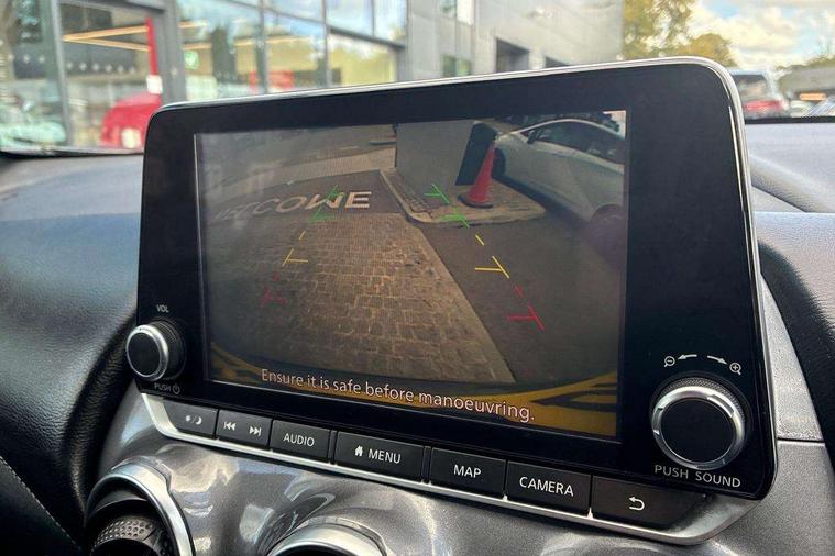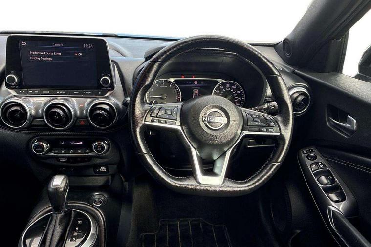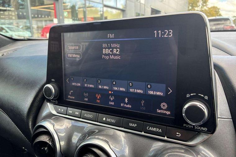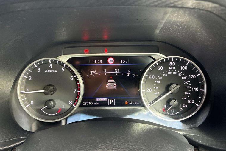 7" full colour TFT screen combimeter, Apple CarPlay and Google Android auto, Drive modes select (Eco, normal and sport), Emergency and breakdown call, Front parking sensor, Idle start/stop system, Intelligent lane intervention, Lane departure warning system, Nissan connect 8" touch screen entertainment system, Nissan connect nav with TomTom traffic, Nissan connect services and Wifi connection, Outside temperature sensor, Power Steering, Rear parking sensor, Traffic sign recognition, Trip computer, Voice recognition, Gasoline particulate filter, 6 speakers, Bluetooth system, USB, Aux-in and 12V socket, DAB Digital radio, Rear console USB port, Auto dimming interior rear view mirror, Auto headlights, Automatic hazard signal with emergency stop signal, Body colour bumpers, Body colour door handles, Electrically adjustable door mirrors with integrated indicators, Follow me home headlights, Front and rear electric window with one touch driver window, Heated and auto folding door mirrors, High beam assist, LED daytime running lights, LED headlamps, LED rear fog lamp, LED rear lamps, Rain sensor windscreen wipers, Rear privacy glass, Rear side wing doors, Rear wiper, Three blink turn signal, 3 height adjustable rear headrests, 3 seat bench in 2nd row, 60/40 split folding rear seat, Automatic climate control, Card holder on driver sunvisor, Cloth upholstery with black and metallic grey syntech leather inserts, Driver and passenger sliding and reclining seats, Driver side rear coat hanger, Driver/passenger sunvisors and vanity mirrors, Front and rear cabin lights, Front armrest, Front door pockets with bottle holders, Front head restraints, Front/rear passenger grab handles, Grey synthetic leather kneepad, Height adjustable driver's seat, Internal chrome door handles, Leather gearshift knob, Leather steering wheel, Luggage board, Luggage space lighting, Monoform sporty seats, Multifunction steering wheel, Rear door bottle holders, Single front passenger seat, Steering wheel mounted gearshift paddles, Telescopic steering wheel adjustment, Two cupholders in front centre console, Two rear isofix child seat anchorage points with top tether, Welcome light and console tray ambient lighting, ABS with EBD and brake assist, Active ride control, Active Trace Control, Driver and passenger airbags, Driver and passenger side airbags, Electric handbrake with auto hold function, Electronic Stability Programme (ESP), Front and rear curtain airbags, Height adjustable seatbelts, Hill start assist, Intelligent emergency braking with pedestrian and cyclist recognition, Rear door child safety locks, Seatbelt reminder for driver/front passenger and rear seats, Single tone horn, Three 3 point rear seatbelts, Traction control, Tyre pressure monitoring system, VDC Dynamic Vehicle Control, Ventilated rear brake discs, Alarm, Immobiliser, Intelligent key and start push button with walk away lock and approach unlock functions, Remote central locking,
