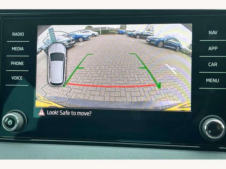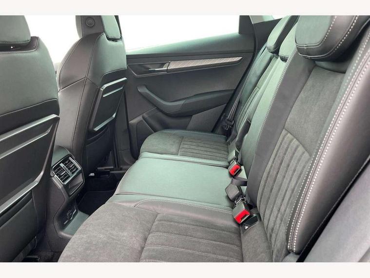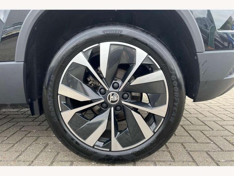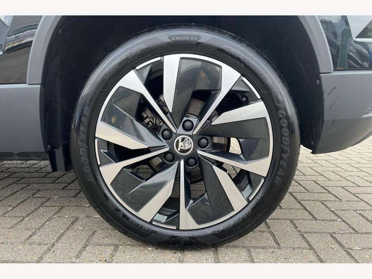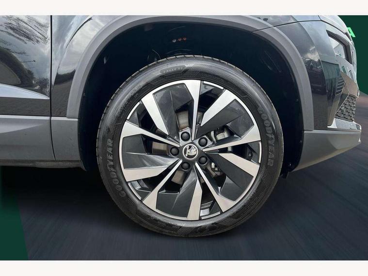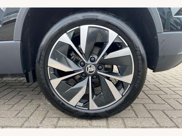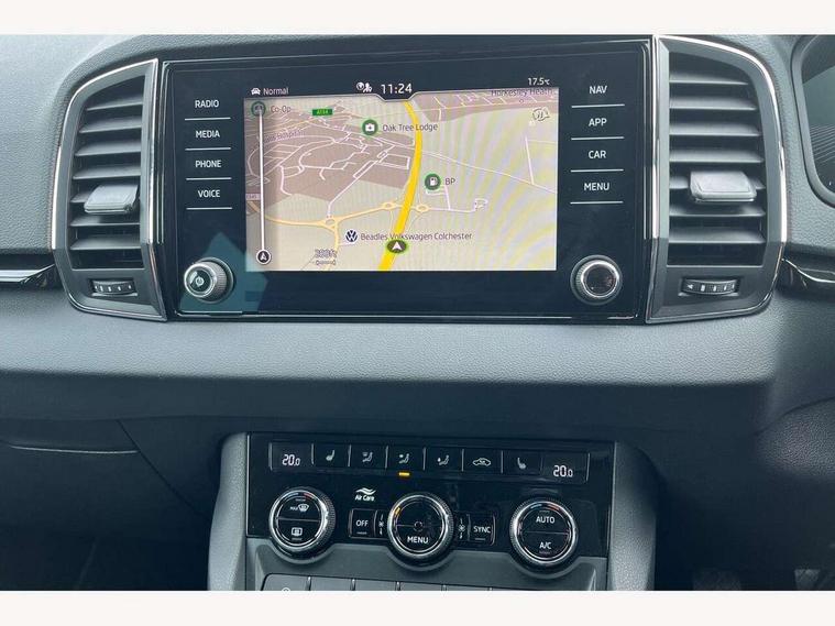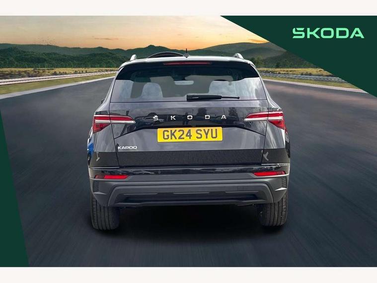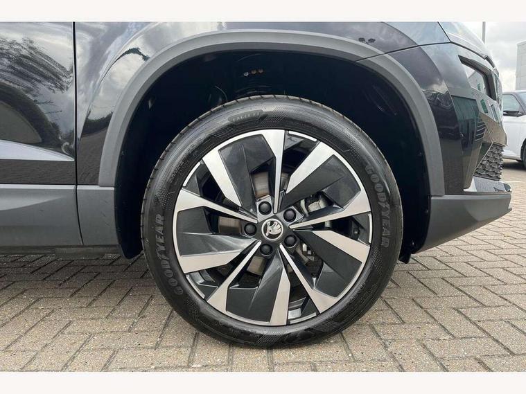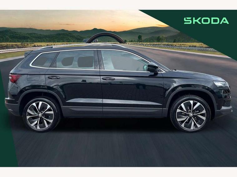 8" Digital display, Care connect, Drive mode selector, Driver fatigue sensor, Electro-mechanical PAS, Emergency services call system, Outside temperature gauge, Service interval indicator, SmartLink wireless for Apple and wired for Android, Start/stop system with regenerative braking, USB C Port x 2 in front centre console, 8 Speakers, DAB radio with Bluetooth, USB connection, Acoustic glass, Aero front windscreen wipers with intermittent function, Auto dimming rear view mirror with light and rain sensors, Black electric window control buttons, Body colour door mirrors and handles, Dynamic headlight range control with cornering light function, Electric front and rear windows with child proof lock, Heated rear windscreen, LED daytime running lights, LED rear lights with high functionality welcome effect and dynamic indicators, Light assistant (coming/leaving home/tunnel light), Plastic scuff plates, Privacy glass, Rear side wing doors, Rear spoiler, Rear window wiper with washer system and intermittent control, Safety reflectors on front doors, Third brake light, 1.5 litre bottle holders in driver and front passenger door panels, 12V socket in boot, 12v socket in front centre armrest with storage compartment and rear air vents, 2 spoke leather heated multifunction steering wheel, 2 x Tablet holder, 3 rear height adjustable headrests, 3 seat bench in 2nd row, 4 foldable roof handles with rear coat hooks, Black floor carpet, Chrome inner door handles, Double sided boot floor, Foldable hooks in the boot, Front head restraints, Height adjustable front three point seats belts with tensioners, Height/reach adjust steering wheel, Ice scraper, Illuminated glovebox, Illuminated luggage compartment, Isofix child seat preparation for front passenger seat, Isofix child seat preparation outer rear, Manual lumbar support for front seats, Pen holder, Pollen filter, Rear boot cover, Rear reading lights, Rubbish bin door, Safety vest holder, Single front passenger seat, Storage box in upper central dashboard closed, Sunvisors with illuminated vanity mirrors, Textile floor mats, Ticket holder, VarioFlex seats with standard rear seat release, Boot pack - Karoq, Design Pack - Karoq, Parking pack - Karoq, Automatic door unlocking in case of crash, Automatic fuel cut off in case of crash, Child locks on rear doors, Driver airbag, Electronic parking brake with auto hold function, Emergency rear braking signal, ESC including ABS, MSR, ASR, EDS, HBA, DSR, RBS, MKB and traction control, Front side airbags, Hill hold control, Knee airbags, Passenger airbag with switch-off function, Pedestrian monitor, Seatbelt reminder signalisation and pretensioner for all seats, Three point seatbelts rear, Two tone horn, Tyre pressure display, Tyre pressure monitor, Alarm with interior monitoring, back up horn and tilt sensor with safe function, Electronic engine immobiliser, Keyless entry and start/stop, Remote central locking with 2 remote folding keys, Chrome framed air vents, 18" Miran alloy wheels in black, Anti-theft wheel bolts protection, Tool kit,