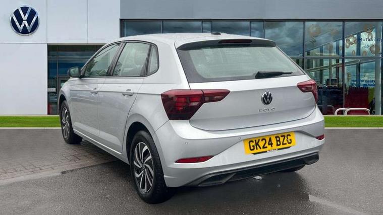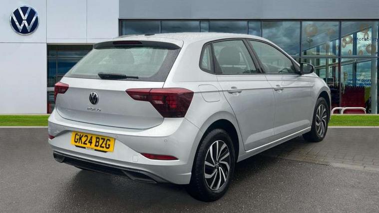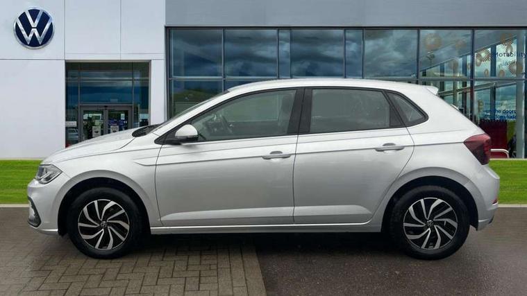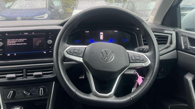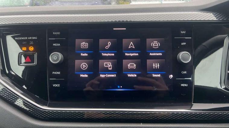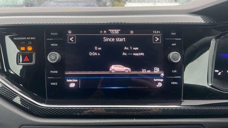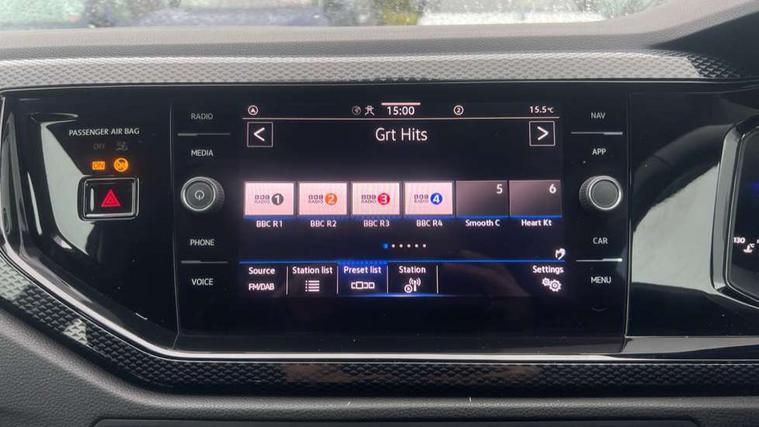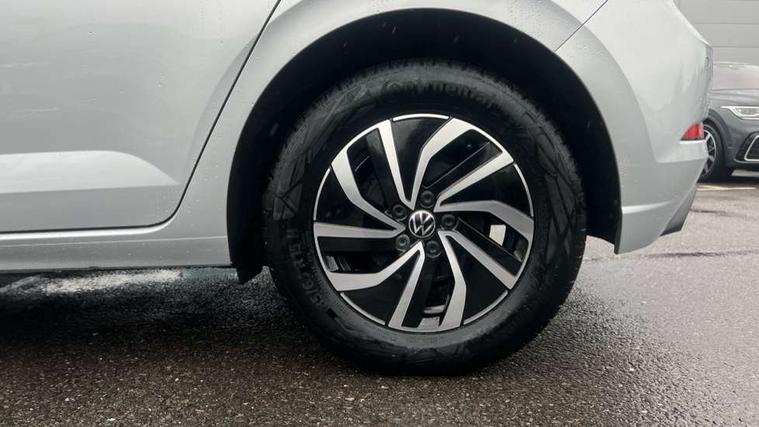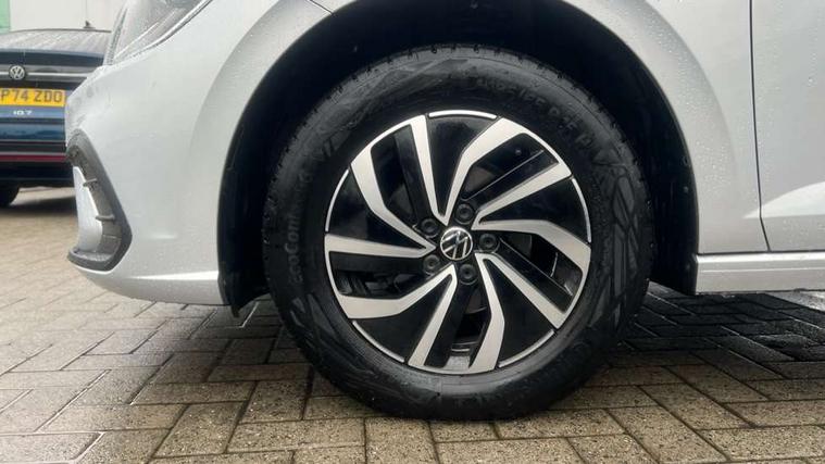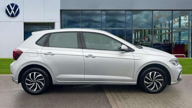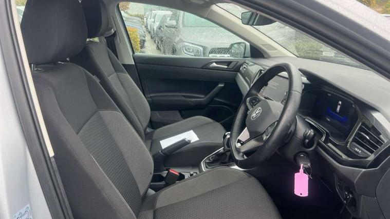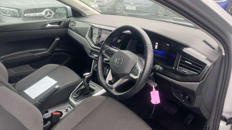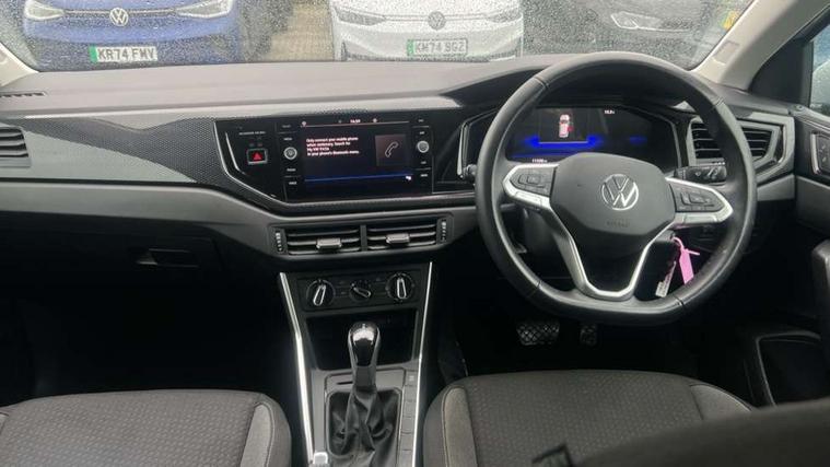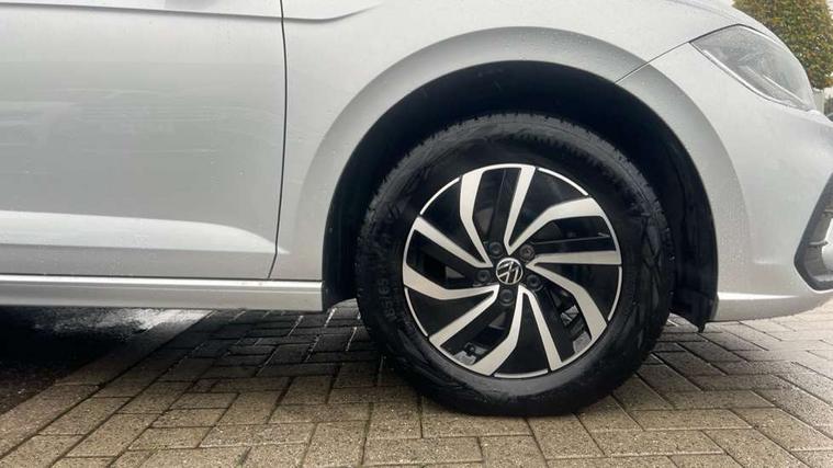 Adaptive cruise control with follow-to-stop and speed limiter, Advanced driver attention and drowsiness monitor, Bluetooth mobile phone interface, Dynamic road sign display, Emergency call service, Power assisted speed sensitive steering, Preparation for navigation system with media and internet package, Preparation for We connect and We connect plus, Speedo and rev counter, electronic odometer, trip, service interval display and exterior temperature gauge, Standard rear axle, Travel Assist - Lane keeping system and traffic jam assist, Travel assist including emergency assist, Trip computer, Warning signal and warning light for front and rear seatbelts not fastened, Washer fluid level indicator, Wireless app connect, Front wheel drive, Rear shock absorpion, Start-stop system with battery regeneration (recuperation - energy recovery during braking), DAB Digital radio, Diversity antenna for FM reception, Automatic dimming interior rear view mirror, Automatic headlight control with LED separate daytime running lights with coming/leaving home function, Body colour bumpers with chrome inserts, Body colour door handles, Body colour door mirrors, Electric front windows, Engine badge deletion, Headlight range adjustment, Heat insulating and laminated safety glass windshield, Heat insulating darkened glass in side and rear windows, Heat insulating glass windscreen, LED Headlights, LED rear combination lamps, Power folding adjustable/heated exterior mirrors and front passenger exterior mirror lowering function, Rain sensor, Rear electric windows, Rear fog light, Rear side wing doors, Rear windscreen washer and wiper with interval delay, Third brake light, 12V power socket in centre console, 2 front and 2 rear reading lights with switch off delay and dimmer, 2 USB-C ports in the front, 2 USB-C charging sockets on the center console in the rear, 3 rear head restraints, 60/40 split folding rear seat and rear seat bench not split, Ceramique roof lining, Chrome plated radiator grille inserts, air vent surrounds and light switch surrounds, Door and side trim panel, Driver and front passenger seat height adjustment, Driver/passenger sunvisors with illuminated vanity mirrors, Front centre armrest, Front seat backrest storage pockets, Front standard seats, Handbrake lever handle in leather, Hartley/Thomas cloth upholstery, Headliner in recycled material, Isofix child seat preparation easy-fit (for two outer rear seats, and front passenger seat) compatible with I-size, Leather trimmed gear knob, Luggage compartment cover, Luggage compartment lighting, Removable luggage compartment floor, Single front passenger seat, Standard climatic zones, Standard pedal cluster, Three spoke leather wrapped multifunction steering wheel with shifting paddles, Light and vision pack - Polo, 3 point height adj front seatbelts + pretensioners, 3x3 point rear seatbelts, ABS, Driver and front passenger airbag with front passenger airbag deactivation, Drivers and front passengers safety optimised head restraints, ESC (Electronic stability control) + EDL (Electronic Differntial lock) and ASR (Traction control), Extended and predictive pedestrian/ cyclist protection, Front assist with autonomous emergency braking (for Adaptive Cruise Control ACC up to 130 mph), Front curtain and side airbags with center airbag, Front disc brakes, Hill hold control, Manual child lock in rear doors, Rear drum brakes, Single tone horn, Tyre pressure loss indicator, Alarm with interior protection, Anti-theft alarm system with interior monitoring, backup horn, and towing protection, Anti-theft wheel bolts, Electronic engine immobiliser, Lava stone black gloss/matt decorative inserts in dash and front door panels, Low rolling resistance tyres,