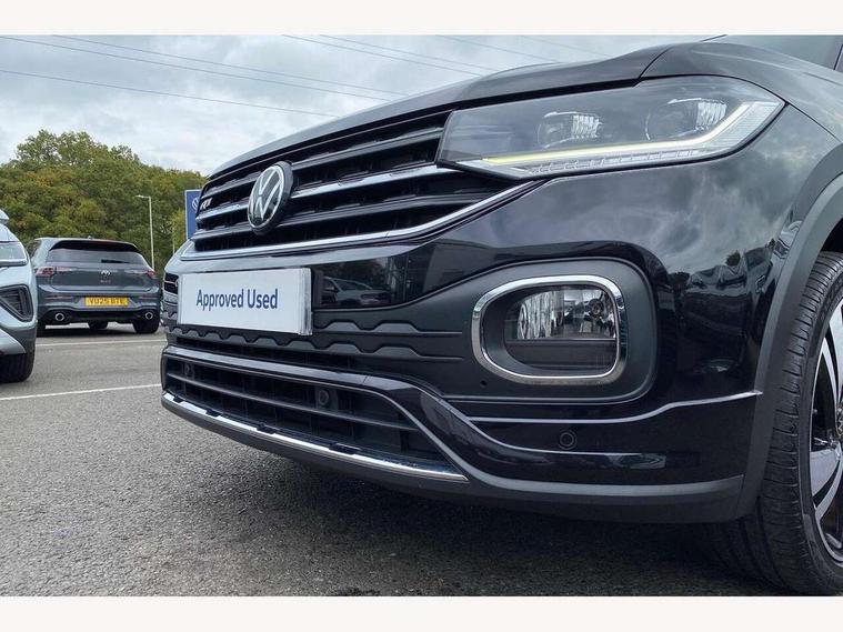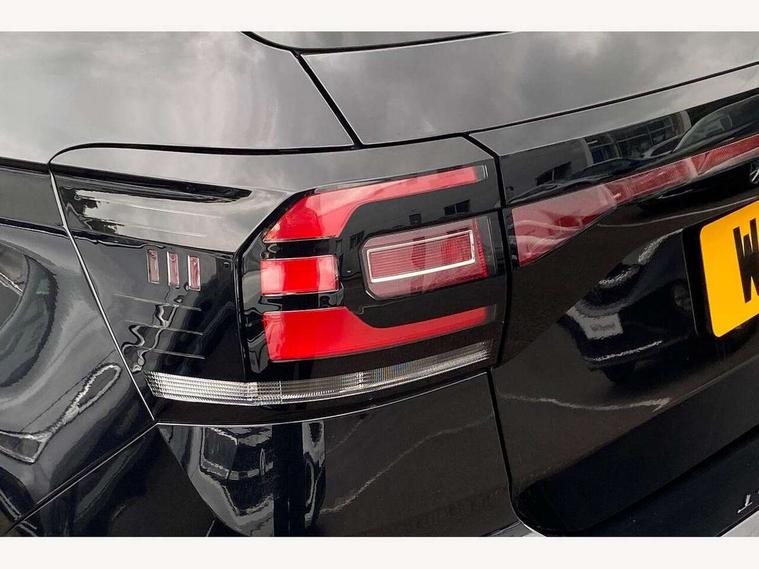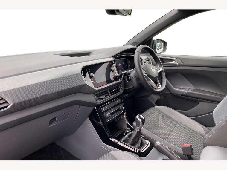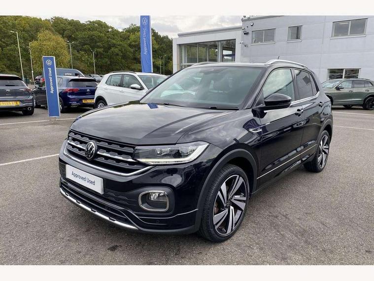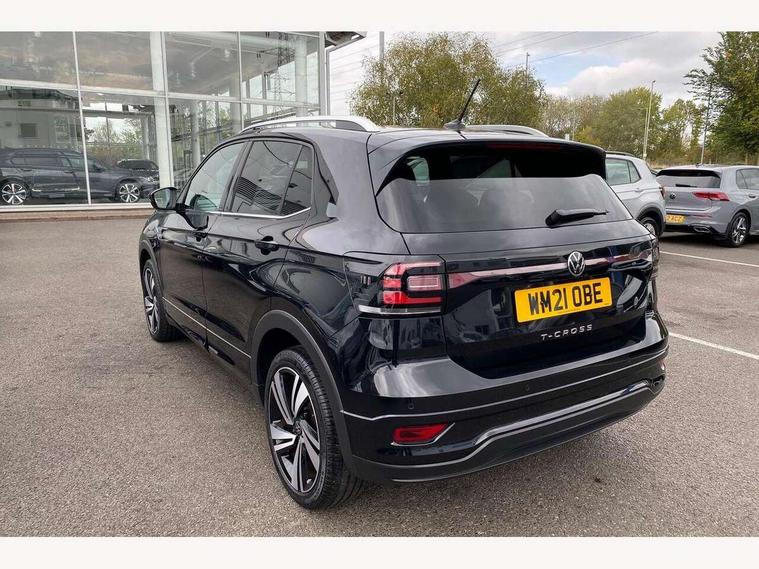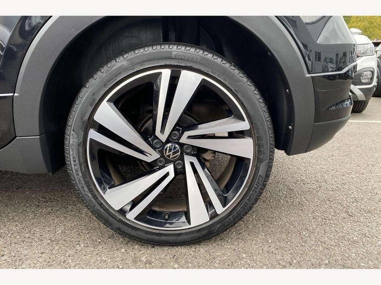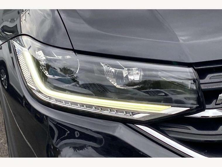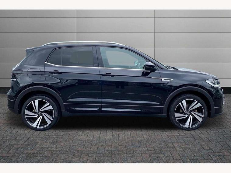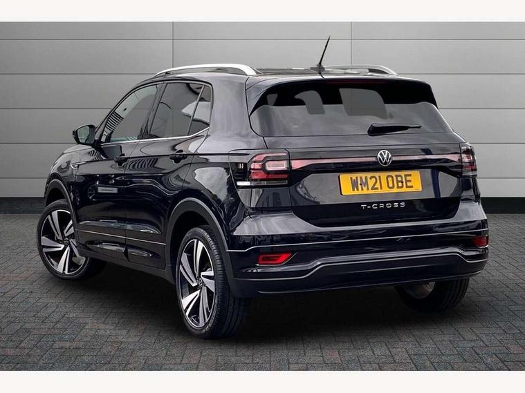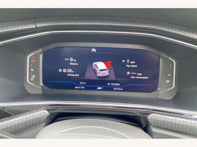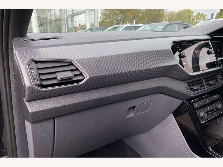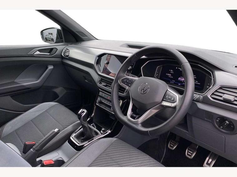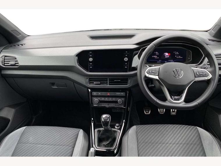 'Lights On' Reminder warning buzzer, 2D/3D map view, Adaptive cruise control including front assist, forward collision warning, autonomous emergency braking, speed limiter, Blind spot monitoring, Bluetooth telephone and audio connection for compatible devices, Car information display, Digital Cockpit Pro - Active info display, Driver alert system, eCall emergency call system, Lane assist, Low washer fluid warning light, Multifunction computer with visual gear change recommendation for fuel consumption, Operating permit alteration, Power assisted speed sensitive steering, Speed limit display, Speedo, rev counter, electronic odometer, trip, service interval display, exterior temperature and fuel gauge, Stop/start system, Warning sound and light for doors and tailgate open, Warning sound and light for front seatbelts unfastened, We connect plus preparation, Wireless Car net app connect with Apple CarPlay, combined functionality of Apple CarPlay/Android Auto and MirrorLink, Battery regeneration during braking, Misfuel prevention device, 2x USB connection with USB charging sockets and in rear centre console, DAB Digital radio receiver, Diversity antenna for FM reception, Multi device interface (MDI) with USB connection, Music playback - MP3, WMA and AAC files, Premium USB cable for Apple or Android smartphone compatibility, Simultaneous pairing of 2 compatible mobile devices, SMS Functionality, Three route options - Fast, Short, Eco, Title and cover art display, Automatic hazard lights activation under emergency braking, Body colour door handles, Body colour rear roof spoiler, Body coloured bumpers, Dusk sensor + automatic driving lights, Electrically foldable, adjustable and heated door mirrors with reverse activated kerb view adjustment on passenger's side, Front and rear electric windows, Front fog lights with static cornering function, Galvanised body, Heated rear window, High level 3rd brake light, Lower door sills and door pillars in black, Radiator grille with chrome trim and chrome bezel front fog lamp, Rear fog light on one side, reversing light on both sides, Rear lights incorporating LED technology, Rear tinted glass 65% approx light absorbing from B pillar backwards, Rear window aerial, Rear windscreen washer and wiper with interval delay, Reflectors in all doors, Silver roof rails, Stainless steel door sill protection, Tailgate with integrated roof spoiler, Unique R Line badging, Windscreen wipers/ intermittent wipe + 4 position delay, 12V Accessory socket in centre console, 2 Front and rear reading lights incorporating LED technology, 2 Zone electronic climate control with automatic air recirculation, 3 rear head restraints and 3 rear three point seat belts with ECE label, 60/40 split folding rear seat backrest, Ambient lighting and sourround lighting, Black headlining, Branded points of interest, Brushed stainless steel pedals, Carbon flag cloth upholstery, Drawer under drivers seat, Driver and front passenger sunvisor with vanity mirror, Driver's sunvisor with ticket holder, Dust and pollen filter, Front and rear carpet mats with contrast stitching, Front centre armrest with storage compartment, Front footwell illumination, Front seat back storage pockets, Front seat R Line logo with rear seat backrest, Front sports seat with height and lumbar adjustment, Glovebox, Heating and fresh air system with 4 stage blower, Height/reach adjust steering wheel, Instrument lighting white adjustable panel illumination, Interior light with delay, Isofix child seat preparation for 2 rear child seats, Leather trimmed three spoke multifunction steering wheel with contrast stitching and aluminium inserts with R Line logo, Luggage compartment cover, Luggage compartment lighting, Moveable and foldable Rear bench seat, Scuff plates in door apertures, Steering wheel paddle shift, Storage compartment in drivers and front passengers door, Variable boot floor, R Line styling pack - T-cross, Anti-lock Braking System (ABS) with Hydraulic Brake Assist (HBA), Automatic post collision braking system, Driver and front passenger safety-optimised head restraints, Drivers and Front Passengers airbags with front passengers airbag deactivation switch, ESC with EDL, ASR, EDTC and trailer stabilisation function, Extended and proactive pedestrian protection, Front and rear curtain airbags, Front seat side impact airbags, Height adjustable 3 point automatic front seatbelts with pretensioners, Hill start assist, Pre crash preventive occupant protection, Rigid safety cell with front and rear crumple zones, Single torn horn, Tyre pressure loss indicator, Volkswagen roadside assistance, Alarm with interior protection and deactivation via infotainment system, Child security locks in rear doors, Electronic engine immobiliser, Remote tailgate unlocking using key fob, Race decorative inserts in dash and doors, 18" Nevada black alloy wheels, Breakdown kit,