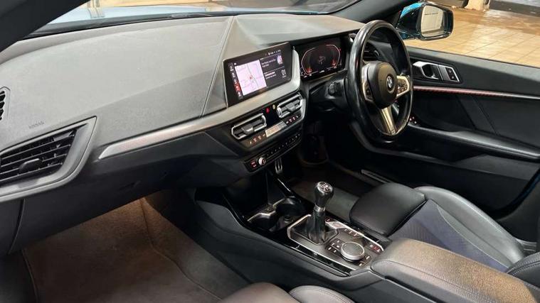 Active guard plus, Attentiveness assist, Auto start-stop, BMW Intelligent Personal Assistant, BMW Live Cockpit Professional with 10.25" high resolution instrument and control display, BMW Online services, BMW operating system with 7.0 mid interface, BMW Teleservices, Check Control warning system for monitoring of lights and door/luggage compartment open warning, Cruise control with braking function, iDrive controller with 7 short cut favourite buttons on centre console, Integrated navigation data with map data via USB +features such as 3D landmarks and micro city models, Integrated owners handbook, Intelligent voice assistant, Lane departure warning system, M Sports steering, On board computer - average speed+fuel consumption, service interval, clock/date, odometer/trip meter, outside temperature display and ice warning, Optimum shift indicator, Personal Profile, Pull away assistant, Speed limiting function, 6 speed manual transmission, Aluminium lightweight construction, Balancer shaft, Double VANOS, Drive performance control with ECO PRO comfort + sport mode, Electronic differential lock, High precision injection, M Sport suspension with stiffer spring/damper set-up and vehicle lowered by 10mm + twin tube gasfilled shock absorbers and Anti roll bars, Performance Control, Petrol Particulate Filter, VALVETRONIC engine management, 2x USB Type C ports (for charging and data transfer), 4G LTE Connectivity with hard wied 4G network sim card, DAB digital radio, MP3 players and RDS double tuner, Auto wipers, Automatic headlight beam throw control, Automatically dimming rear view mirror, Body colour door handles, Body colour mirror caps, Chrome 'M' logo side designation, Chrome exhaust single tailpipe, round, Direction indicator side lights integrated exterior mirrors, Electric windows - front and rear, with open/close fingertip control and trap release, Exterior mirrors - electrically folding with anti-dazzle, Fading support, Follow me home headlights, Front and rear bumper system with replaceable deformation elements, Front door sill finishers in black plastic with M designation in metallic look, Heated, electrically adjustable exterior mirror aspheric on driver side, convex on passenger side, High gloss black B pillar finish, High gloss shadow line exterior trim, High level third brake light, LED daytime running lights, LED front fog lights, LED Headlights, Lightweight engineering, Model designation on right side of tailgate, Preparation for high beam assistant, Rain sensor with automatic headlight activation, Rear boot, Rear fog lights, Rear side wing doors, Reversing light in rear light cluster, Welcome lighting, 12V power socket in centre console, 2 cupholders in front centre console, 3 rear seat head restraints, 3 rear seats, 3 spoke M sports design leather steering wheel finished in nappa leather with specific M badge, Anthracite finished floor mats with contrasting surround, Anthracite headlining, Automatic two zone climate control air conditioning, Child seat ISOFIX attachment for two outer rear seats and front passenger seat with anchorage points, Conditioned based service, Driver and front passenger seat heating, Front and rear door pockets including bottle trays, Front and rear side armrests integrated into door trim, Front armrest foldable with integrated storage compartment, Front centre interior light over interior mirror and rear centre automatic interior light when door is opened/ignition switched off or via remote key, Front head restraints, Front passenger seat, Front sports seats with electric side bolster adjustment, Gearshift lever with M designation, Glove compartment, Glovebox with light, Luggage compartment lighting, Manually adjustment steering wheel column, Multi-function controls for steering wheel, Sun visors with vanity mirrors and insert tab, Through loading system with 40/20/40 split folding rear seat, Two lashing eyes, Additional interior lighting pack - 2 Series Gran Coupe, Extended storage pack - 2 Series Gran Coupe, M Sport exterior styling aerodynamics pack - 2 Series Gran Coupe, 2 tone horn, Airbag - Front driver and passenger, front and rear head, front side, curtain head protection, manual deactivation of front passenger airbag possible, Anti lock braking system (ABS) with cornering brake control, BMW emergency call, Brake drying, Braking readiness, City braking function, Crash sensor activating of airbags, Unlocking doors, hazard warning lights, fuel cut off, interior lighting+activation of safety battery terminal clamp, Dynamic stability control + (DSC+), Dynamic Traction Control - DTC, Electrically operated hand brake, Rear brake discs, Rear child proof door locks, Seat belt security check for driver and front passenger, Seatbelt warning, Side impact protection, Three point seat belts on all seats including front belt stopper, pyrotechnic belt tensioners and belt force limiters, Trailer stability control, Tyre pressure monitoring system, Ventilated front disc brakes, Warning triangle and first aid kit, Central locking switch for all doors, fuel filler cap and luggage compartment, Deadlocking function system to all doors, Drive away locking system on all doors and luggage compartment, Locking wheel bolts, Start/Stop button (illuminated) in centre console with keyless engine start and Auto Start-Stop deactivation button, Thatcham Cat.1 alarm and immobiliser, Two remote control key with integrated key - open/close doors/fuel flap/tailgate +1 button for unlock compartment with M design high gloss black inlay, Contrast stitching on instrument panel, 18" Burnished M double spoke bi-colour alloy wheels finished in orbit grey - style 819M, Reduced rolling resistance tyres,