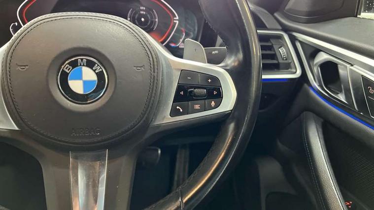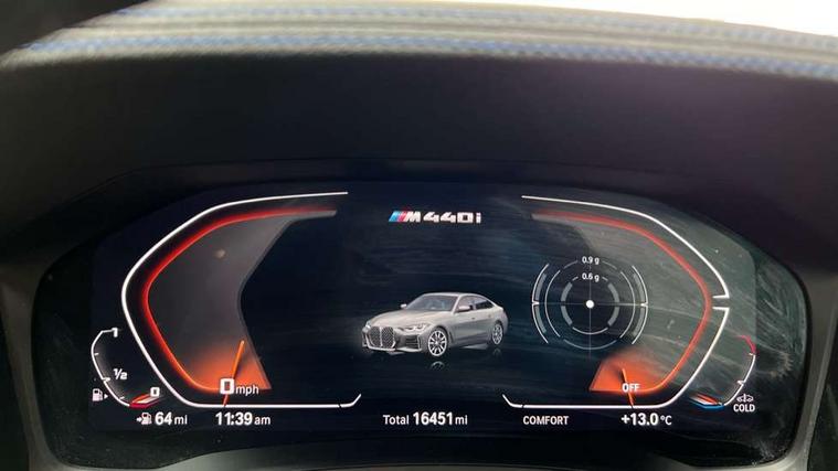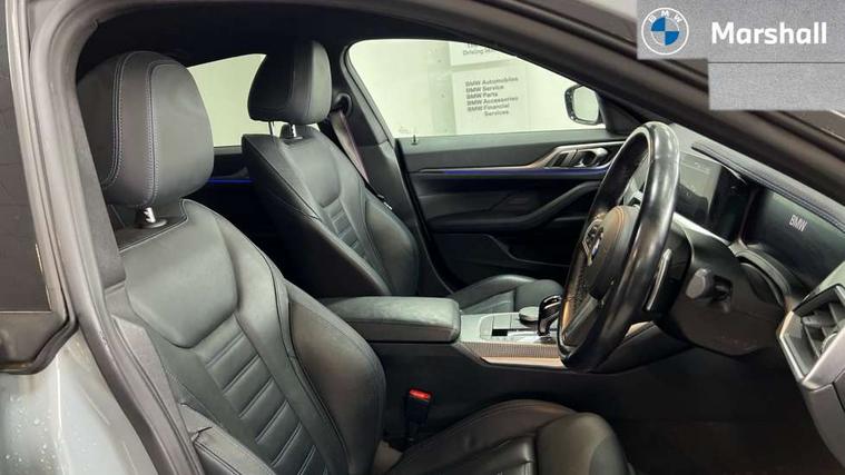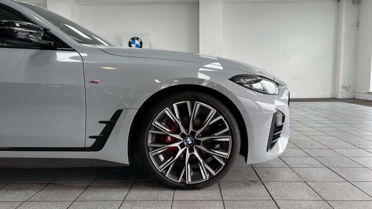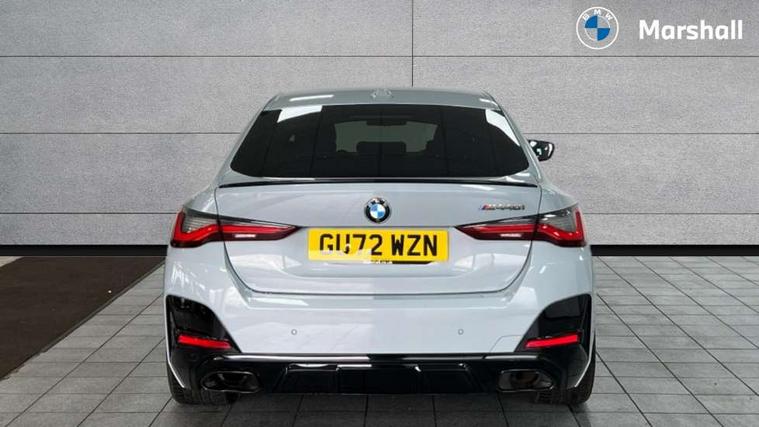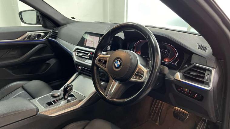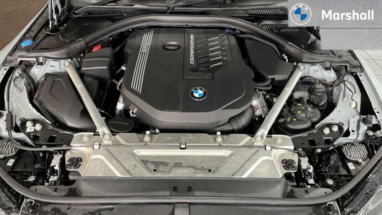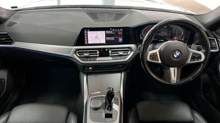 Active guard plus, Attentiveness assist, Auto start-stop, BMW ConnectedDrive online services, BMW iDrive controller on centre console, BMW Live Cockpit Professional Nav with 12.3" instrument display + 10.25" display, Intelligent Voice Assist, BMW OS 7, HDD, 2USB, 4G LTE connect, BMW service history, BMW Teleservices, Brake pad wear indicator in front and rear, Check Control warning system for monitoring of lights and door/luggage compartment open warning, Condition based service, Electric bootlid, Electric power steering with Servotronic steering optimised at all speed ranges, Gearshift time display in manual mode, Instrument cluster with speedometer with mph readout, tachometer, fuel gauge and oil temperature gauge, Integrated owners handbook, Oil sensor for level and grade, warning by check control system, On board computer - average speed, fuel consumption, outside temp display with acoustic warning, clock/date, service interval, odometer/trip meter, Optimum shift indicator, Tailgate, Variable sport steering, 48V Mild hybrid technology, 8 speed automatic steptronic transmission with gearshift paddles, Adaptive M suspension, Driving experience modes - Comfort, ECO PRO, Sport and Sport+ mode, Low centre of gravity, M Sport differential, Petrol Particulate Filter, Stroke dependent dampers, xDrive system permanent all-wheel drive variable torque distribution, DAB tuner, Electronic service booklet, Acoustic glazing, Automatic headlight beam throw control with load dependent regulating reaction, dynamic compensation of braking dive and acceleration squat, Automatic windscreen wipers and automatic headlight, Automatically dimming electrochromatic rear view mirror, BMW emblem on engine compartment lid and tailgate, Body colour fuel filler flap, Body colour roof fin, Brushed aluminium inserts in the front door sill finishers with BMW designation, Dynamic brake lights, Electric windows - front and rear, with open/close fingertip control, anti trap facility and comfort closing function all round, Exterior mirrors - electrically folding with anti-dazzle, Fading support, Follow me home headlights, Front and rear bumper system, Front apron plastic in body colour, Green tinted heat protection glazing, Illuminated bow type door handles in body colour drivers side with door lock, Interior rear view electrochromatic mirror with automatic anti dazzle function, LED daytime running lights, Licence plate panel integrated into front bumper and tailgate, Lightweight engineering, M designation on front side panels, left and right, M rear boot spoiler, One piece front bumper cover including towing eye cover in body colour, Preparation for high beam assistant, Rear side wing doors, Rear wiper, Reversing light, Side frame decorative moulding black matt, Twin exhaust tailpipes x2, Two part LED tailights in L-shape with components in smoked glass, brake light, LED turn indicator and rear fog light, Visible VIN plate, Welcome lights in interior and door handle area, Widened track and increased camber values for max transverse dynamics, agility and steering precision, Window recess cover black high gloss, Windscreen wipers with integrated heated washing jets, xDrive designation on left tailgate, 12V power socket in front centre console, 2 front cupholder in centre console with clamping elements and matt black inlay, 3 rear headrests, 3 seat bench in 2nd row, 3 spoke M sport leather multifunction steering wheel, 3 zone automatic air conditioning, 4 pieces lashing eyelets in luggage compartment, 40:20:40 split folding rear seat and rear centre armrest with two cupholders, Ambient lighting with welcome carpet light, Anthracite headlining, Armrest integrated in front and rear door trim + front centre console armrest, Four grab handles integrated in roof lining, Front and rear door pockets, Front and rear footwell lights, Front and rear reading lights, Front headrests, Heated driver and front passenger seats, Height adjustable mechanically and infinitely variable steering column, Illuminated armrest storage compartment, Illuminated glove compartment with separate small compartment, Luggage compartment light, Make-up mirror lights, Single front passenger seat, Storage compartment in rear centre console, Sunvisors with vanity mirrors and ticket pocket, Toolkit located in luggage compartment, Velour front floor mats, Connected professional package - 4 Series, M sport exterior styling pack - 4 Series M440i, 3 point seatbelts on all seats, Battery safety cut-off, BMW emergency call, Brake energy regeneration, Braking pre-tensioning, Child proof locking system in rear door, Child seat ISOFIX attachment for the two outer rear seats, Coasting in idle in ECO PRO mode, Cornering brake control (CBC), Crash sensor activating of airbags, Unlocking doors, hazard warning lights, fuel cut off, interior lighting+activation of safety battery terminal clamp, Driver and front passenger side airbags, integrated in the door side seat backrest bolsters for all seat variants, Driver/Front Passenger airbags, Dry braking, Dynamic brake control, Dynamic stability control + (DSC+) - Anti-lock Braking System (ABS) with brake assist and cornering brake control + Automatic Stability Control (ASC), Dynamic Traction Control - DTC, Electric parking brake including automatic hold function and automatic release of the parking brake when driving off, Electronic differential lock control (EDLC), Front and rear ventilated brake disc, Front passenger manual airbag deactivation, Head airbags for all 4 outer seats, Hill start assistant, M Sport seatbelts, Seat belt security check for driver and front passenger, Seat belt with belt stopper, pyrotechnic belt tensioners and belt force limiters, Side impact protection, Tyre pressure monitoring with three level warning strategy, Warning triangle and first aid kit, Alarm system (Thatcham 1) with remote control and electronic engine immobiliser, Central locking switch for all doors, fuel filler cap and luggage compartm