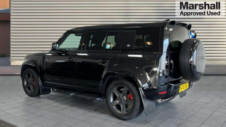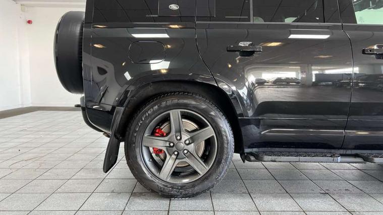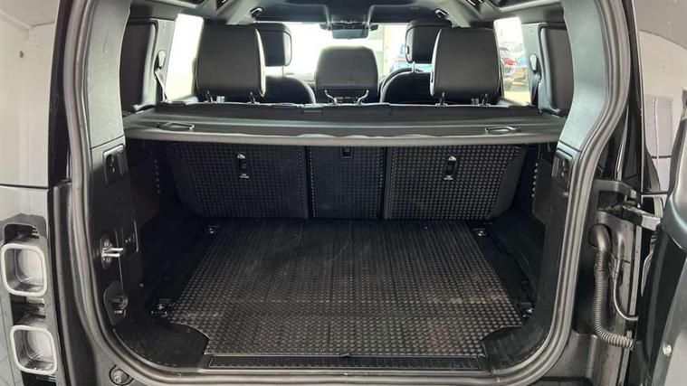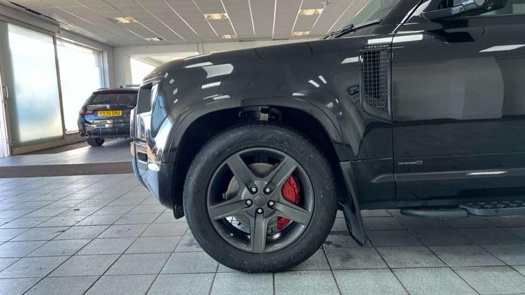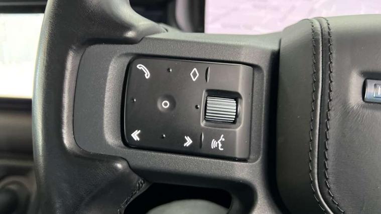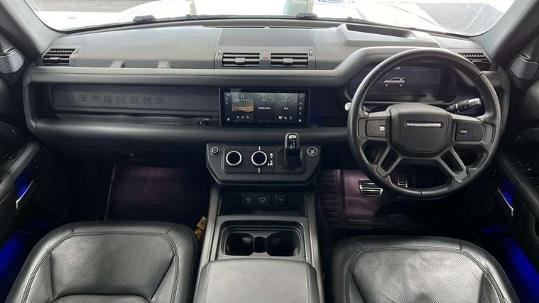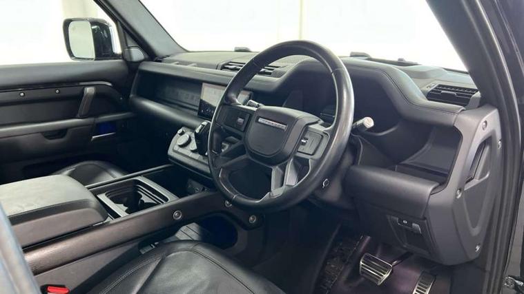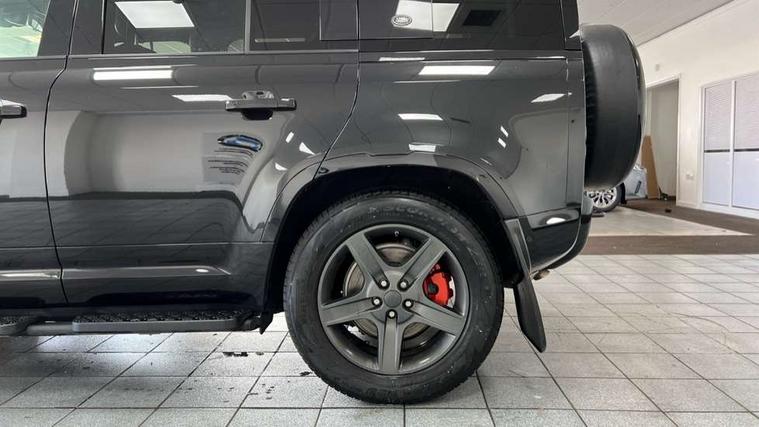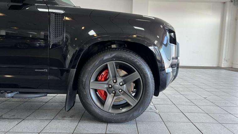 10" touch screen, 360 degree parking aid, 3D Surround Camera with 360 View, 180 Rear View, Front Traffic Detection, Forward Vehicle Guidance, Tow Hitch Assist and clear sight Ground View, Adaptive cruise control, Android Auto, Apple CarPlay, Assisted tailgate with soft close, Blind spot assist, Bluetooth system, Clear exit monitor, Click and go integrated base unit, Connected navigation pro, Driver condition monitor, Head up Display, Interactive driver display, Lane keep assist, PAS, Rear collision monitor, Rear traffic monitor, Traffic sign recognition with adaptive speed limiter, Trip computer, Wade Sensing, Adaptive dynamics, All terrain progress control, Configurable Terrain Response, Electronic active differential with brake torque vectoring, Electronic air suspension, Terrain Response 2, DAB Radio (Digital Audio Broadcasting), Meridian 700w surround sound audio system with 15 speakers, Pivi pro connected, Automatic headlight levelling, Automatic headlights, ClearSight interior rear view mirror, Darkened LED tail lights, Electric heated/power fold door mirrors with approach lights and auto dimming driver side, Front fog lights, Heated windscreen, Illuminated metal tread plates with brand name script, Matrix LED headlights with signature DRL, Puddle lights, Rain sensing windscreen wipers, Rear fog lights, Trailer stability assist, X badge, 12V power socket in loadspace, 14 way heated and cooled electric adjustable memory front seats with 4 way manual headrests, 40:20:40 folding, heated rear seats with centre armrest, Bright metal pedals, Carpet mats, Domestic plug socket, Ebony morzine headlining, Electric reach + rake adjustable steering column, Extended leather upgrade, Front passenger isofix child seat attachment, Heated steering wheel, Leather gearshift, Leather steering wheel, Loadspace cover, Loadspace Hook, Multifunction steering wheel, Premium cabin lighting, Rear headrests, Rear ISOFIX, Sunvisors with illuminated vanity mirrors, Twin front cupholders with cover, Windsor Leather and Steelcut premium textile upholstery, Online pack with data plan - Defender, X exterior pack - Defender, 5 x 3 point seatbelts, ABS, Cross car beam in Dark Grey Powder Coat, Driver and passenger airbags, Emergency braking, ESP + traction control, Hill launch assist, Remote for (e-Call, Optimised assistance call, InControl app, Climate, beep and flash and door), TPMS (Tyre pressure monitoring system), Alarm, Immobiliser, Intrusion sensor, Keyless entry and go, Locking wheel nuts,